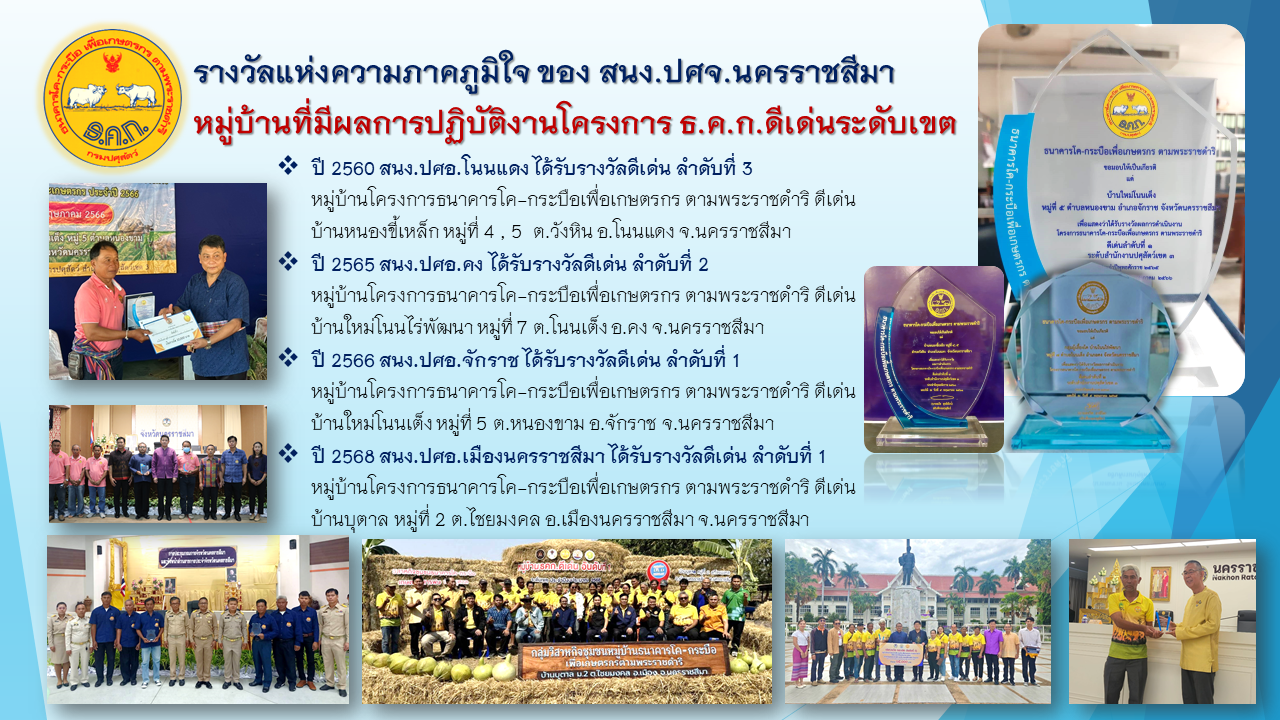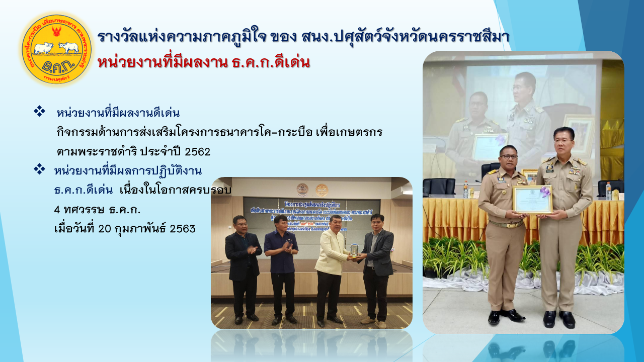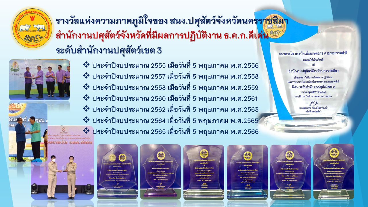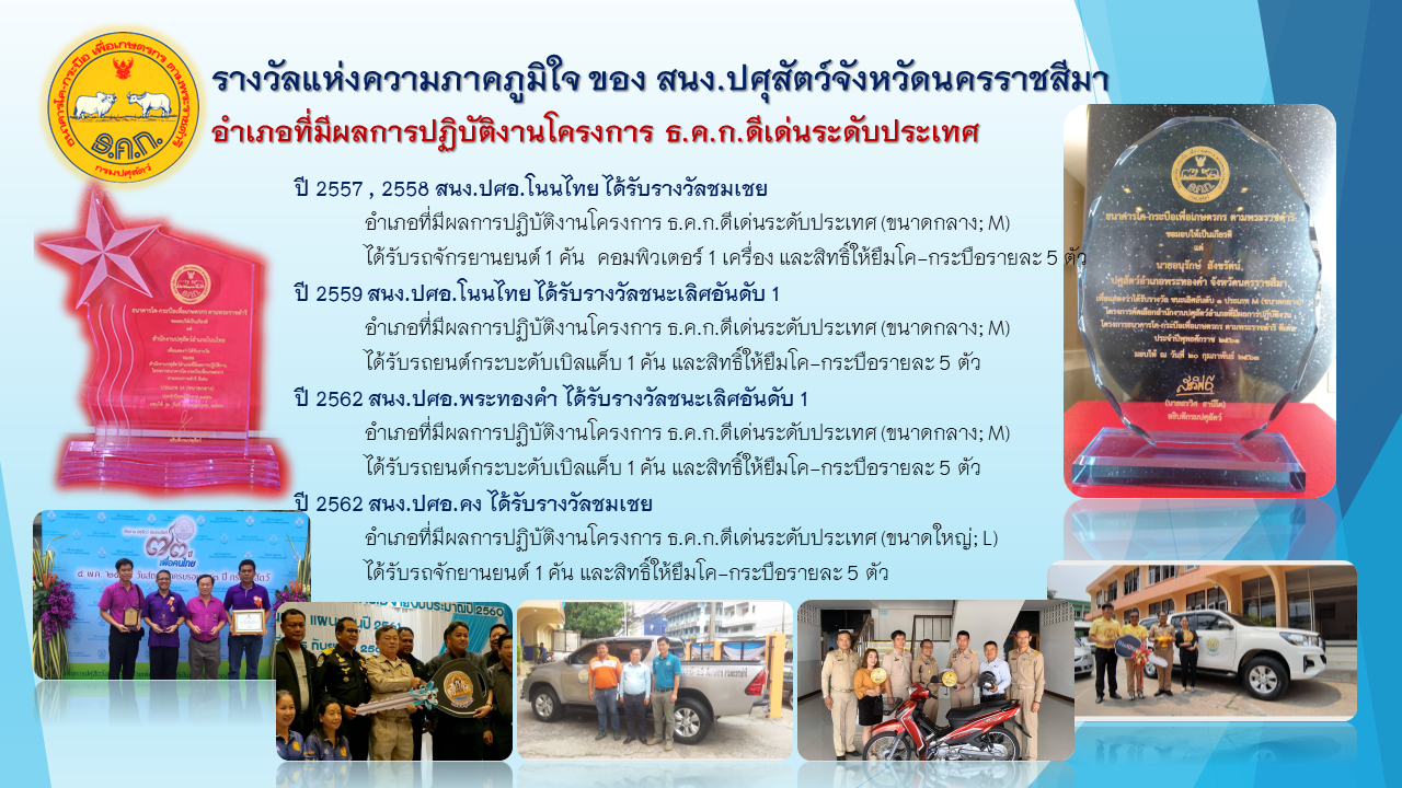 รางวัลแห่งความภาคภูมิใจ ของสำนักงานปศุสัตว์จังหวัดนครราชสีมา