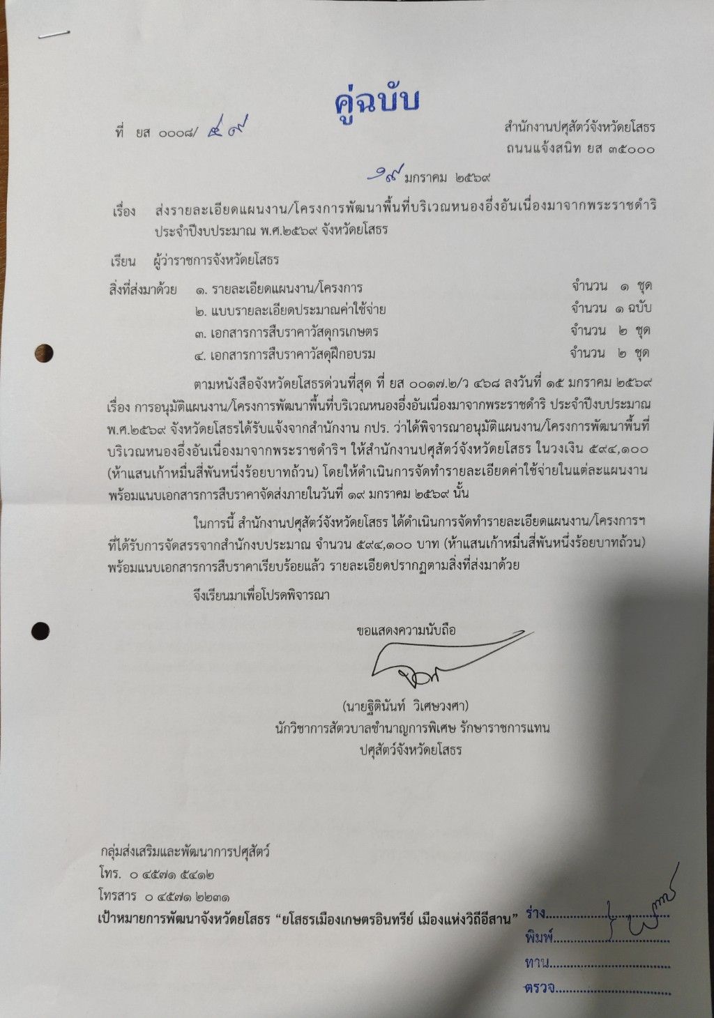 6.1 โครงการพัฒนาพื้นที่บริเวณหนองอึ่ง / หนังสือนำส่ง