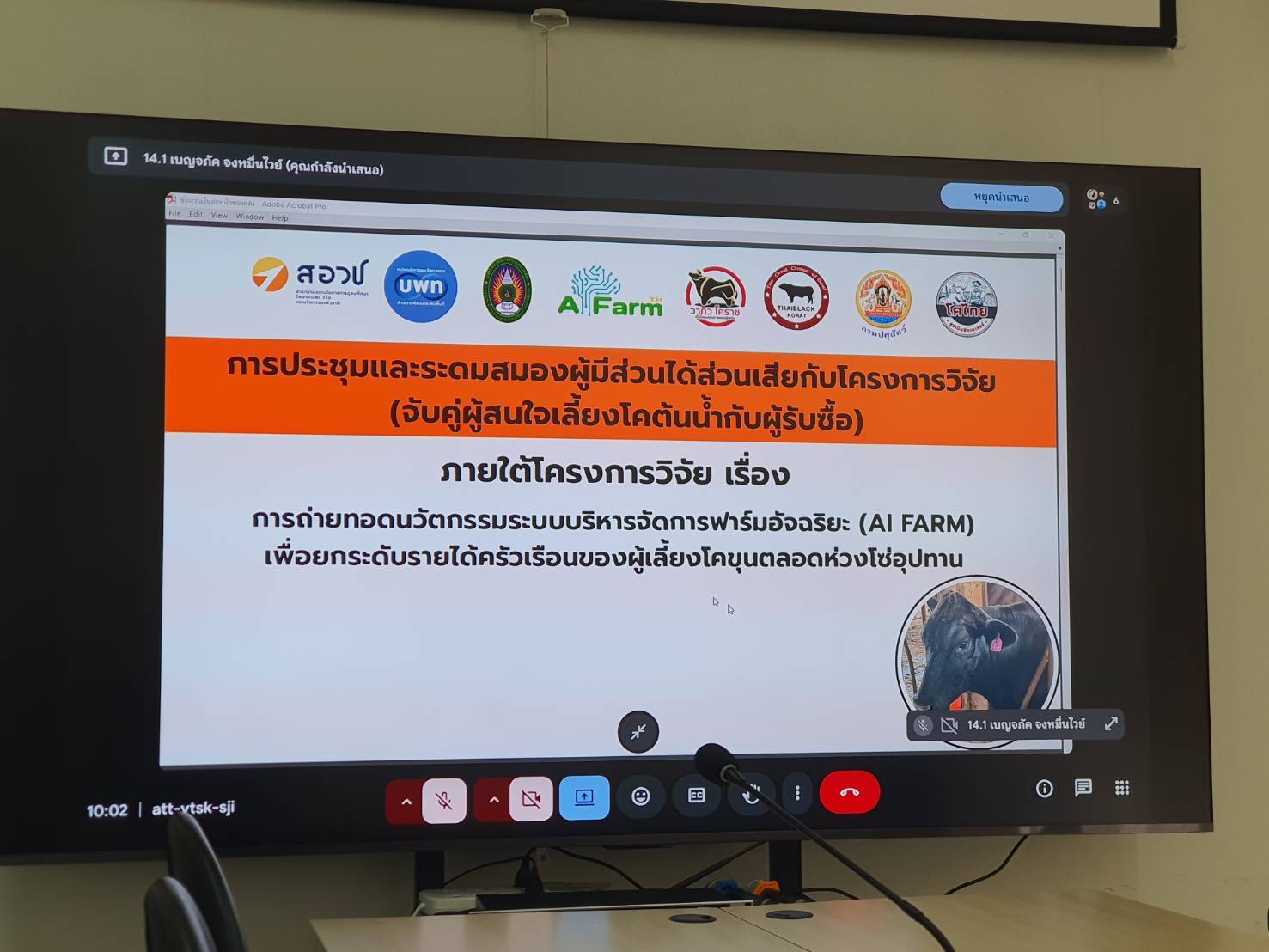 ระดมสมองผู้มีส่วนได้ส่วนเสียกับโครงการวิจัย (จับคู่ผู้สนใจเลี้ยงโคต้นน้ำกับผู้รับซื้อ)