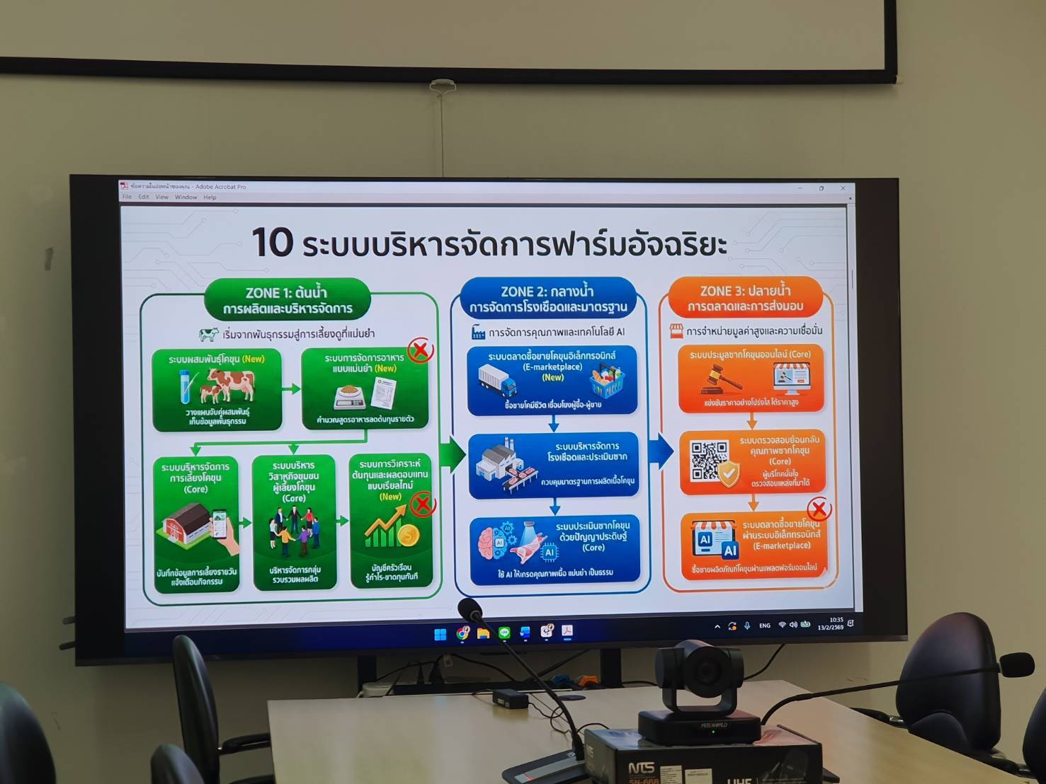 วันที่ 13 กุมภาพันธ์ 2569 นายสัตวแพทย์อดิศร ชาติสุภาพ ปศุสัตว์เขต 3 มอบหมายให้ นายสัตวแพทย์ปรัชญา อิฐรัตน์ นายสัตวแพทย์ชำนาญการพิเศษ ส่วนมาตรฐานการปศุสัตว์ สำนักงานปศุสัตว์เขต3 เข้าร่วมประชุมระดมสมองผู้มีส่วนได้ส่วนเสียกับโครงการวิจัย(จับคู่ผู้สนใจเลี้ยงโคต้นน้ำกับผู้รับซื้อ) ภายใต้โครงการวิจัยเรื่อง การถ่ายทอดนวัตกรรมระบบบริหารจัดการฟาร์มอัจฉริยะ (AI FARM) เพื่อยกระดับรายได้ครัวเรือนของผู้เลี้ยงโคขุนตลอดห่วงโซ่อุปทาน ร่วมกับ ศ.ดร.สามารถ จับโจร ผศ.ดร.สายสุนีย์ จับโจร ปศุสัตว์จังหวัดนครราชสีมา ผู้อำนวยการศูนย์วิจัยการผสมเทียมและเทคโนโลยีชีวภาพนครราชสีมา ตัวแทนผู้ประกอบการโคขุนในพื้นที่จังหวัดนครราชสีมา โดยในที่ประชุมได้มีการระดมความคิดเห็นจัดวางรายละเอียดระบบการบริหารจัดการฟาร์มอัจฉริยะในพื้นที่กลุ่มเป้าหมายในจังหวัดนครราชสีมา และ จังหวัดอุดรธานี โดยแบ่งเป็น 3 zoneหลักๆ คือ