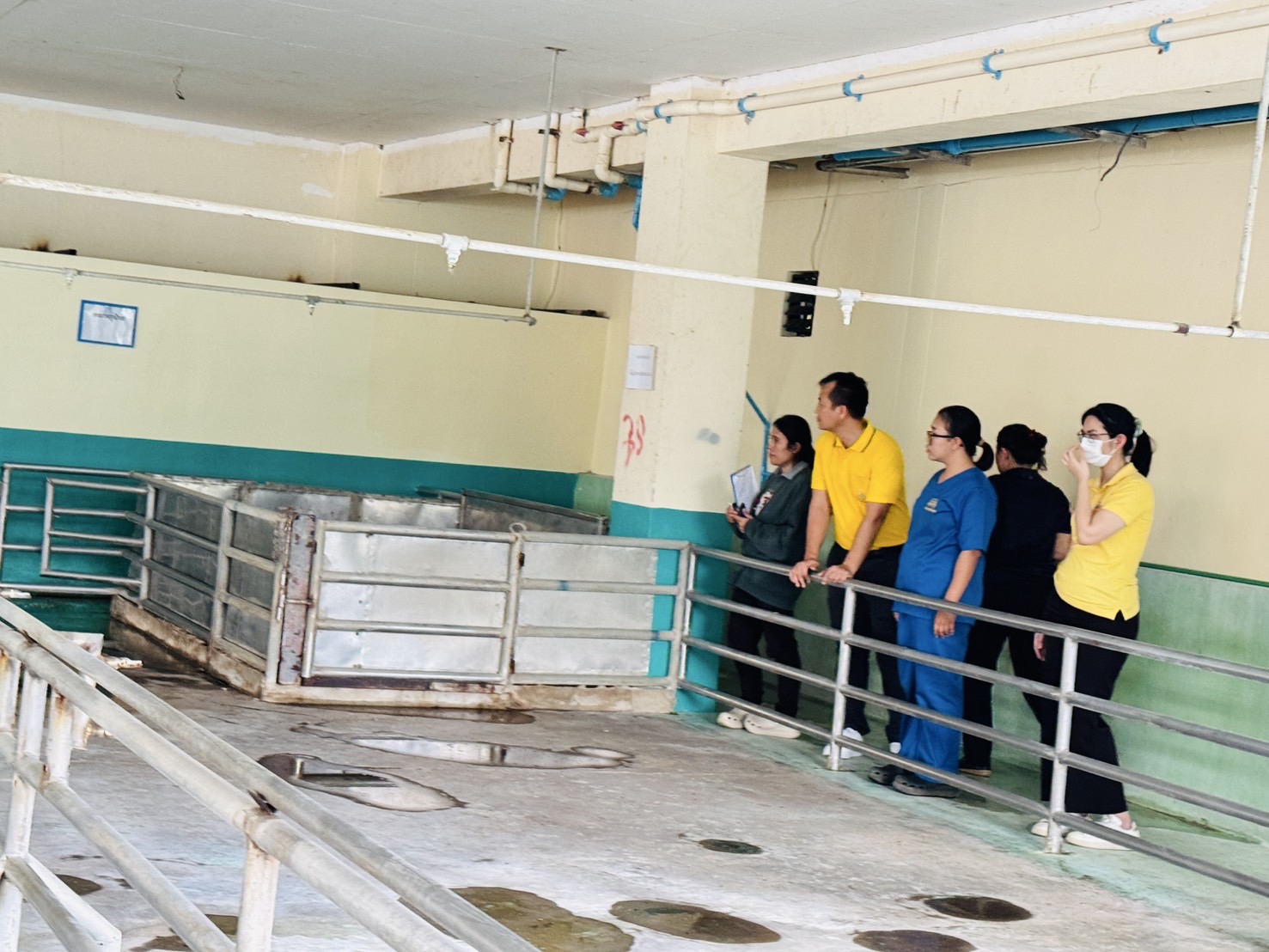 "ตรวจติดตาม GMP โรงฆ่าสุกร บริษัท บี.เอส.เอ อุบลกรีนพอร์ค จำกัด จ.อุบลราชธานี"