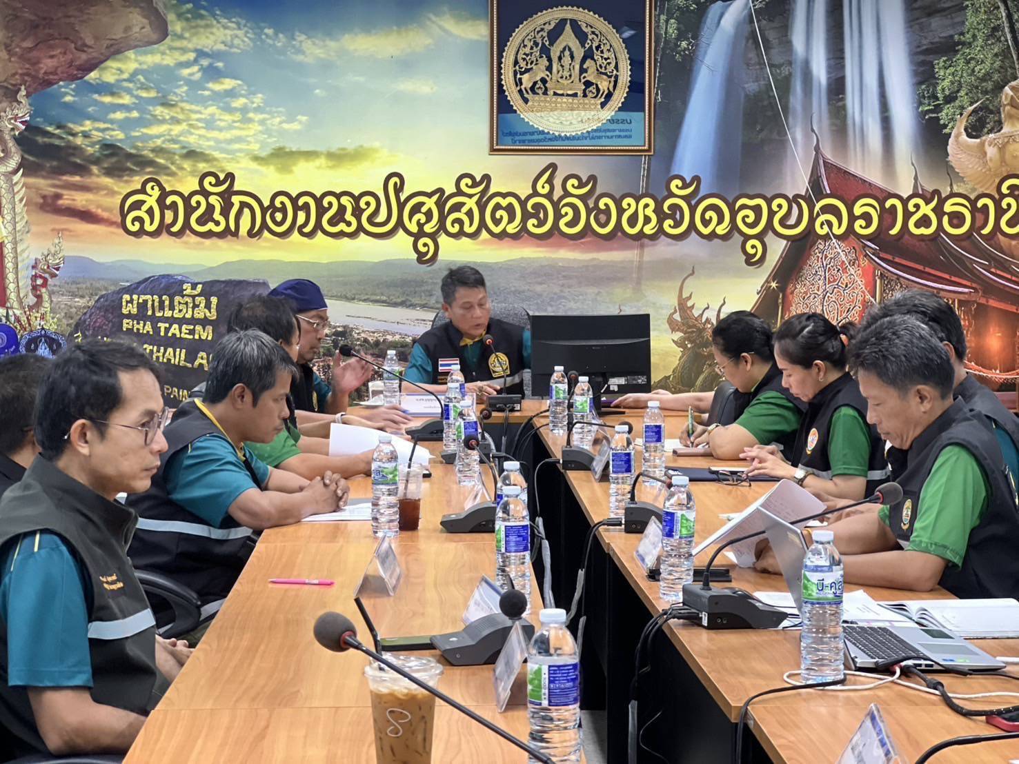 วันอังคารที่ 7 ตุลาคม 2568 เวลา 09.30 น. นายสัตวแพทย์บุญญกฤช ปิ่นประสงค์ รองอธิบดีกรมปศุสัตว์ เป็นประธานการประชุมกำกับติดตามงานด้านปศุสัตว์ในพื้นที่จังหวัดอุบลราชธานี เพื่อเตรียมความพร้อมด้านปศุสัตว์รับมือภัยพิบัติ ติดตามสถานการณ์น้ำ มอบแนวทางการดำเนินงาน รับฟังปัญหาอุปสรรคจากพื้นที่ และมอบนโยบายในการปฏิบัติงานแก่เจ้าหน้าที่ในพื้นที่ โดยให้ความสำคัญกับการดูแลสุขภาพสัตว์ สวัสดิภาพสัตว์ และการป้องกันควบคุมโรคระบาดในสัตว์ พร้อมเน้นย้ำให้เจ้าหน้าที่ทุกระดับเร่งให้ความช่วยเหลือและบริการแก่เกษตรกรผู้เลี้ยงสัตว์อย่างต่อเนื่อง โดยเฉพาะการให้บริการตรวจสุขภาพสัตว์ การเคลื่อนย้ายสัตว์ และการควบคุมป้องกันโรคในช่วงสถานการณ์น้ำท่วม