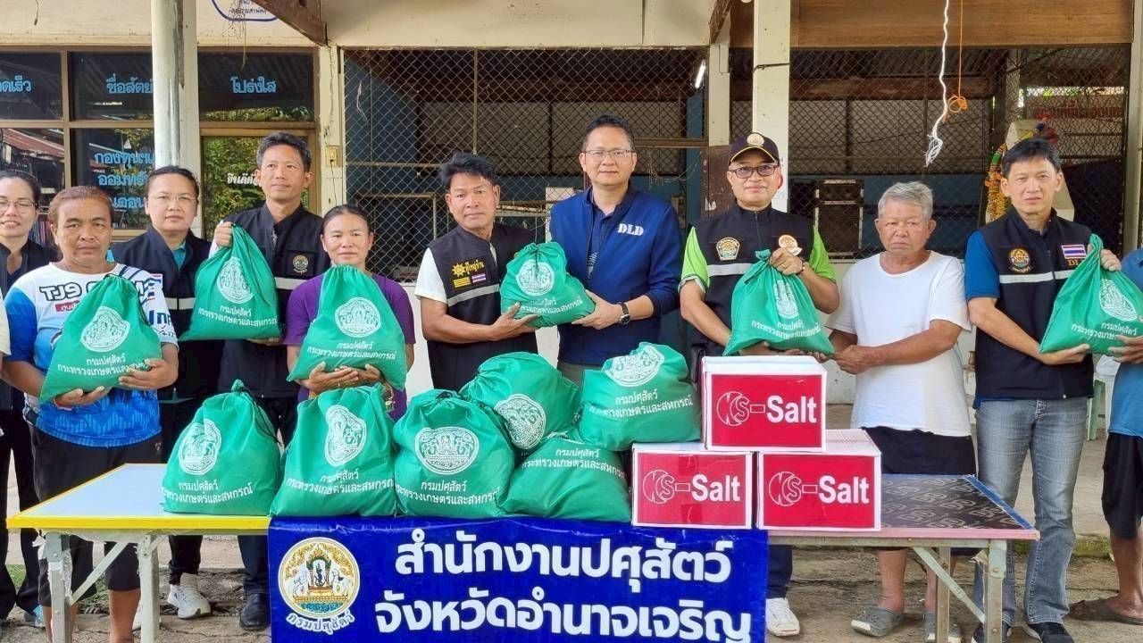 เวลา 13.30 น. นายสัตวแพทย์บุญญกฤช ปิ่นประสงค์ รองอธิบดีกรมปศุสัตว์ พร้อมด้วย นายสัตวแพทย์อดิศร ชาติสุภาพ ปศุสัตว์เขต 3 และเจ้าหน้าที่สำนักงานปศุสัตว์เขต 3 ลงพื้นที่มอบเสบียงอาหารสัตว์ มอบถุงยังชีพสำหรับสัตว์ช่วยเหลือเกษตรกรผู้เลี้ยงสัตว์ในพื้นที่อำเภอวารินชำราบ จังหวัดอุบลราชธานี เพื่อบรรเทาความเดือดร้อนและลดผลกระทบต่อสัตว์เลี้ยงจากอุทกภัย