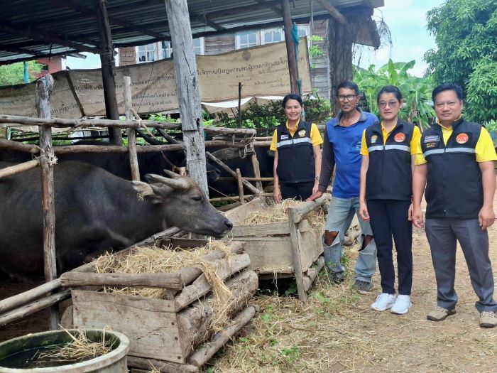 วันที่ 8 ตุลาคม 2568 นายพีรศักดิ์ ไชยชนะแสง ปศุสัตว์จังหวัดชัยภูมิ มอบหมายให้กลุ่มยุทธศาสตร์และสารสนเทศการปศุสัตว์ และสำนักงานปศุสัตว์อำเภอคอนสวรรค์ ลงพื้นที่ตรวจติดตามสถานการณ์เกษตรกรที่ได้รับผลกระทบจากพายุฝนตกหนัก ทำให้ได้รับผลกระทบน้ำเอ่อท่วมพื้นที่เกษตร และแปลงหญ้าเลี้ยงสัตว์ได้รับความเสียหาย ทำให้ขาดแคลนอาหารสัตว์ในพื้นที่หมู่ 4 บ้านโนนแต้ ตำบลหนองขาม อำเภอคอนสวรรค์ จังหวัดชัยภูมิ เกษตรกร 28 ราย โค จำนวน 99 ตัว กระบือ จำนวน 54 ตัว ทั้งนี้ได้มอบเวชภัณฑ์จำนวน 28 ชุด และพืชอาหารสัตว์พระราชทาน จำนวน 5,000 กิโลกรัม เพื่อบรรเทาความเดือนร้อนให้กับเกษตรกรต่อไป