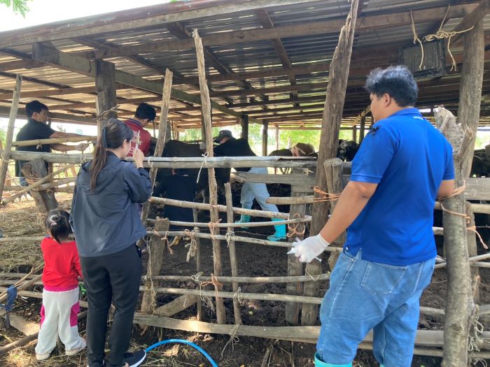 วันที่ 11 พฤศจิกายน 2568 นายพีรศักดิ์ ไชยชนะแสง ปศุสัตว์จังหวัดชัยภูมิ มอบหมายให้กลุ่มพัฒนาสุขภาพสัตว์ สำนักงานปศุสัตว์จังหวัดชัยภูมิ ร่วมกับสำนักงานปศุสัตว์อำเภอคอนสวรรค์ ลงพื้นที่ตรวจเยี่ยมฟาร์มของเกษตรกร ต.ศรีสำราญ อ.คอนสวรรค์ จ.ชัยภูมิ เป็นเกษตรกรผู้เลี้ยงกระบือ ภายหลังได้รับแจ้งว่ากระบือของเกษตรกรรายดังกล่าวป่วย จึงได้ลงพื้นที่ตรวจเยี่ยมและตรวจประเมินสุขภาพเบื้องต้นพร้อมทั้งเก็บตัวอย่างเพื่อส่งตรวจทางห้องปฏิบัติการ และแนะนำการเลี้ยงการดูแลสุขภาพสัตว์ในช่วงเปลี่ยนถ่ายฤดูการ และการป้องกันโรคระบาดภายในฟาร์ม