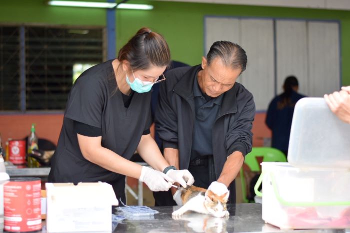 โดยมีเกษตรกรที่นำสุนัขและแมวมารับบริการผ่าตัดทำหมัน จำนวน 83 ราย สัตว์จำนวน 83 ตัว แยกเป็นสุนัขเพศผู้ 11 ตัว สุนัขเพศเมีย 40 ตัว แมวเพศผู้ 6 ตัว และแมวเพศเมีย 26 ตัว มอบเวชภัณฑ์สำหรับเกษตรกรผู้เลี้ยงสัตว์ จำนวนทั้งสิ้น 28 ราย และมอบไข่ไก่แก่เกษตรกร จำนวน 15 ราย โดยได้รับสนับสนุนจากบริษัทอรรณพชัยภูมิฟาร์ม