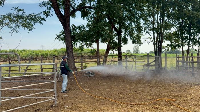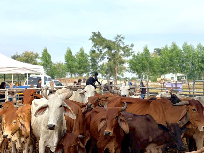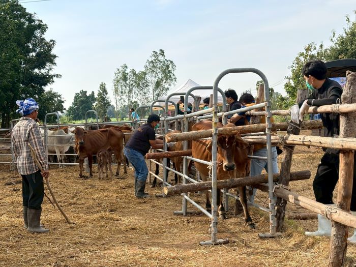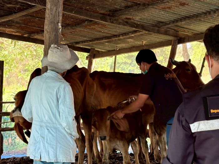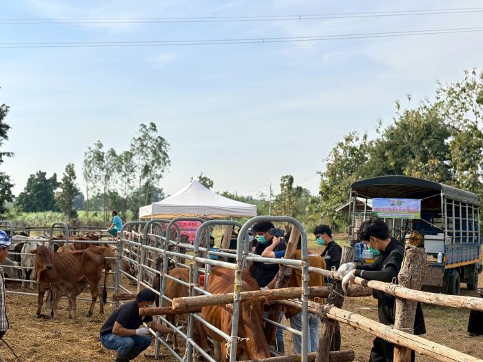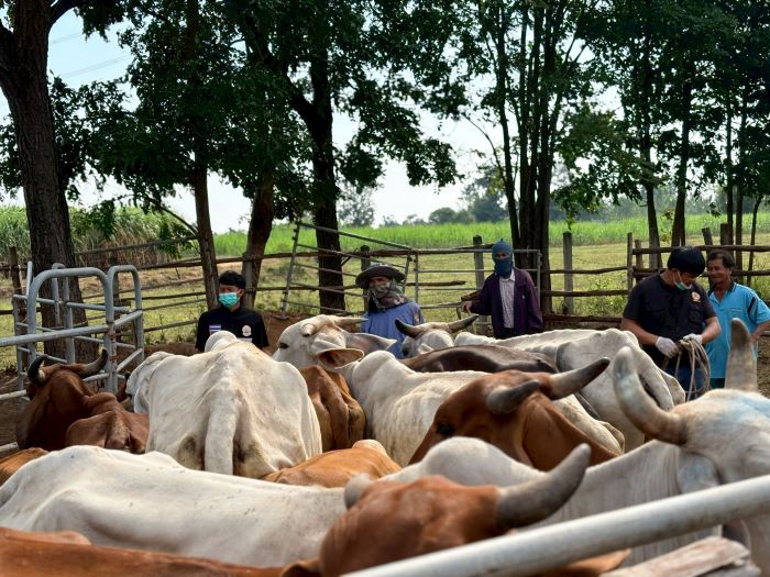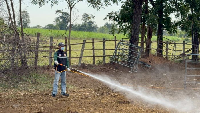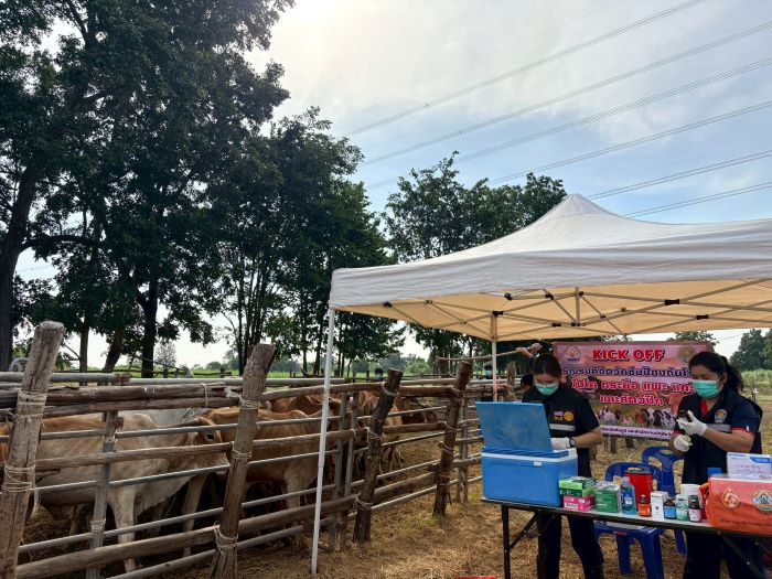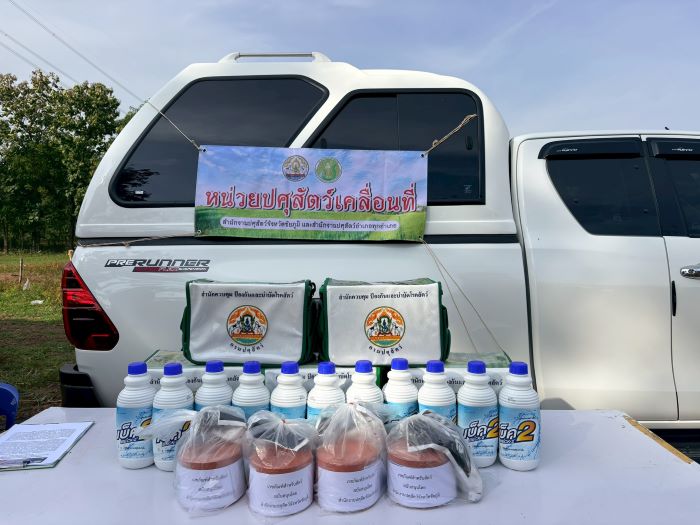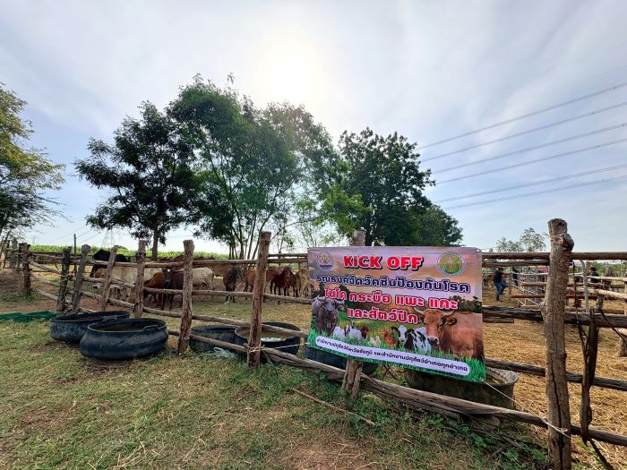วันที่ 26 พฤศจิกายน 2568 นายพีรศักดิ์ ไชยชนะแสง ปศุสัตว์จังหวัดชัยภูมิ พร้อมด้วย สพ.ญ.ทับทอง บุญเติม และเจ้าหน้าที่กลุ่มพัฒนาสุขภาพสัตว์ ร่วมกับสำนักงานปศุสัตว์อำเภอบ้านเขว้า จัด Kick Off รณรงค์ฉีดวัคซีนป้องกันโรคปากเเละเท้าเปื่อย และการทำลายเชื้อโรคในพื้นที่เสี่ยง รอบที่ 1 ประจำปีงบประมาณ พ.ศ. 2569 ในพื้นที่อำเภอบ้านเขว้า เพื่อประชาสัมพันธ์โครงการรณรงค์ฉีดวัคซีนป้องกันโรคปากและเท้าเปื่อยและการทำลายเชื้อโรคในพื้นที่เสี่ยงให้เกษตรกรผู้เลี้ยงสัตว์ในพื้นที่ รวมถึงสร้างความรู้ความเข้าใจ และให้ตระหนักถึงความสำคัญในการป้องกันการเกิดโรคระบาด และช่วยลดความสูญเสียที่อาจเกิดขึ้นแก่เกษตรกรในพื้นที่ได้ พร้อมกันนี้ จะได้มีการดำเนินการรณรงค์ฉีดวัคซีนป้องกันโรคปากและเท้าเปื่อยและการทำลายเชื้อโรคในพื้นที่เสี่ยงในทุกอำเภอโดยพร้อมเพรียง