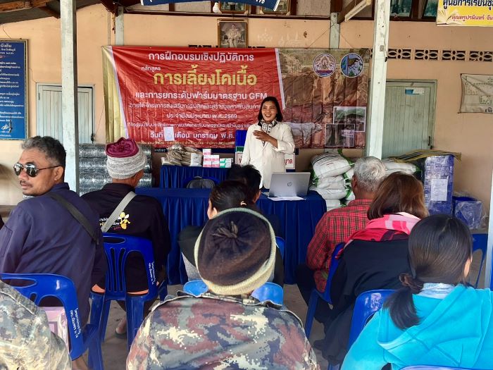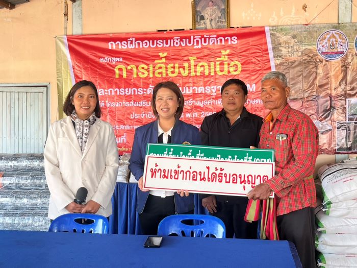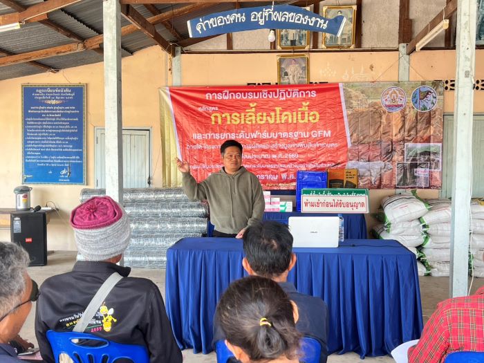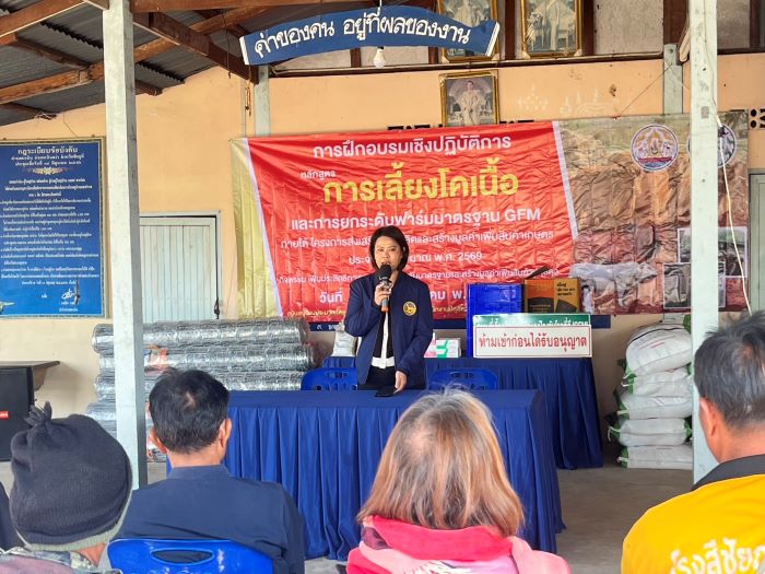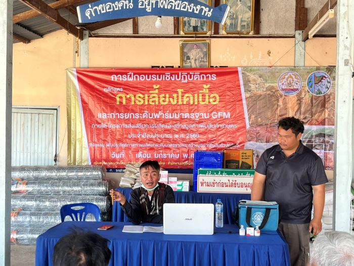 วันที่ 8 มกราคม 2569 นายพีรศักดิ์ ไชยชนะแสง ปศุสัตว์จังหวัดชัยภูมิ มอบหมายให้ มอบหมายให้กลุ่มยุทธศาสตร์และสารสนเทศการปศุสัตว์ ร่วมกับสำนักงานปศุสัตว์อำเภอเนินสง่า จัดฝึกอบรมเชิงปฏิบัติการ "หลักสูตรการเลี้ยงโคเนื้อและการยกระดับฟาร์มมาตรฐานGFM" ภายใต้โครงการส่งเสริมการผลิตและการสร้างมูลค่าเพิ่มสินค้าเกษตร ประจำปีงบประมาณ 2569 กิจกรรม : เพิ่มประสิทธิภาพการผลิตยกระดับมาตรฐานและสร้างมูลค่าเพิ่มสินค้าปศุสัตว์ โดยมีนางภัทรชนันท์ ผ่องผาด นายอำเภอเนินสง่า เป็นประธานในการเปิดการฝึกอบรม เกษตรเข้าร่วม จำนวน 15 ราย ณ ศาลากลางหมู่บ้านเนินเพชร หมู่ที่ 14 ตำบลตาเนิน อำเภอเนินสง่าจังหวัดชัยภูมิ