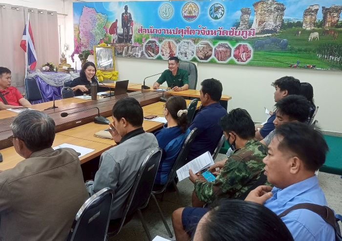 วันที่ 21 มกราคม 2569 นายพีรศักดิ์ ไชยชนะแสง ปศุสัตว์จังหวัดชัยภูมิ เป็นประธานในการเปิดการอบรมผู้ประกอบการโรงฆ่าสัตว์ที่ได้รับใบอนุญาตประกอบกิจการฆ่าสัตว์ในพื้นที่จังหวัดชัยภูมิ หลักสูตร “การใช้ระบบปฏิบัติการเกี่ยวกับการออกใบอนุญาตประกอบกิจการฆ่าสัตว์ และการกำกับดูแลการประกิจการฆ่าสัตว์” โดยมีวัตถุประสงค์ให้ผู้ประกอบการโรงฆ่าสัตว์รับทราบและเข้าใจการใช้ระบบปฏิบัติการเกี่ยวกับการออกใบอนุญาตประกอบกิจการฆ่าสัตว์และการกำกับดูแลการประกิจการฆ่าสัตว์ของกรมปศุสัตว์ รวมถึงเข้าใจขั้นตอนและกระบวนการแจ้งการฆ่าสัตว์และการตอบรับการฆ่าสัตว์ด้วยระบบอิเล็กทรอนิกส์ ตลอดจนสามารถใช้งานได้อย่างมีประสิทธิภาพ ซึ่งมีผู้ประกอบการเข้าอบรมจำนวนทั้งสิ้น 59 ราย