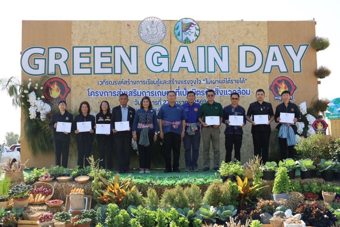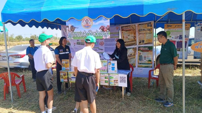 วันที่ 27 มกราคม 2569 นายพีรศักดิ์ ไชยชนะแสง ปศุสัตว์จังหวัดชัยภูมิ เข้าร่วมกิจกรรม Green Gain Day เวทีรณรงค์สร้างการเรียนรู้และสร้างแรงจูงใจ "ไม่เผาแต่ได้รายได้" พร้อมด้วยเจ้าหน้าที่กลุ่มส่งเสริมและพัฒนาการปศุสัตว์และสำนักงานปศุสัตว์อำเภอเมืองชัยภูมิ เข้าร่วมจัดนิทรรศการการผลิตอาหารสัตว์จากเศษวัสดุเหลือใช้ โดยมีนายอนันต์ นาคนิยม ผู้ว่าราขการจังหวัดชัยภูมิ เป็นประธานในงาน วัตถุประสงค์เพื่อส่งเสริมการทำเกษตรที่เป็นมิตรกับสิ่งแวดล้อม สร้างการมีส่วนร่วมของเกษตรกรและชุมชนในการบริหารจัดการพื้นที่เพื่อแก้ไขปัญหาการเผาในพื้นที่เกษตร สร้างรายได้และมูลค่าเพิ่มจากวัสดุเหลือใช้ทางการเกษตร โดยสำนักงานปศุสัตว์ชัยภูมิ ได้ให้ความรู้การผลิตอาหารสัตว์จากเศษวัสดุเหลือใช้ทางเกษตร เช่น ฟางข้าว ใบอ้อย เป็นต้น ณ บ้านโนนแดง ม.7 ต.บุ่งคล้า อ.เมืองชัยภูมิ จ.ชัยภูมิ