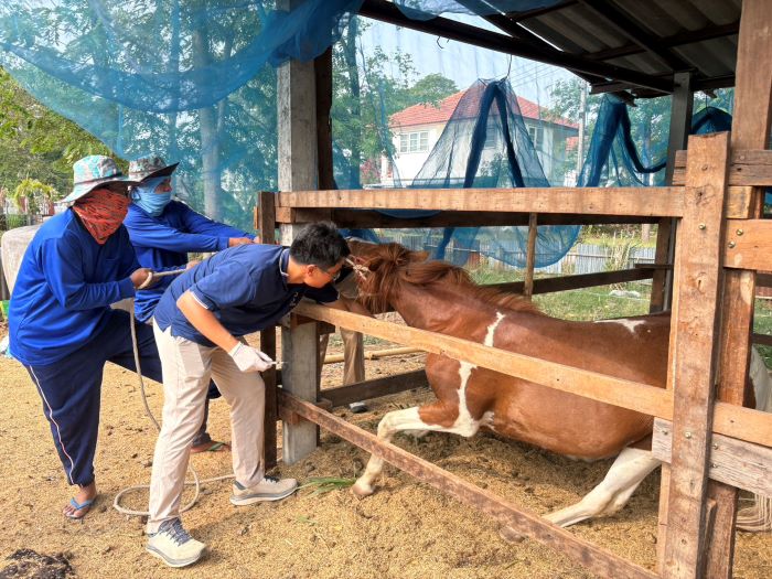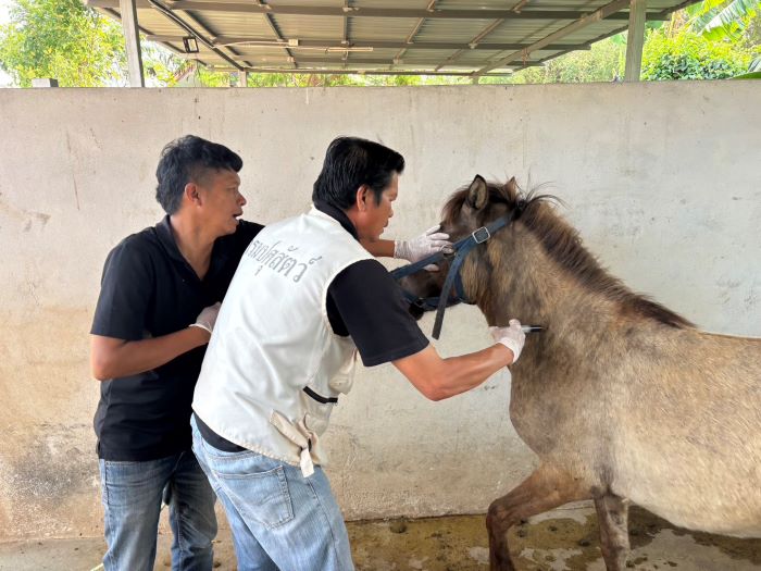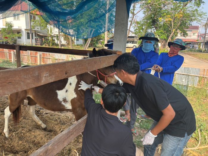วันที่ 24 มีนาคม 2569นายพีรศักดิ์ ไชยชนะแสง ปศุสัตว์จังหวัดชัยภูมิ มอบหมายให้กลุ่มพัฒนาสุขภาพสัตว์ สำนักงานปศุสัตว์จังหวัดชัยภูมิ ร่วมกับสำนักงานปศุสัตว์อำเภอเมืองชัยภูมิ ลงพื้นที่เก็บตัวอย่างเลือดม้าเพื่อเฝ้าระวังกาฬโรคแอฟริกาในม้า(AHS) ประจำปีงบประมาณ พ.ศ.2569 ในเขตพื้นที่ อ.เมืองชัยภูมิ จ.ชัยภูมิ พร้อมทั้งดูแลสุขภาพสัตว์เบื้องต้นให้แก่เกษตรกรผู้เลี้ยงม้า