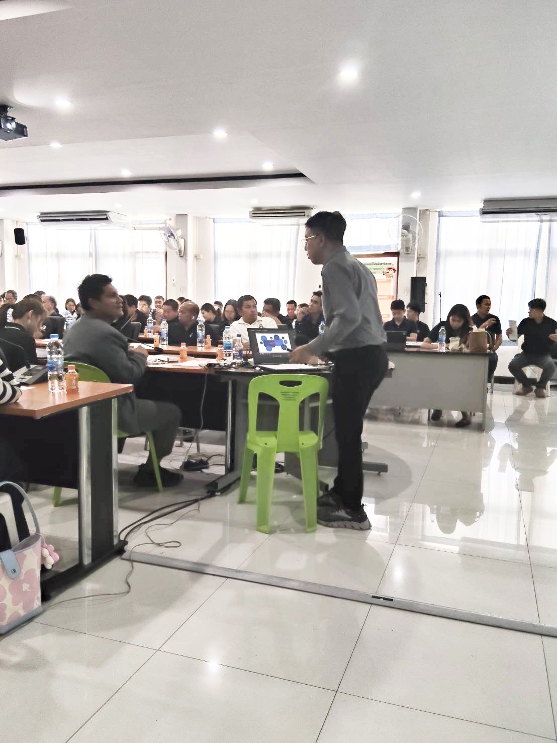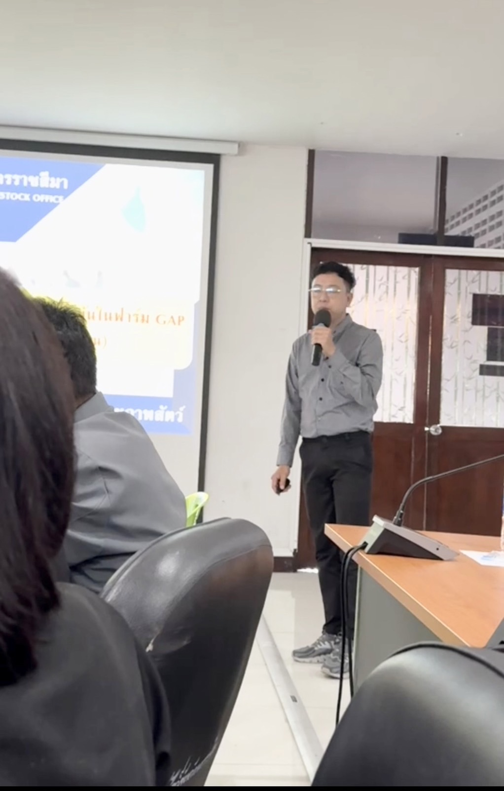 นายพศวีร์ สมใจ ปศุสัตว์จังหวัดนครราชสีมา มอบหมายให้กลุ่มพัฒนาสุขภาพสัตว์ และกลุ่มพัฒนาคุณภาพสินค้าปศุสัตว์ ร่วมกับสำนักงานปศุสัตว์เขต 3 และเข้าหน้าที่ปศุสัตว์อำเภอในพื้นที่จังหวัดนครราชสีมา ณ ห้องประชุม 1 สำนักงานปศุสัตว์จังหวัดนครราชสีมา โดยมีผู้เข้าร่วมประชุมจากบริษัทเอกชน ผู้ประกอบการฟาร์ม ตัวแทน/อิสระ จำนวน 150 ราย เพื่อทราบแนวทางการปฏิบัติทางการเกษตรที่ดีด้านปศุสัตว์ และการจัดการความปลอดภัยทางชีวภาพในรูปแบบเข้มข้นในฟาร์ม GAP ของกรมปศุสัตว์