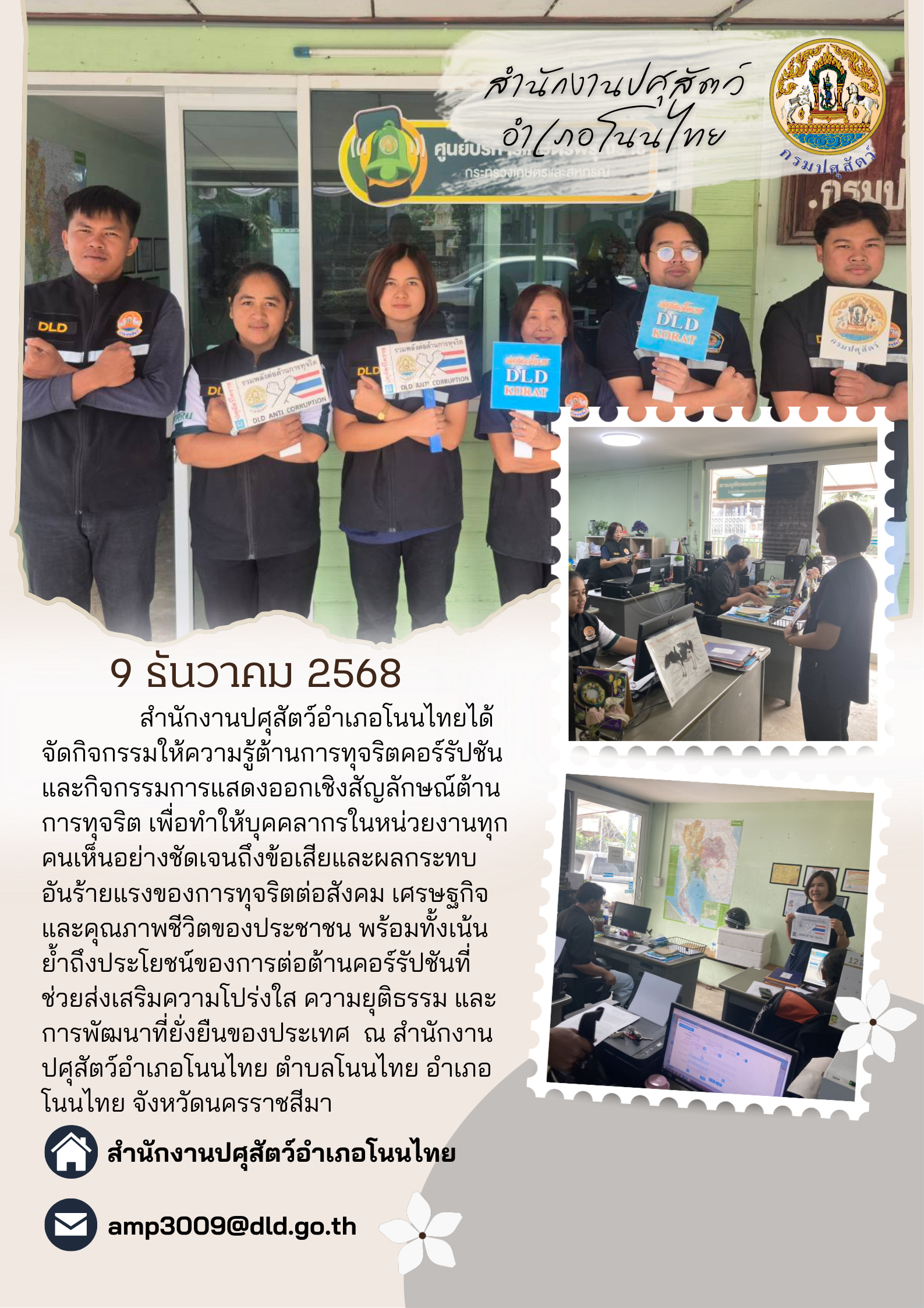 “ปศุสัตว์โคราชจัดกิจกรรมรวมพลังต่อต้านการทุจริตและประพฤติมิชอบ”