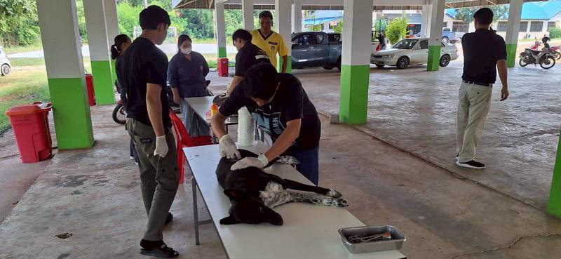 ปศุสัตว์โคราช ร่วมกับ อบต.หนองแจ้งใหญ่ ฉีดวัคซีนวัคซีนป้องกันโรคพิษสุนัขบ้า