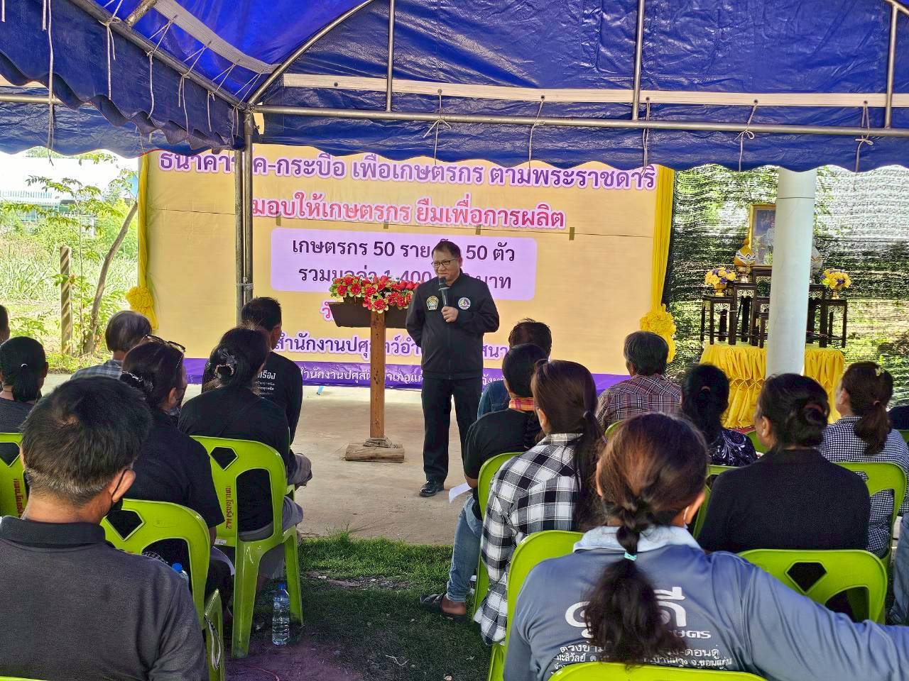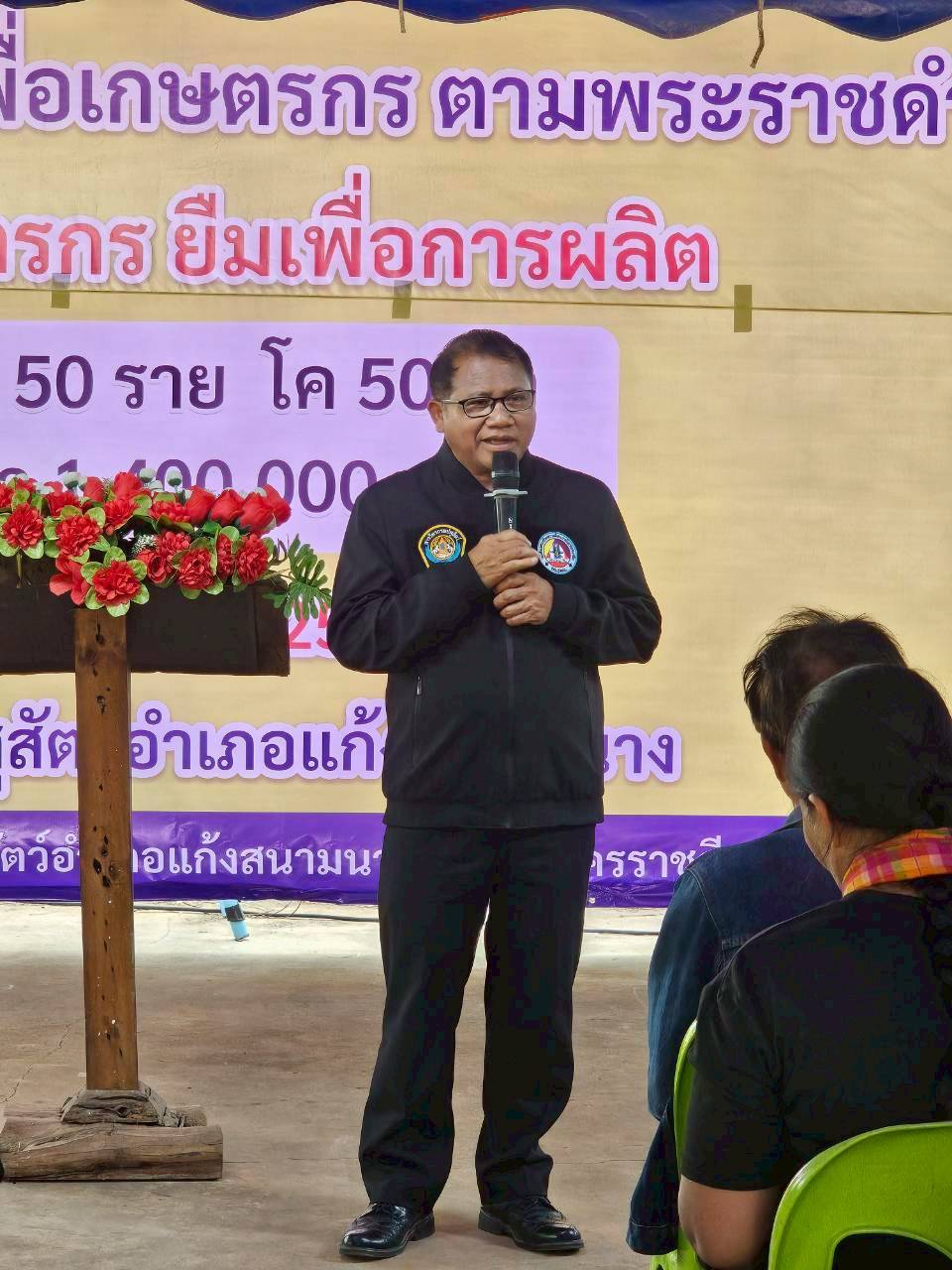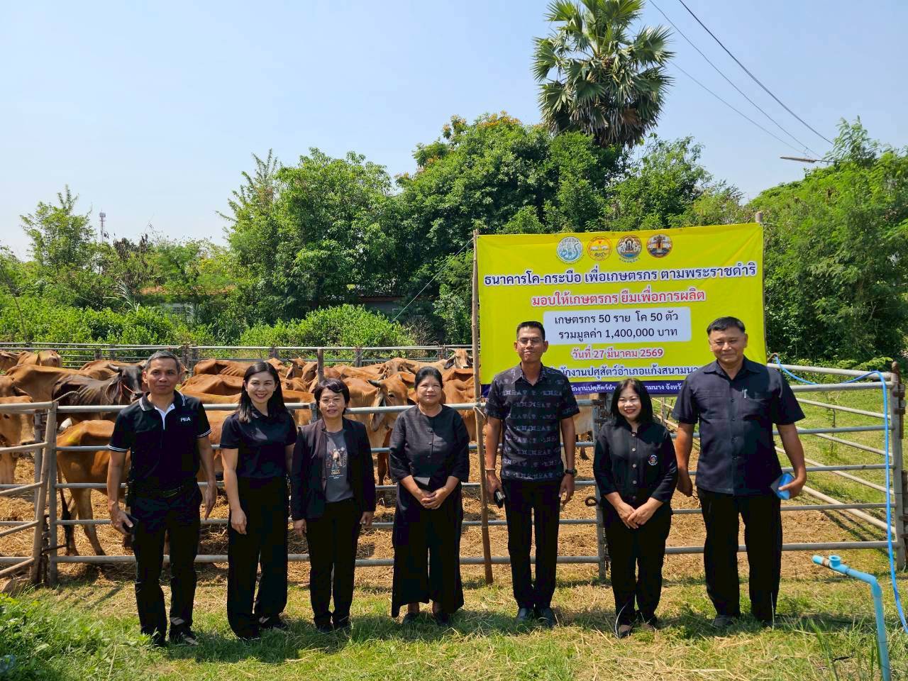 27 มี.ค.69 นายพศวีร์ สมใจ ปศุสัตว์จังหวัดนครราชสีมา เป็นประธานในพิธีมอบโค จำนวน 50 ตัว ซึ่งได้รับสนับสนุนจากกรมปศุสัตว์ ให้แก่เกษตรกร จำนวน 50 ราย ยืมเพื่อการผลิตตามโครงการธนาคารโค-กระบือ เพื่อเกษตรกร ตามพระราชดำริ โดยมีนายเอกราช คลังอาวุธ ปศุสัตว์อำเภอแก้งสนามนาง เป็นผู้กล่าวรายงาน พร้อมด้วยหัวหน้าส่วนราชการ ผู้นำท้องที่/ท้องถิ่น ร่วมในพิธี ณ สำนักงานปศุสัตว์อำเภอแก้งสนามนาง จังหวัดนครราชสีมา #ครอบครัวปศุสัตว์ ทำด้วยใจ ทำให้ไว ทำได้จริง