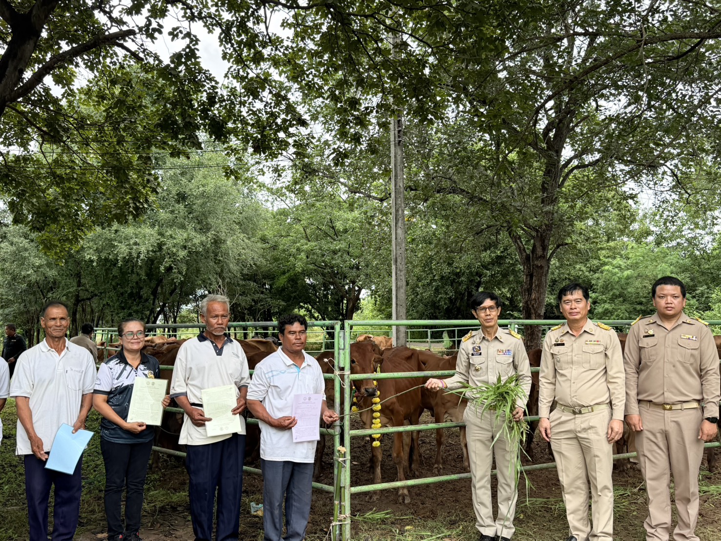 สนง.ปศุสัตว์อำเภอพระทองคำ จัดพิธีมอบโค ธ.ค.ก.75 ตัวให้เกษตรกรยืมเพื่อการผลิต