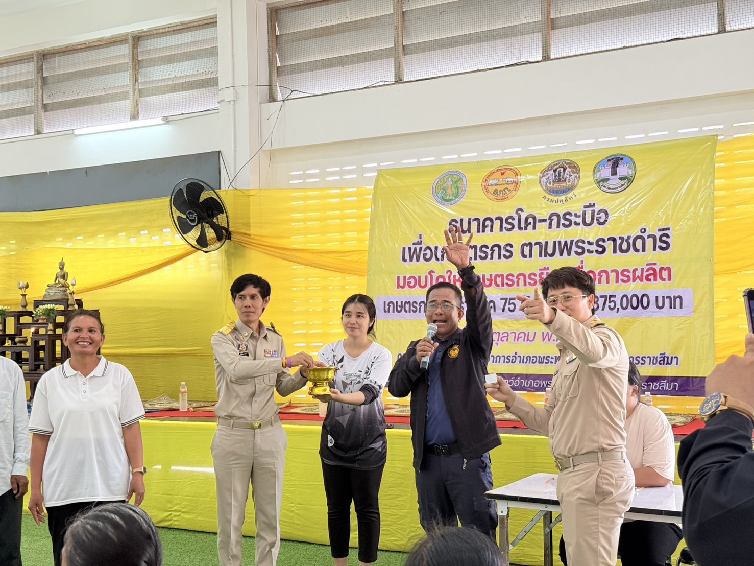 31 ต.ค.68 นายพศวีร์ สมใจ ปศุสัตว์จังหวัดนครราชสีมา มอบหมายให้กลุ่มยุทธศาสตร์ฯพร้อมด้วย จนท.จ้างเหมา ธ.ค.ก. ร่วมพิธีมอบโคให้แก่เกษตรกร โดยมีนายอำนวยศิลป์ มานะงาน นายอำเภอพระทองคำ เป็นประธานในพิธี และหัวหน้าส่วนราชการร่วมเป็นเกียรติในพิธี มอบโคให้เกษตรกรจำนวน 52 ราย โค 75 ตัว ณ หอประชุมปริสุทโธ ที่ว่าการอำเภอพระทองคำ จ.นครราชสีมา