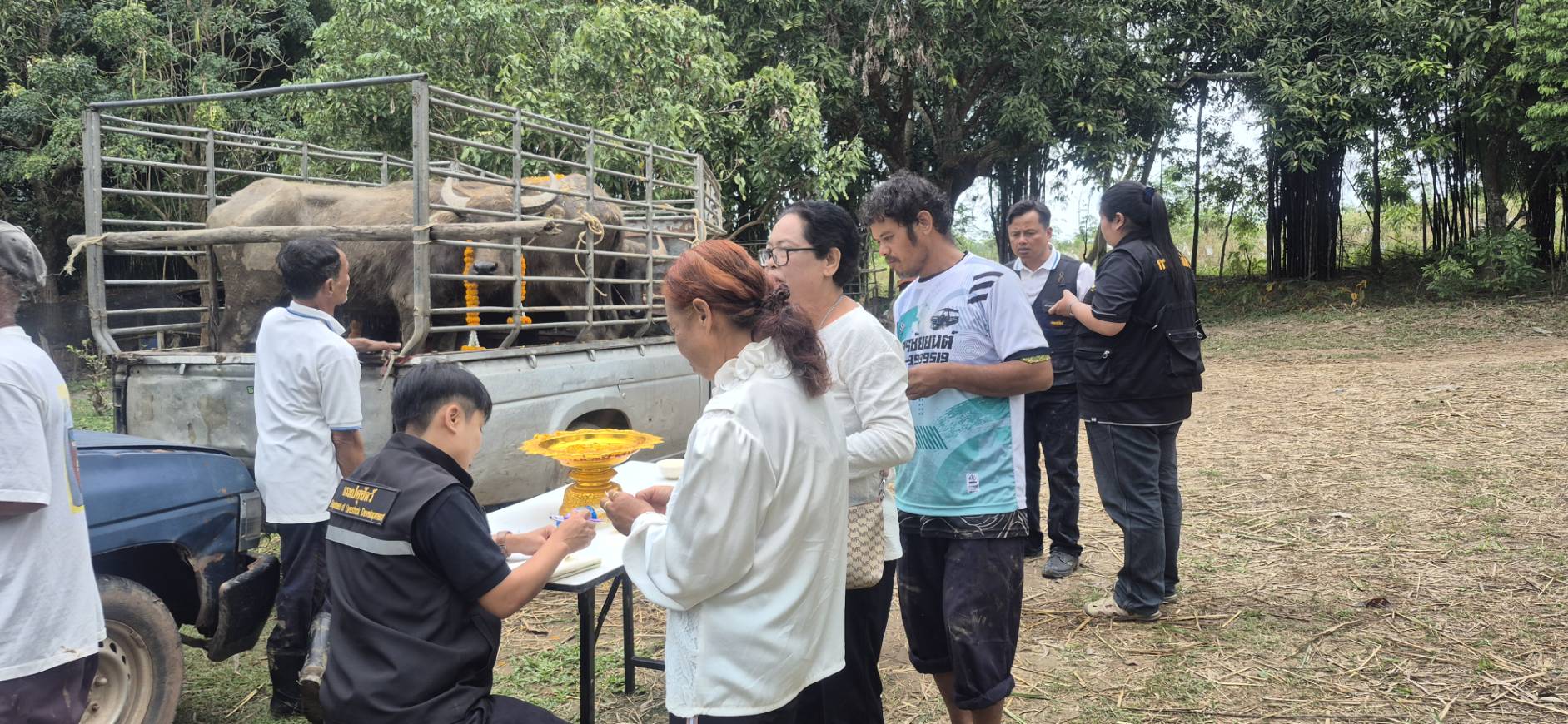 7 พ.ย.68 นายพศวีร์ สมใจ ปศุสัตว์จังหวัดนครราชสีมา มอบหมายให้นายวินัย วงษ์ด่านเจริญ หัวหน้ากลุ่มยุทธศาสตร์ฯ และนายสุชาติ ไชยวงค์ ปศุสัตว์อำเภอวังน้ำเขียว พร้อมด้วยเจ้าหน้าที่ รับมอบกระบือเพศเมีย จำนวน 6 ตัว จากผู้มีจิตศรัทธา นายเค็น ไค นางสาวศิริวรรณ นิลยอง ร.ต.ผจญ -นางสมบูรณ์ นิลยอง และด.ญ.เฌอริลิน ไค และมอบให้เกษตรกรในพื้นที่ยืมเลี้ยงเพื่อการผลิต ตามโครงการธนาคารโค-กระบือ เพื่อเกษตรกร ตามพระราชดำริ ณ บ้านคลองนกแก้ว ต.วังหมี อ.วังน้ำเขียว จ.นครราชสีมา