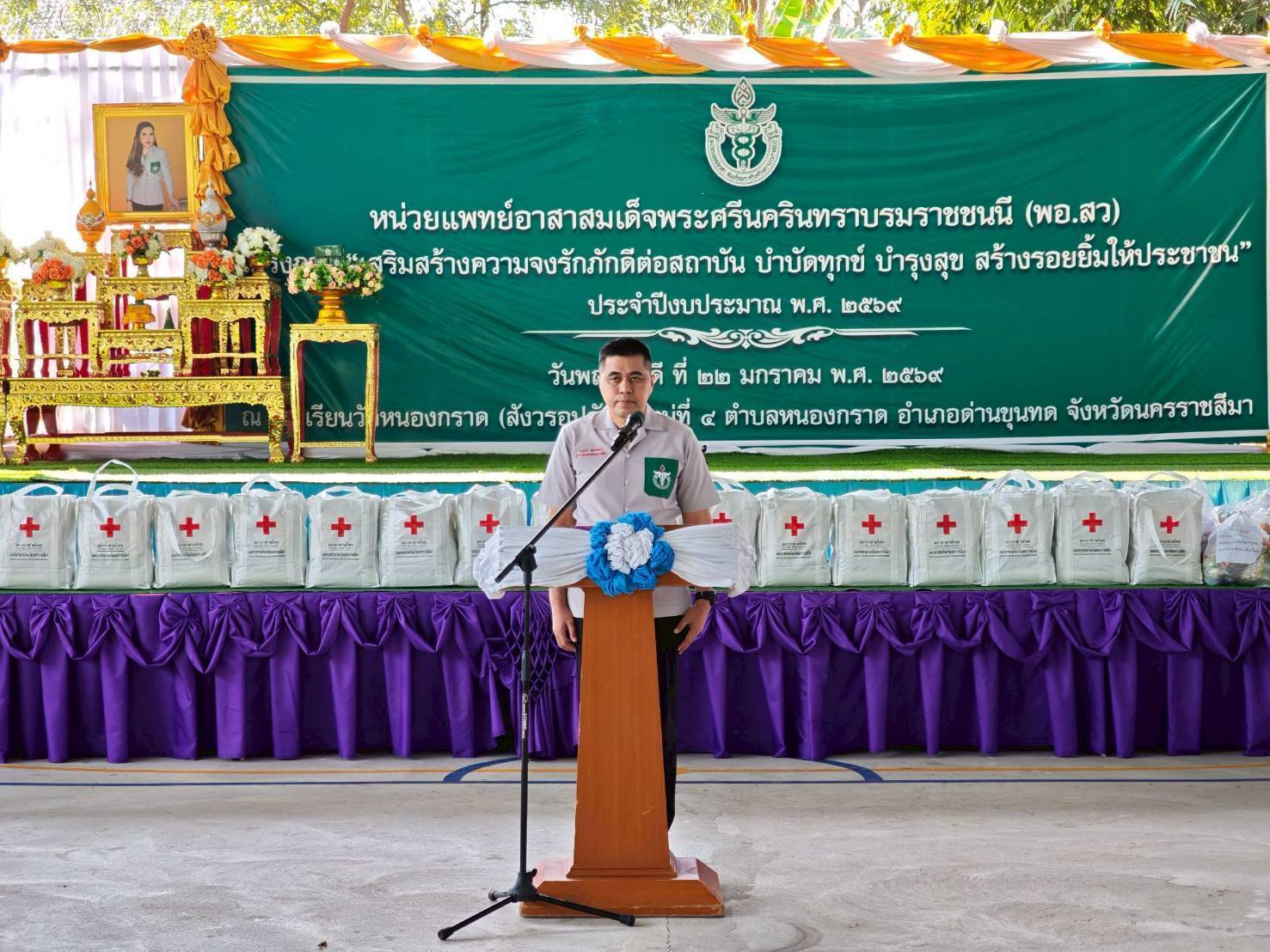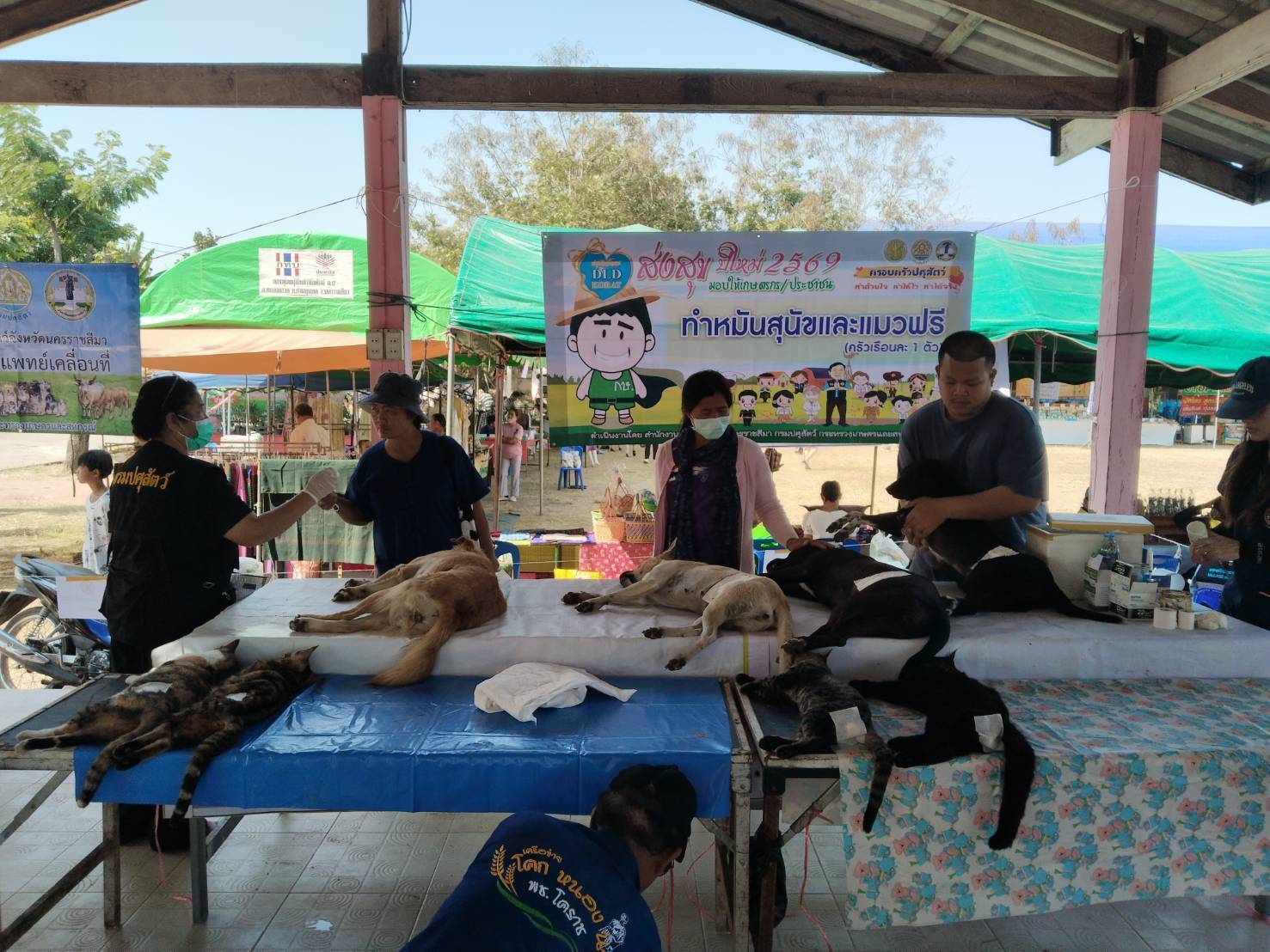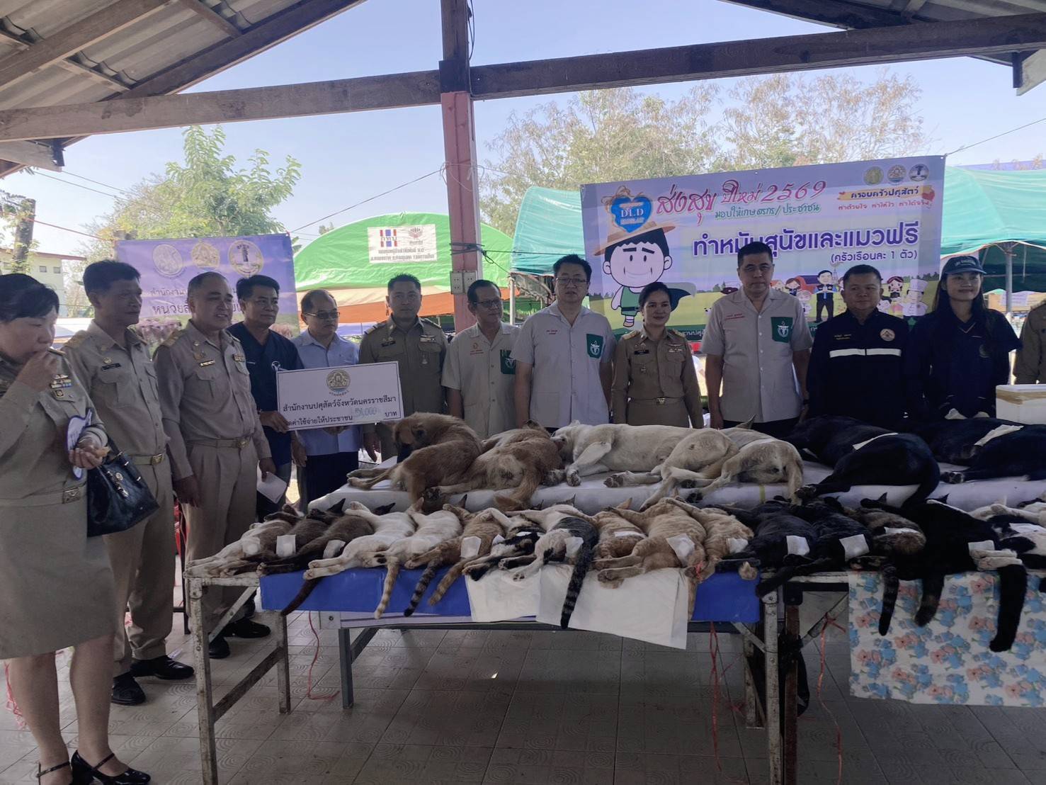 วันที่ 22 มกราคม 2569 นายอนุพงศ์ สุขสมนิตย์ ผู้ว่าราชการจังหวัดนครราชสีมา เป็นประธานเปิดงานจังหวัดเคลื่อนที่ และหน่วยแพทย์เคลื่อนที่ พอ.สว. ณ โรงเรียนวัดหนองกราด(สังวรอุปถัมภ์) ม. 4 ต.หนองกราด อ.ด่านขุนทด จ.นครราชสีมา ในการนี้ นายพศวีร์ สมใจ ปศุสัตว์จังหวัดนครราชสีมา ได้นำหน่วยสัตวแพทย์เคลื่อนที่ ให้บริการผ่าตัดทำหมันสุนัขและแมว จำนวน 45 ตัว แบ่งเป็นสุนัขเพศผู้ 2 ตัว เพศเมีย 9 ตัว แมวเพศผู้ 15 ตัว เพศเมีย 19 ตัว ฉีดวัคซีนป้องกันโรคพิษสุนัขบ้า จำนวน 50 ตัว ลดค่าใช้จ่ายให้แก่ประชาชน จำนวน 57,000บาท และมอบโค-กระบือในโครงการธนาคารโค-กระบือ เพื่อเกษตรกร ตามพระราชดำริ(ธ.ค.ก.)ให้เกษตรกรยืมเพื่อการผลิต จำนวน 5 ตัว มูลค่า 150,000 บาท เกษตรกร จำนวน 5 ราย และมอบกรรมสิทธิ์แม่โค จำนวน 3 ตัว เกษตรกร จำนวน 3 ราย มูลค่า 81,000 บาท