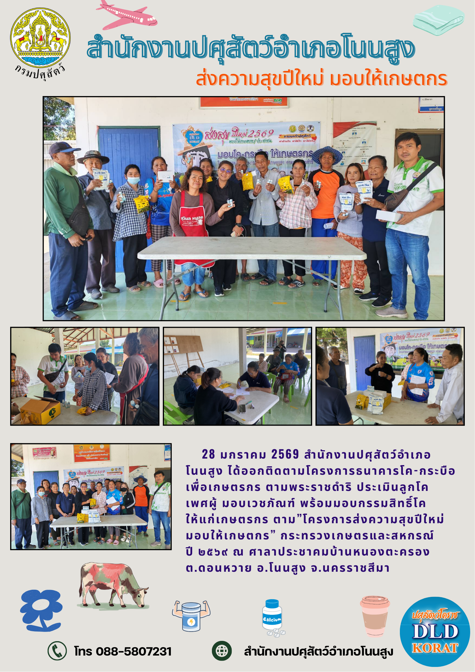 เพื่อเกษตรกร ตามพระราชดำริ ประเมินราคาลูกโคเพศผู้ มอบเวชภัณฑ์ พร้อมมอบกรรมสิทธิ์โค-กระบือให้แก่เกษตรกร ตาม"โครงการส่งความสุขปีใหม่มอบให้เกษตรกร" กระทรวงเกษตรและสหกรณ์ ปี 2569 ณ ศาลาประชาคมบ้านหนองตะครอง ต.ดอนหวาย อ.โนนสูง จ.นครราชสีมา