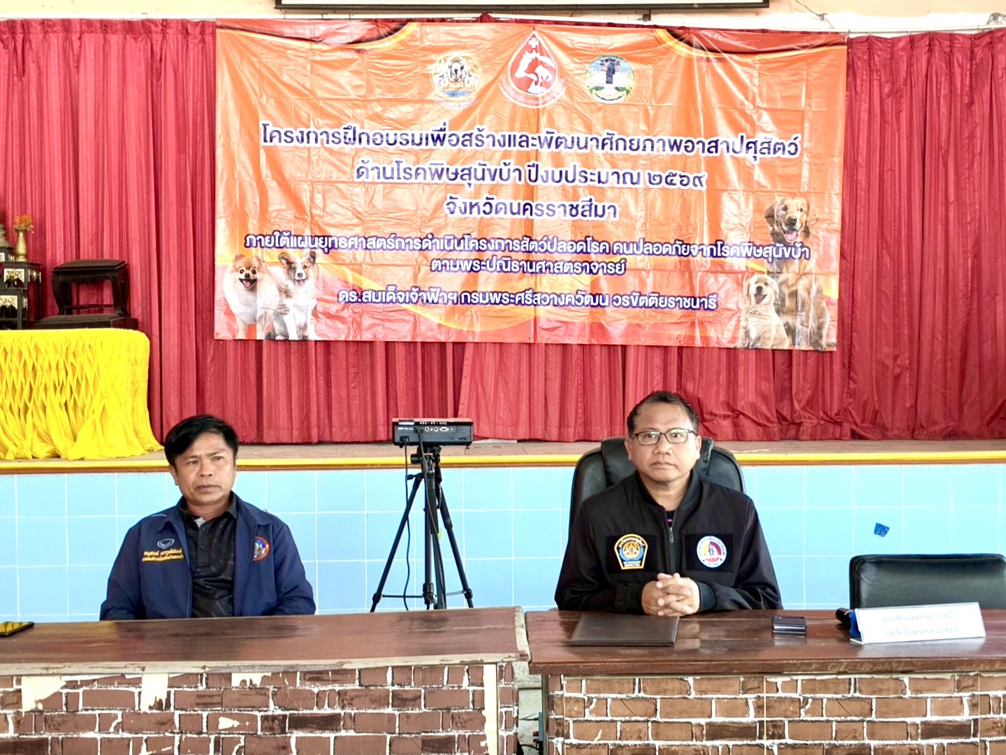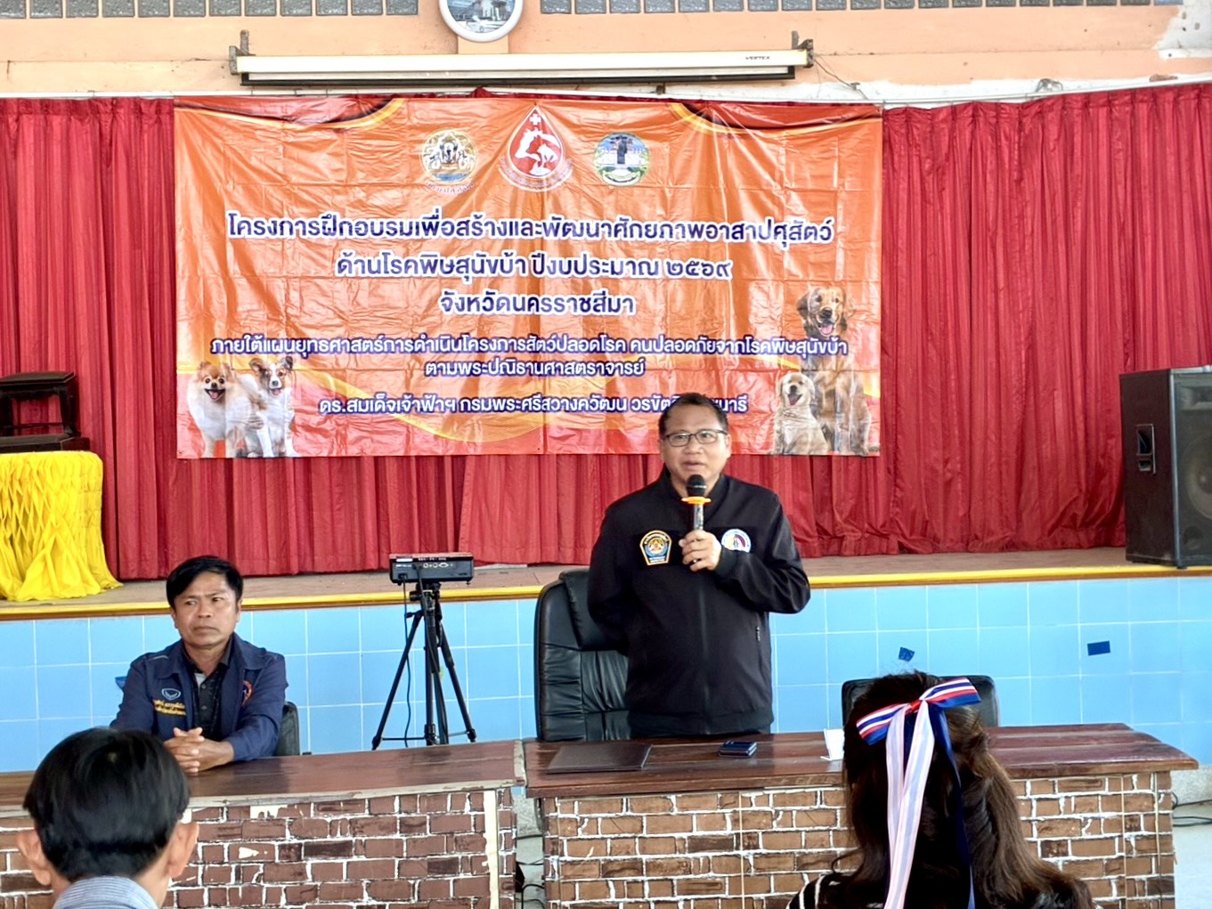 “โครงการฝึกอบรมเพื่อสร้างและพัฒนาศักยภาพอาสาปศุสัตว์ด้านโรคพิษสุนัขบ้า ปีงบประมาณ 2569 จังหวัดนครราชสีมา”