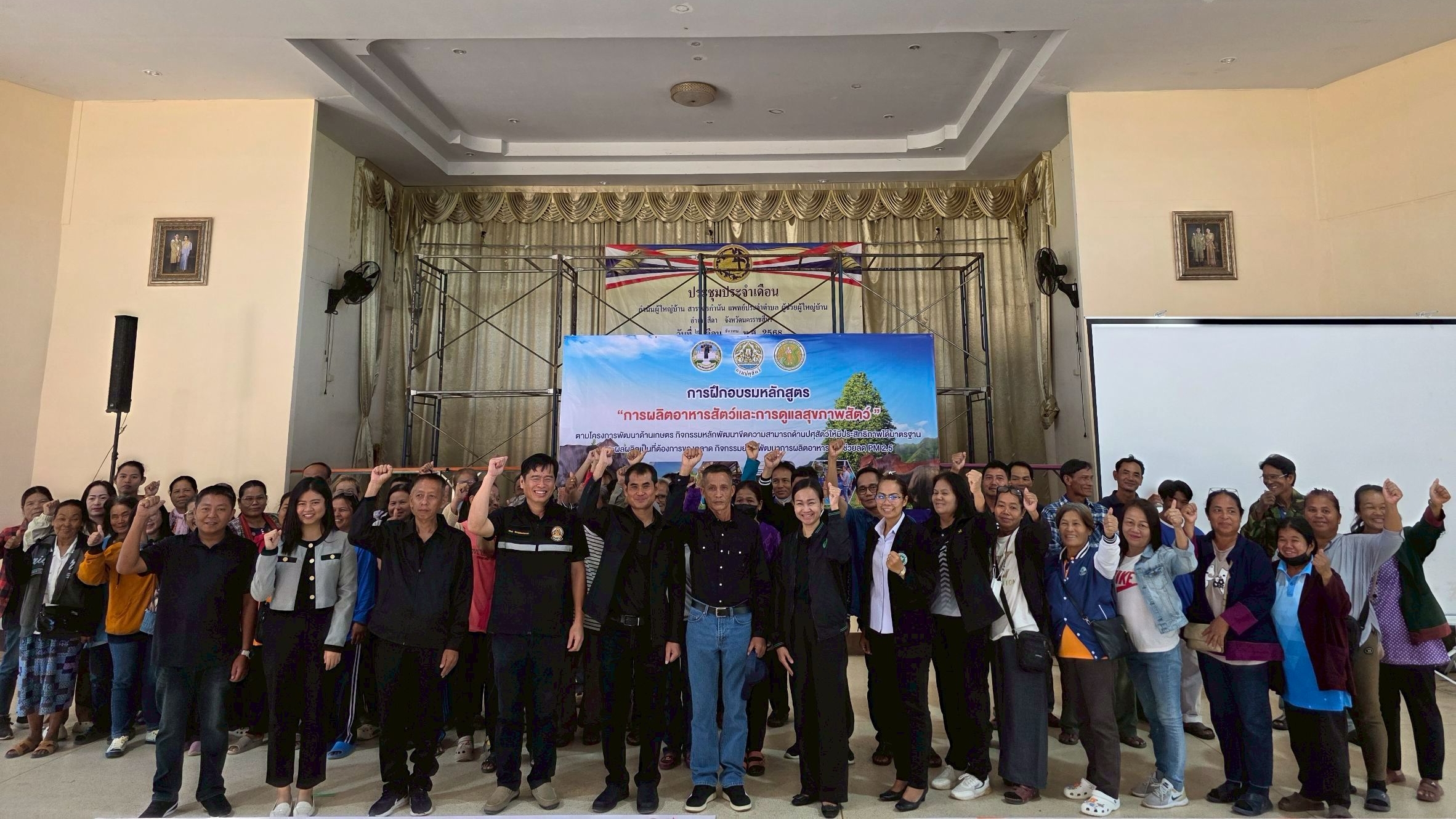 นายพศวีร์ สมใจ ปศุสัตว์จังหวัดนครราชสีมา เป็นประธานในพิธีเปิดการฝึกอบรมหลักสูตร “การผลิตอาหารสัตว์และการดูแลสุขภาพสัตว์”ให้กับเกษตรกรในพื้นที่อำเภอสีดา จำนวน 50 ราย เพื่อส่งเสริมให้เกษตรกรรวมกลุ่มผลิตอาหารสัตว์ที่มีคุณภาพสำรองไว้ใช้ยามขาดแคลน เพิ่มผลผลิตปศุสัตว์และลดต้นทุนด้านอาหารสัตว์ เพิ่มรายได้ให้เกษตรกร ส่งเสริมการใช้วัสดุเหลือใช้ทางการเกษตรมาเป็นอาหารสัตว์ ลดการเผา ลดฝุ่น PM 2.5 และให้ความรู้เกษตรกรในการจัดการด้านอาหารสัตว์ และการดูแลสุขภาพสัตว์ โดยมีปลัดอาวุโส หัวหน้าส่วนราชการ ปศุสัตว์อำเภอสีดา หัวหน้ากลุ่มยุทธศาสตร์และสารสนเทศการปศุสัตว์ คณะวิทยากร ร่วมในพิธี ณ หอประชุมอำเภอสีดา จ.นครราชสีมา ขอขอบคุณผู้มีส่วนเกี่ยวข้องทุกท่าน ทุกหน่วยงานที่ได้อำนวยความสะดวกด้านสถานที่ เครื่องเสียง และอุปกรณ์ที่ทำให้การจัดฝึกอบรมในวันนี้สำเร็จลุล่วงไปได้ด้วยดี #งบจังหวัด69
