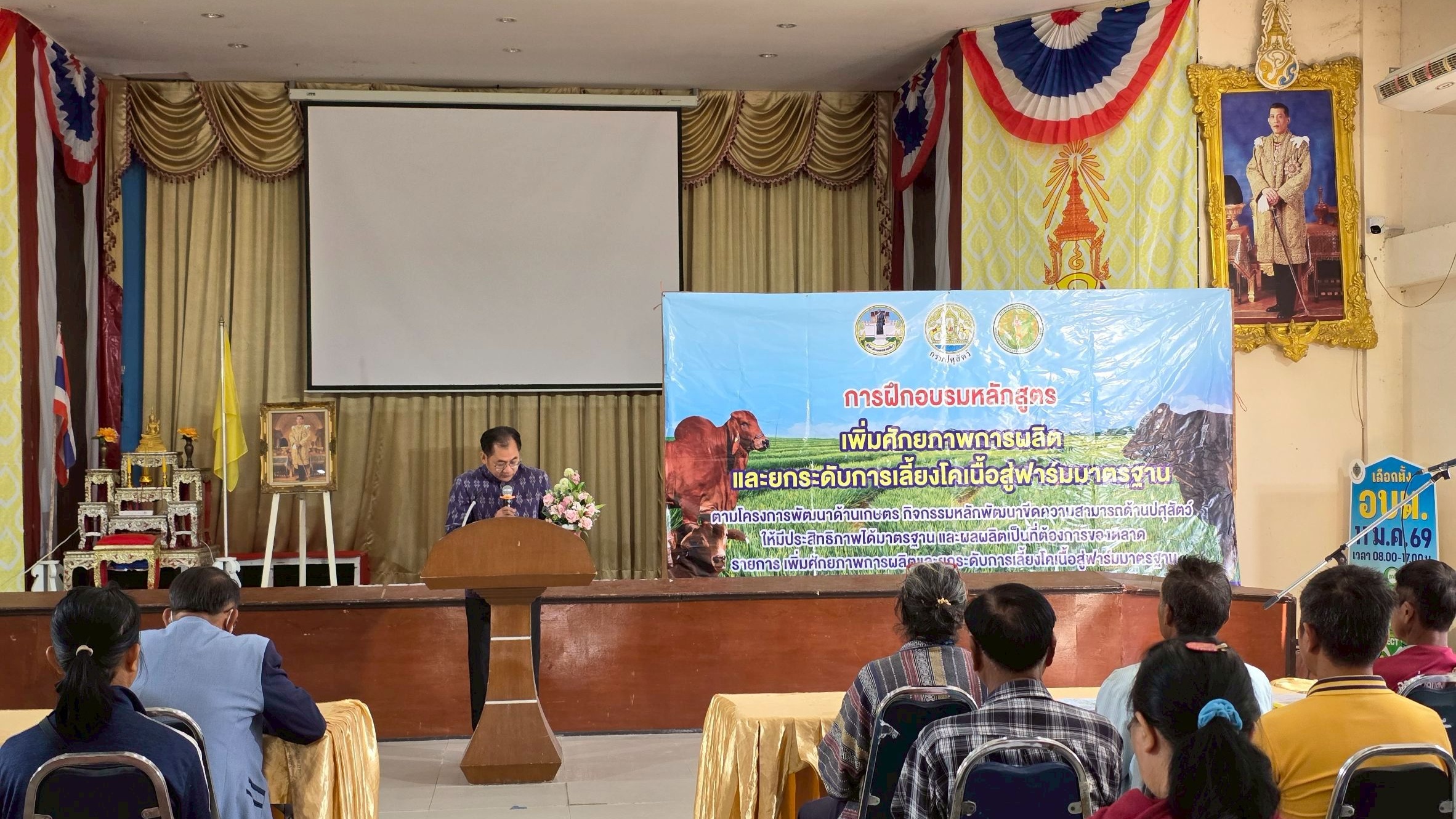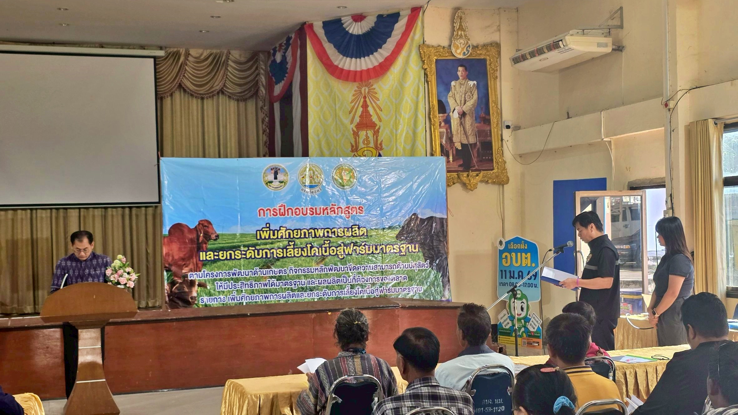 สำนักงานปศุสัตวจังหวัดนครราชสีมา จัดฝึกอบรมหลักสูตร “เพิ่มศักยภาพการผลิตและยกระดับการเลี้ยงโคเนื้อสู่ฟาร์มมาตรฐาน”ให้กับเกษตรกรในพื้นที่อำเภอโนนไทย และอำเภอขามทะเลสอ จำนวน 50 ราย เพื่อยกระดับการเลี้ยงโคเนื้อให้มีมาตรฐาน สร้างการรับรู้ทิศทางของตลาดโคเนื้อและพัฒนาสายพันธุ์โคเนื้อให้ตรงตามความต้องการของตลาด ส่งเสริมการรวมกลุ่มและสร้างเครือข่ายเกษตรกร โดยมีนายนิติพัฒน์ ขอดทอง นายอำเภอโนนไทย เป็นประธานในพิธิเปิดการฝึกอบรม และนายพศวีร์ สมใจ ปศุสัตว์จังหวัดนครราชสีมา ได้กล่าวพบปะพี่น้องเกษตรกร ณ หอประชุมอำเภอโนนไทย จ.นครราชสีมา #งบจังหวัด69