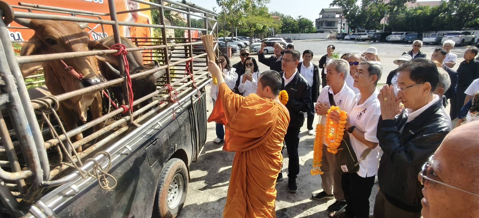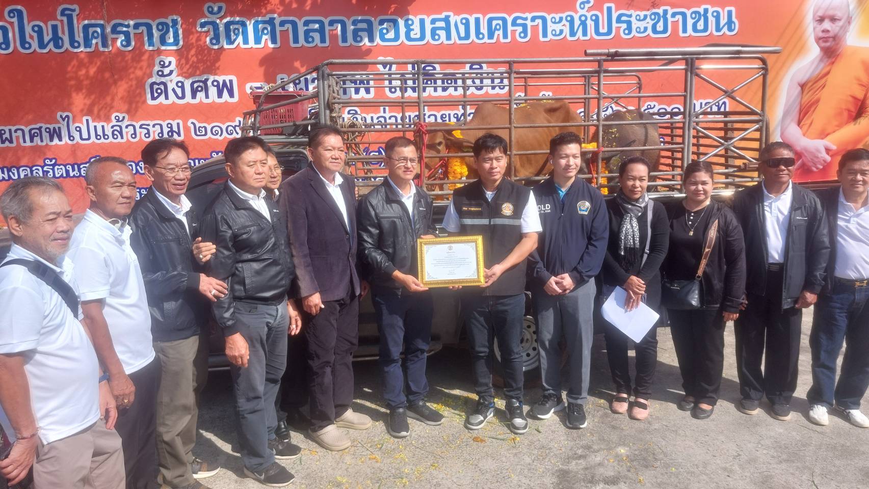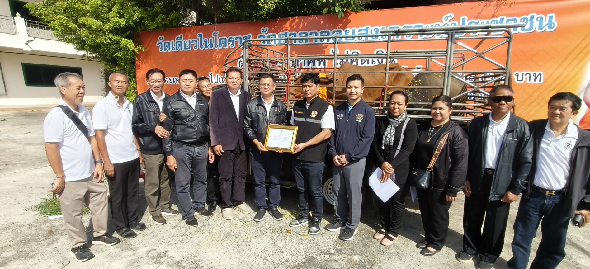 27 พ.ย.68 นายพศวีร์ สมใจ ปศุสัตว์จังหวัดนครราชสีมา มอบหมายให้นายวินัย วงษ์ด่านเจริญ หัวหน้ากลุ่มยุทธศาสตร์และสารสนเทศการปศุสัตว์ และนายเค็น ไค นายสัตวแพทย์ชำนาญการ รักษาราชการแทนปศุสัตว์อำเภอเมืองนครราชสีมา พร้อมด้วยเจ้าหน้าที่ รับมอบโค-กระบือ 2 ตัว มูลค่า 36,000 บาท จากผู้มีจิตศรัทธา ดร.สมเกียรติ ประจำวงษ์ และคณะ สมทบเข้าโครงการธนาคารโค-กระบือ เพื่อเกษตรกร ตามพระราชดำริ ส่งมอบให้กับเกษตรกรกลุ่มวิสาหกิจธนาคารโค-กระบือ เกษตรไร้สารพิษบ้านบุตาล ต.ไชยมงคล ยืมเลี้ยงเพื่อการผลิต จำนวน 2 ราย ณ วัดศาลาลอย อ.เมืองนครราชสีมา