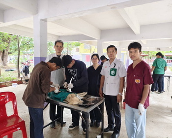 ด้านการเลี้ยงสัตว์ แจกเวชภัณฑ์ยาถ่ายพยาธิ ยาบำรุงแก่เกษตรกร รักษาสัตว์เลี้ยงเบื้องต้น ผ่าตัดทำหมัน สุนัข