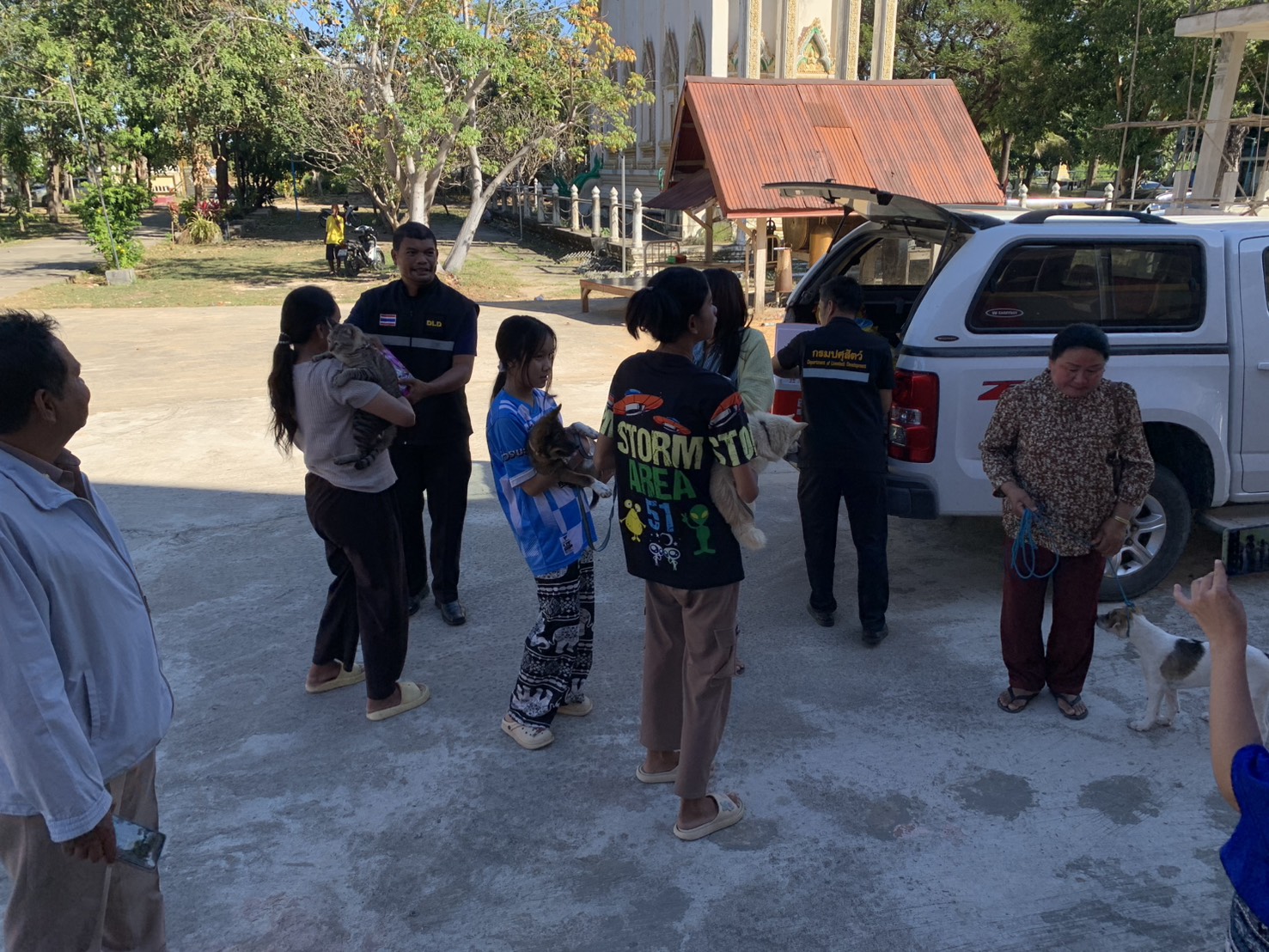 เมื่อวันที่ 15 ธันวาคม2568 นายฉัฐวัสส์ บุตรวงค์ เจ้าพนักงานสัตวบาลชำนาญงาน รักษาราชการแทน ปศุสัตว์อำเภอกันทรารมย์ พร้อมเจ้าหน้าที่สำนักงานปศุสัตว์อำเภอกันทรารมย์ได้ออกตรวจเยี่ยมมอบสิ่งของ ณ จุดอพยพ จากภัยพิบัติสงครามตามแนวชายแดน และ ได้สำรวจความต้องการเบื้องต้น พร้อมทั้งออกหน่วยให้บริการสัตวแพทย์เคลื่อนที่ให้กับสัตว์เลี้ยงที่มากับเจ้าของในศูนย์อพยพ 3 ศูนย์ในพื้นที่อำเภอกันทรารมย์ประกอบด้วย ศูนย์วัดบ้านอีต้อม วัดโพธิ์ลังกาและวัดบ้านหนองทามใหญ่ ดำเนินการมอบอาหารสัตว์ ฉีดวัคซีนป้องกันโรคพิษสุนัขบ้า ถ่ายพยาธิภายในภายนอก จำนวนสุนัขและแมวรวมทั้งหมด 17ตัว
