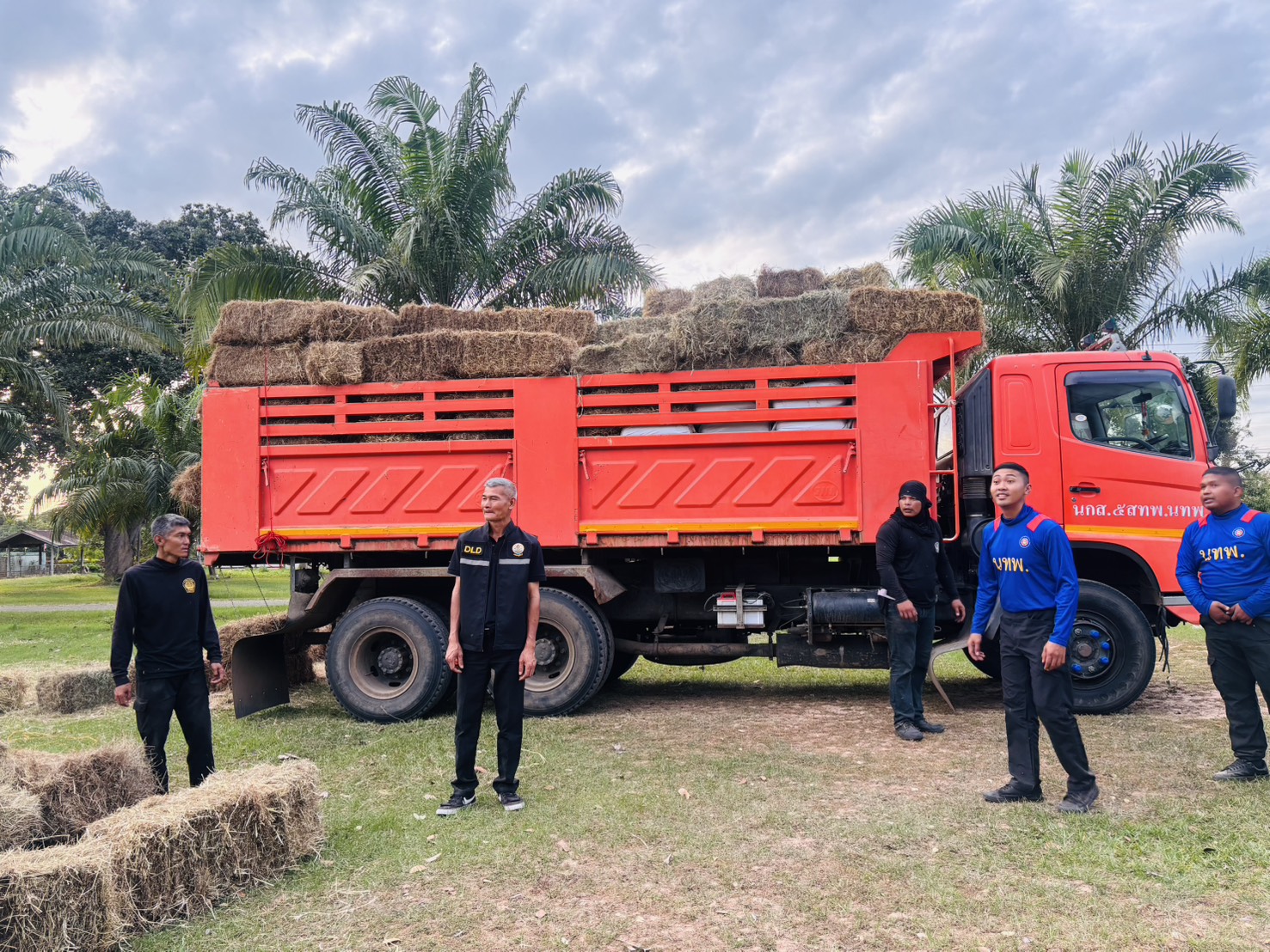 วันที่ 12 ธันวาคม 2568 น.สพ.อภิชัย นาคีสังข์ ปศุสัตว์จังหวัดสุรินทร์ มอบหมายให้ส่งเสริมและพัฒนาการปศุสัตว์ พร้อมด้วยเจ้าหน้าที่สำนักงานปศุสัตว์จังหวัดสุรินทร์ บูรณาการร่วมกับ หน่วยงาน DLD - C ในพื้นที่จังหวัดสุรินทร์ โดยนายศรชัย คงสุข ผู้เชี่ยวชาญด้านพัฒนาพันธุ์กระบือ รักษาราชการในตำแหน่ง ผู้อำนวยการศูนย์วิจัยและพัฒนากระบือ และเจ้าหน้าที่ศูนย์วิจัยและพัฒนากระบือ น.สพ.ธนวิทย์ มะลิซ้อน นายสัตวแพทย์ชำนาญการ รักษาการในตำแหน่ง หัวหน้าด่านกักกันสัตว์สุรินทร์ เจ้าหน้าที่ด่านกักกันสัตว์สุรินทร์ และเจ้าหน้าที่ด่านกักกันสัตว์อุดรธานี ส่งมอบหญ้าแห้งอัดฟ่อน ให้กับคณะทางหน่วยส่งเสริมการเกษตรและสหกรณ์ที่่ 5 สำนักงานทหารพัฒนาฯ หน่วยบัญชาการทหารพัฒนา (นกส.5 สทพ.นทพ.) โดยมีพันโทอภัย ก้อนคำใหญ่ ผู้บังคับหน่วยส่งเสริมการเกษตรและสหกรณ์ที่ 5 พร้อมด้วย พ.ต.วิรุฬ วงเวียน และคณะฯ ซึ่งมีรายละเอียดดังนี้