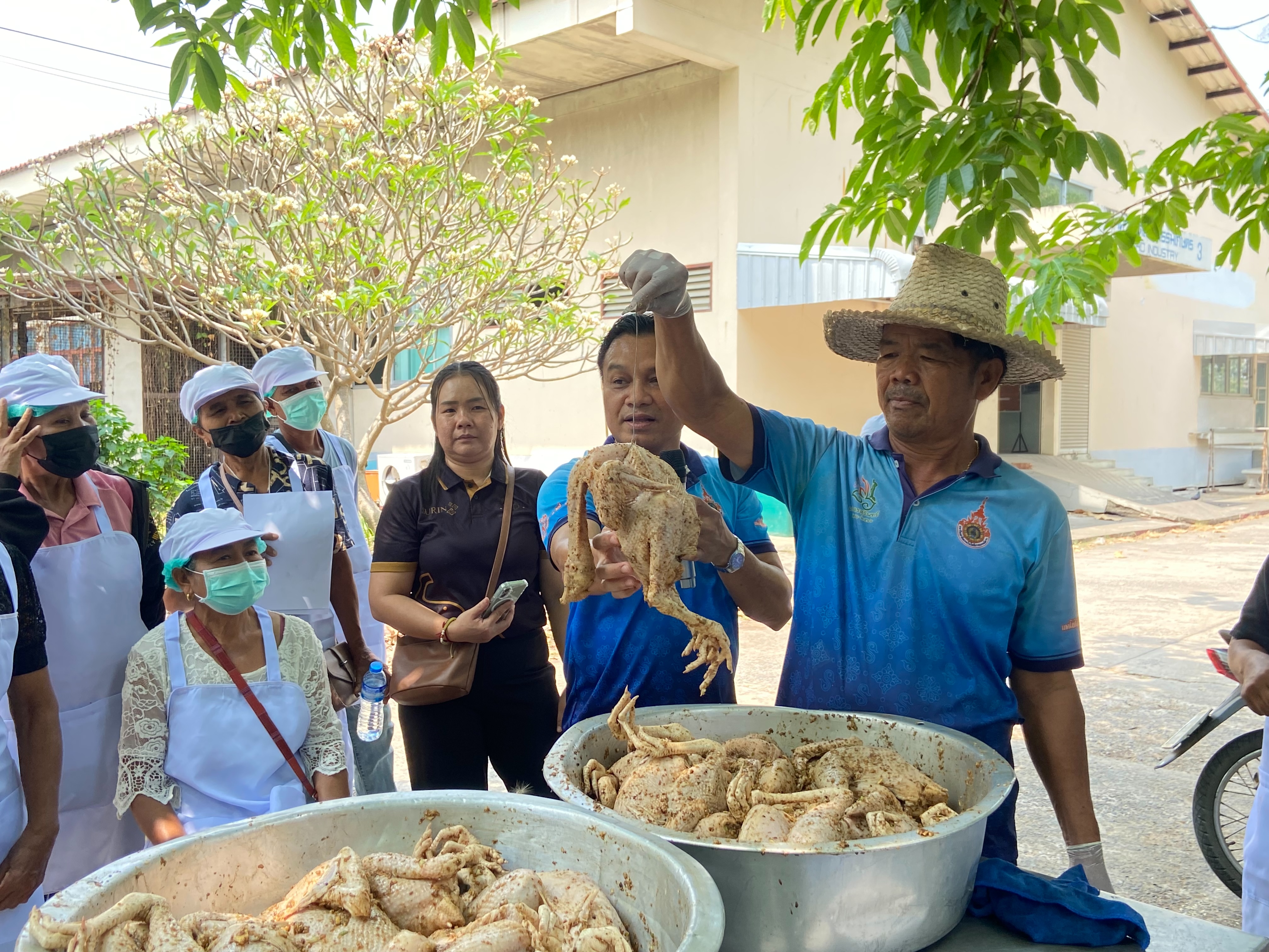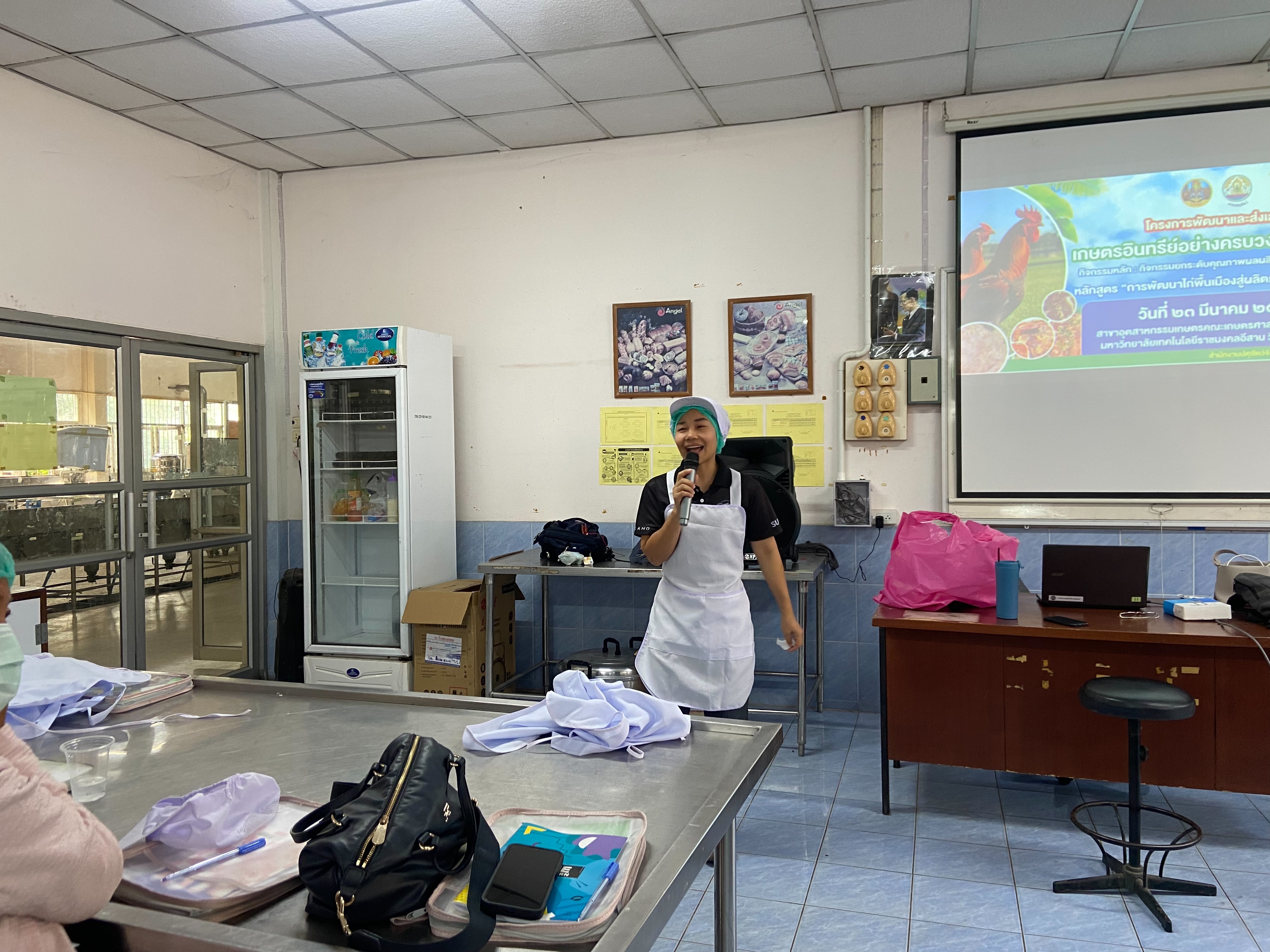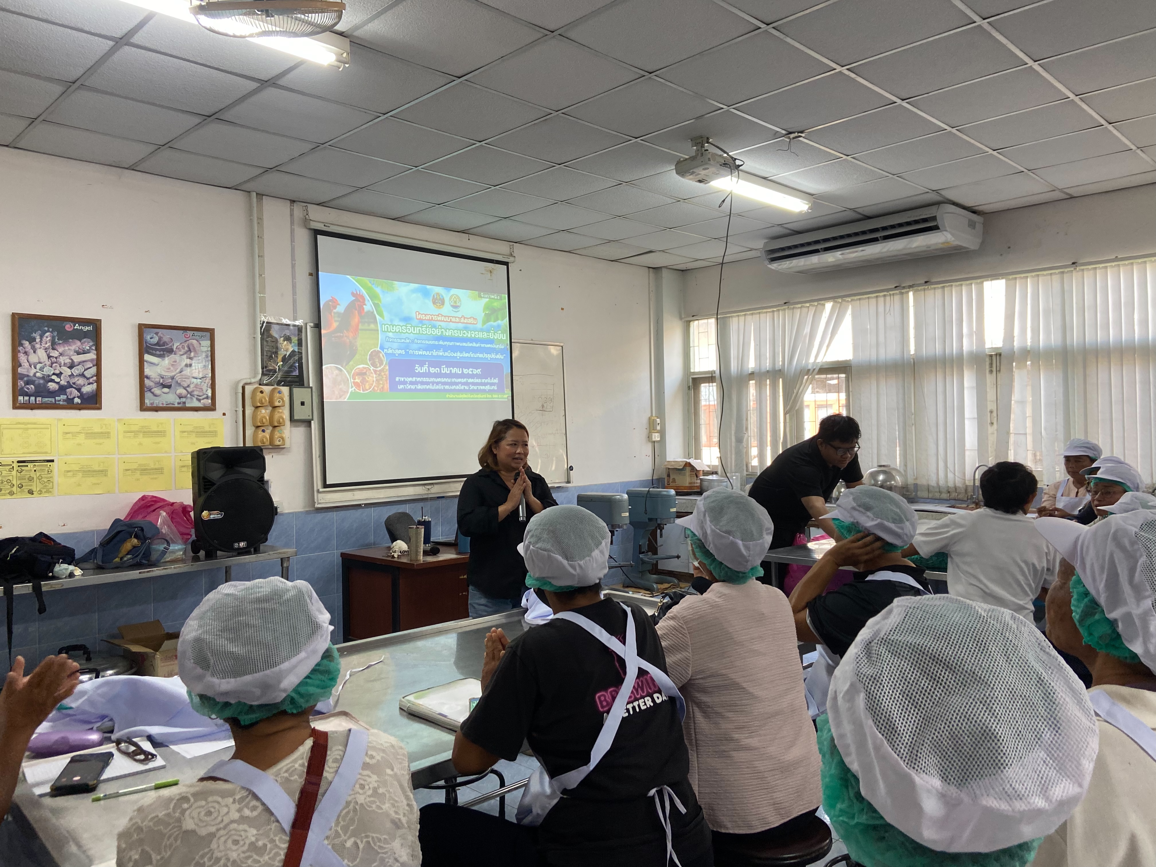 วันที่ 23 มี.ค 2569 น.สพ.อภิชัย นาคีสังข์ ปศุสัตว์จังหวัดสุรินทร์ มอบหมายให้ นายศรัณวัชร์ บุญเกิด หัวหน้ากลุ่มยุทธศาสตร์และสารสนเทศการปศุสัตว์ พร้อมด้วยเจ้าหน้าที่กลุ่มยุทธศาสตร์และสารสนเทศการปศุสัตว์ สำนักงานปศุสัตว์จังหวัดสุรินทร์ ร่วมจัดโครงการตามแผนปฏิบัติราชการประจำปีของจังหวัด ประจำปีงบประมาณ พ.ศ. 2569 โครงการพัฒนางานพื้นที่โครงการพัฒนาและส่งเสริมเกษตรอินทรีย์อย่างครบวงจรอย่างยั่งยืน กิจกรรมหลัก : กิจกรรมยกระดับคุณภาพผลผลิตสินค้าเกษตรอินทรีย์ กิจกรรมย่อย : ส่งเสริมการเลี้ยงไก่พื้นเมืองอินทรีย์ PGS Surin อย่างครบวงจร ภาคปฏิบัติ รุ่นที่ 6 เป้าหมายผู้เข้าร่วมอบรมจำนวน 60 ราย ได้แก่ เกษตรกรอำเภอเขวาสินรินทร์และอำเภอปราสาท ณ ห้องปฏิบัติการ สาขาอุตสาหกรรมเกษตร คณะเกษตรศาสตร์และเทคโนโลยี มหาวิทยาลัยเทคโนโลยีราชมงคลอีสาน วิทยาเขตสุรินทร์ โดยโครงการดังกล่าวได้มีกิจกรรมให้ผู้เข้าร่วมได้ปฏิบัติการแปรรูปอาหารจากไก่พื้นเมืองทั้งสิ้น 2 เมนู ได้แก่ แหนมไก่และไก่อบสมุนไพร ในการนี้ ได้รับเกียรติจาก อาจารย์ ดร.นุจรี สอนสะอาด อาจารย์ประจำสาขาอุตสาหกรรมเกษตร คณะเกษตรศาสตร์และเทคโนโลยี มหาวิทยาลัยราชมงคลอีสาน วิทยาเขตสุรินทร์