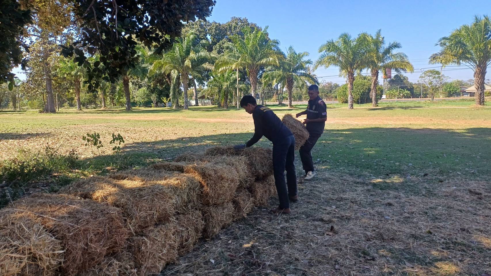 วันอังคารที่่ 23 ธันวาคม 2568 น.สพ.อภิชัย นาคีสังข์ ปศุสัตว์จังหวัดสุรินทร์ มอบหมายให้เจ้าหน้าที่กลุ่มส่งเสริมและพัฒนาการปศุสัตว์ หน่วยงาน DLD - C ในพื้นที่จังหวัดสุรินทร์ โดยนายศรชัย คงสุข ผู้เชี่ยวชาญด้านพัฒนาพันธุ์กระบือ รักษาราชการในตำแหน่ง ผู้อำนวยการศูนย์วิจัยและพัฒนากระบือ และเจ้าหน้าที่ศูนย์วิจัยและพัฒนากระบือ น.สพ.ธนวิทย์ มะลิซ้อน นายสัตวแพทย์ชำนาญการ รักษาการในตำแหน่ง หัวหน้าด่านกักกันสัตว์สุรินทร์ เจ้าหน้าที่ด่านกักกันสัตว์สุรินทร์ รับมอบหญ้าอาหารสัตว์พระราชทาน ช่วยเหลือผู้ประสบภัยด้านปศุสัตว์ จากผลกระทบการสู้รบชายแดนไทย–กัมพูชา ตามนโยบายนายสัตวแพทย์สมชวน รัตนมังคลานนท์ อธิบดีกรมปศุสัตว์ โดยสำนักพัฒนาอาหารสัตว์ ซึ่งนายวิชัย อาระหัง ผู้อำนวยการศูนย์วิจัยและพัฒนาอาหารสัตว์ร้อยเอ็ด ส่งมอบหญ้าฯจำนวน 4,000 กิโลกรัม เพื่อส่งต่อให้กับผู้ประสบภัยด้านปศุสัตว์ จากผลกระทบการสู้รบชายแดนไทย–กัมพูชา ในพื้นที่จังหวัดสุรินทร์ ตามแผนเผชิญเหตุอุบัติภัยด้านปศุสัตว์ ที่กรมปศุสัตว์กำหนดไว้ เพื่อบรรเทาผลกระทบต่อเกษตรกรและผู้เลี้ยงสัตว์ให้ได้มากที่สุด