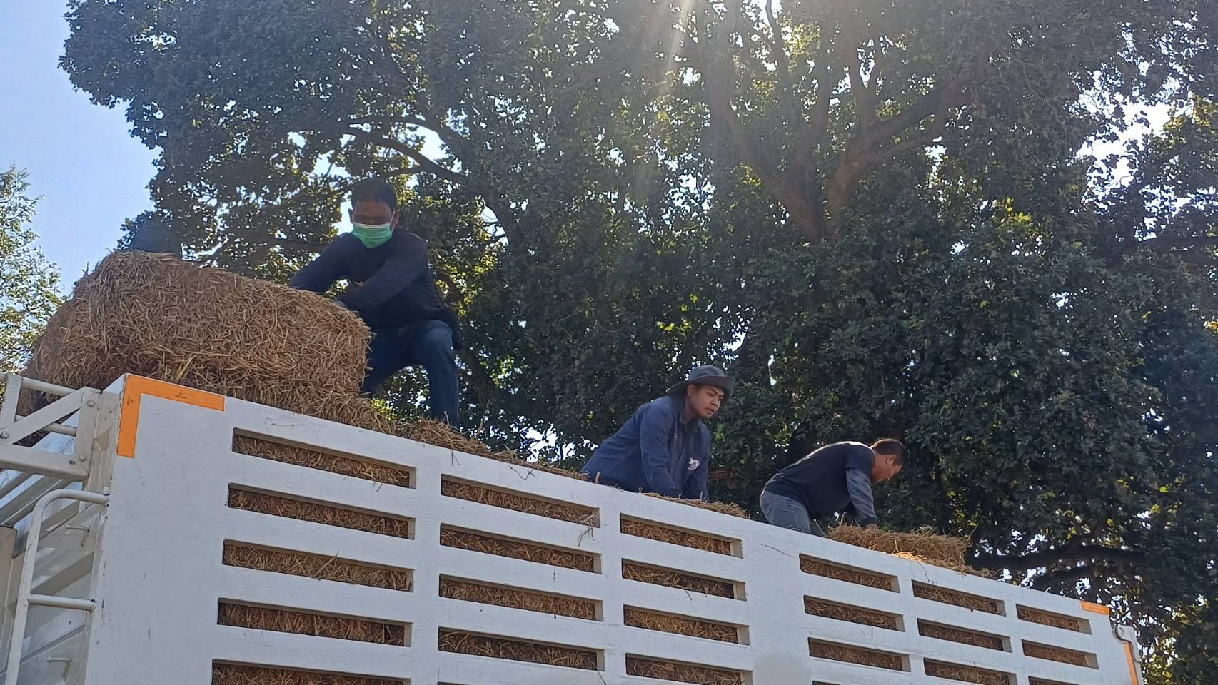 วันพุธที่ 24 ธันวาคม 2568 น.สพ.อภิชัย นาคีสังข์ ปศุสัตว์จังหวัดสุรินทร์ เจ้าหน้าที่กลุ่มส่งเสริมและพัฒนาการปศุสัตว์ หน่วยงาน DLD - C ในพื้นที่จังหวัดสุรินทร์ โดยนายศรชัย คงสุข ผู้เชี่ยวชาญด้านพัฒนาพันธุ์กระบือ รักษาราชการในตำแหน่ง ผู้อำนวยการศูนย์วิจัยและพัฒนากระบือ และเจ้าหน้าที่ศูนย์วิจัยและพัฒนากระบือ น.สพ.ธนวิทย์ มะลิซ้อน นายสัตวแพทย์ชำนาญการ รักษาการในตำแหน่ง หัวหน้าด่านกักกันสัตว์สุรินทร์ เจ้าหน้าที่ด่านกักกันสัตว์สุรินทร์ รับมอบหญ้าอาหารสัตว์พระราชทาน ช่วยเหลือผู้ประสบภัยด้านปศุสัตว์ จากผลกระทบการสู้รบชายแดนไทย–กัมพูชา ตามนโยบายนายสัตวแพทย์สมชวน รัตนมังคลานนท์ อธิบดีกรมปศุสัตว์ โดยสำนักพัฒนาอาหารสัตว์ ซึ่งนายวิชัย อาระหัง ผู้อำนวยการศูนย์วิจัยและพัฒนาอาหารสัตว์ร้อยเอ็ด ส่งมอบหญ้าฯจำนวน 4,000 กิโลกรัม
