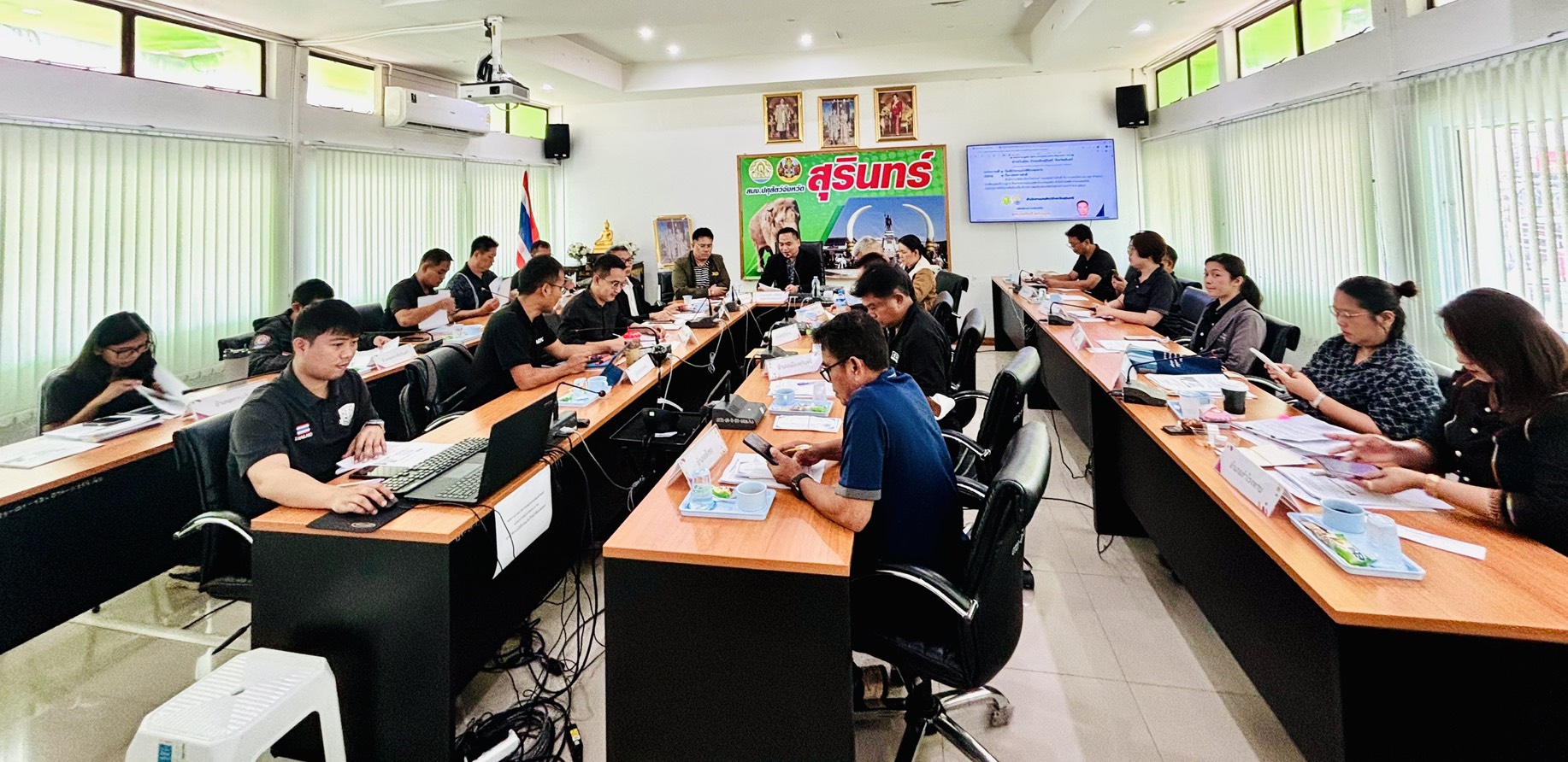 วันพฤหัสบดีที่ ๕ มีนาคม ๒๕๖๙ เวลา ๐๙.๐๐ น. นายสัตวแพทย์อภิชัย นาคีสังข์ ปศุสัตว์จังหวัดสุรินทร์ จัดประชุมประจำเดือนกุมภาพันธ์ ๒๕๖๙ ครั้งที่ ๒/๒๕๖๙ เพื่อสรุปสถานการณ์กรณีภัยอันเนื่องมาจากการกระทำของกองกำลังจากนอกประเทศและสรุปรายงานความเสียหายและการให้ความช่วยเหลือผู้ประสบภัยพิบัติกรณีฉุกเฉิน ด้านวัสดุการเกษตรและวัสดุเวชภัณฑ์ กรณีภัยอันเนื่องมาจากการกระทำของกองกำลังจากนอกประเทศ ด้านปศุสัตว์ และติดตามผลการดำเนินงานตามตัวชี้วัดกรมปศุสัตว์ ทั้งนี้ ยินดีกับข้าราชการในสังกัดที่ได้รับการคัดเลือกเป็น ข้าราชการพลเรือนดีเด่นจังหวัดสุรินทร์ ประจำปี พ.ศ. ๒๕๖๙ จำนวน ๑ ราย คือ นายสัตวแพทย์สมทัศน์ อย่างสุข ตำแหน่ง นายสัตวแพทย์ชำนาญการ รักษาราชการแทนปศุสัตว์อำเภอจอมพระ จังหวัดสุรินทร์ และยินดีกับข้าราชการที่ย้าย จำนวน ๓ ราย ได้แก่ ๑. นายเกรียงไกร คำทาสี ตำแหน่ง เจ้าพนักงานสัตวบาลปฏิบัติงาน สำนักงานปศุสัตว์อำเภอรัตนบุรี จังหวัดสุรินทร์ ๒. นางสุดาวรรณ ชัยรัฐนิธิยศ ตำแหน่ง นายสัตวแพทย์ปฏิบัติการ สำนักงานปศุสัตว์อำเภอลำดวน จังหวัดสุรินทร์ และ ๓. นางสาวจิราภรณ์ รู้ชอบ นายสัตวแพทย์ปฏิบัติการ สำนักงานปศุสัตว์อำเภอท่าตูม จังหวัดสุรินทร์ พร้อมต้อนรับข้าราชการบรรจุใหม่ จำนวน ๓ ราย ได้แก่ ๑. นายปฏิภาณ ไชยปัญญา ตำแหน่ง นายสัตวแพทย์ปฏิบัติการ สำนักงานปศุสัตว์อำเภอศีขรภูมิ จังหวัดสุรินทร์ ๒. นายเกียรติพชร์ จันทร์ชุ่ม ตำแหน่ง นายสัตวแพทย์ปฏิบัติการ สำนักงานปศุสัตว์อำเภอโนนนารายณ์ จังหวัดสุรินทร์ และ ๓. นางสาวพรทินา จะรา ตำแหน่ง นายสัตวแพทย์ปฏิบัติการ สำนักงานปศุสัตว์อำเภอสำโรงทาบ จังหวัดสุรินทร์ ณ ห้องประชุมสำนักงานปศุสัตว์จังหวัดสุรินทร์ ชั้น ๒ ตำบลในเมือง อำเภอเมืองสุรินทร์ จังหวัดสุรินทร์