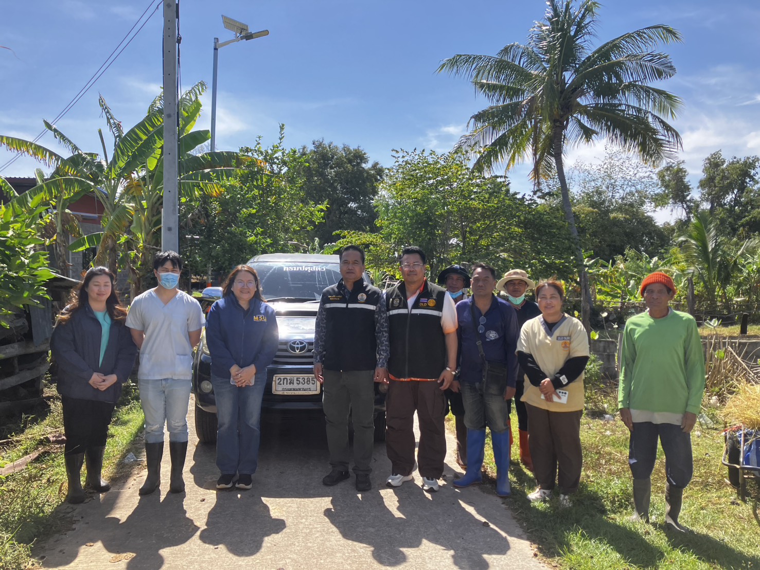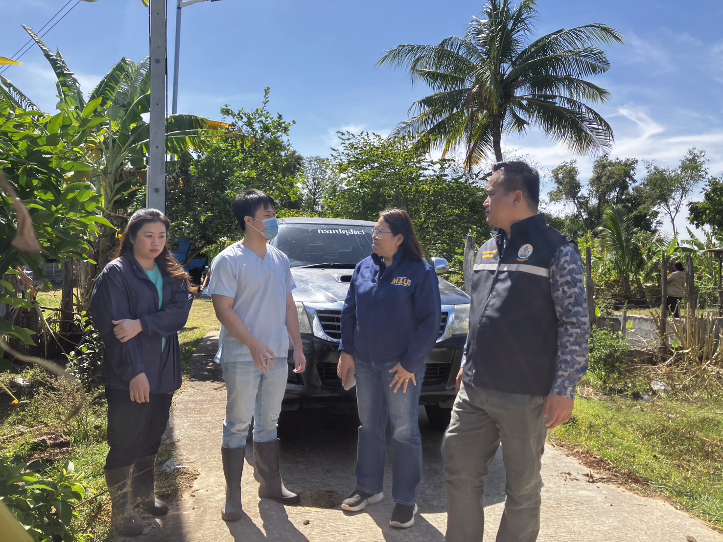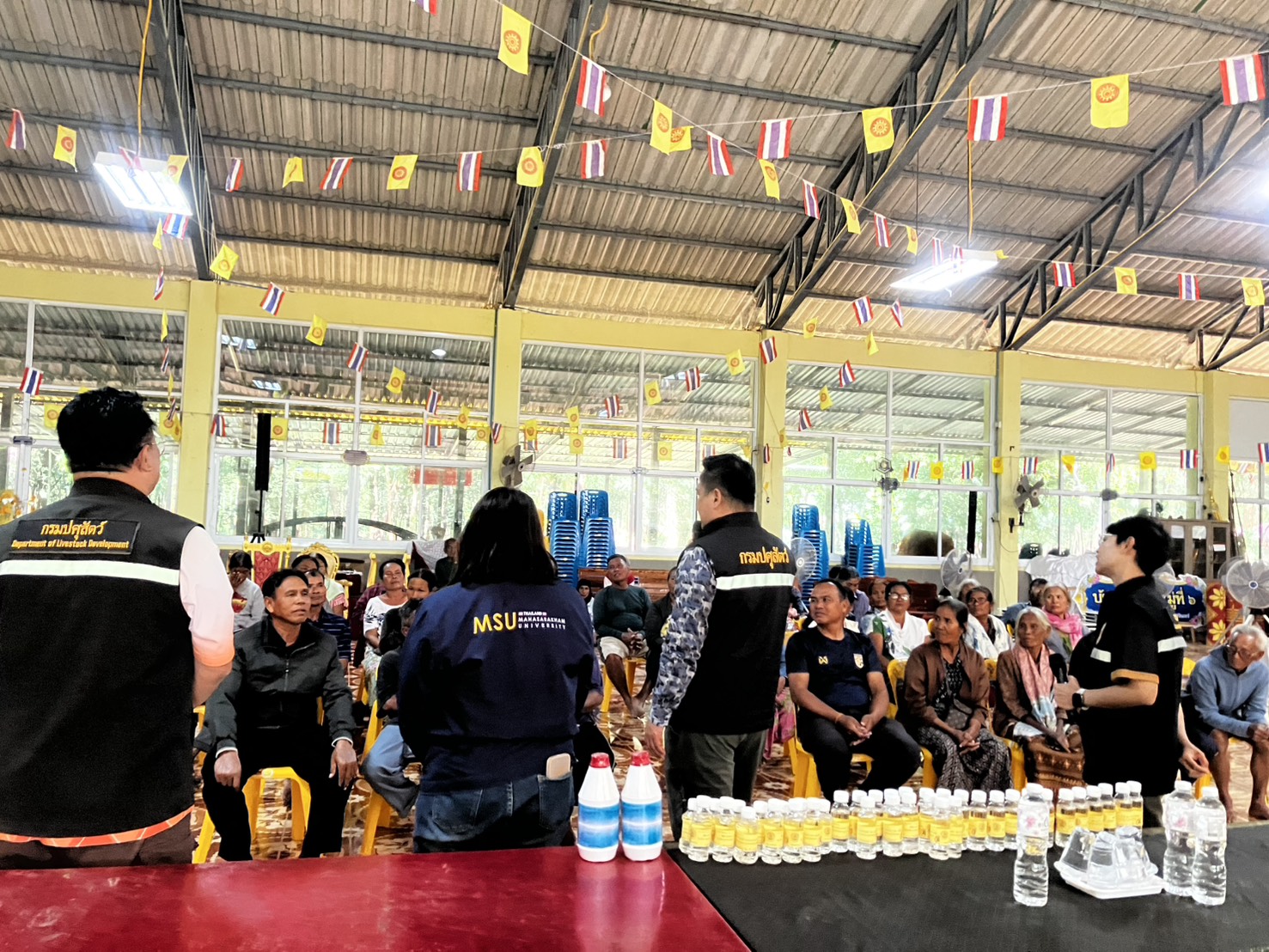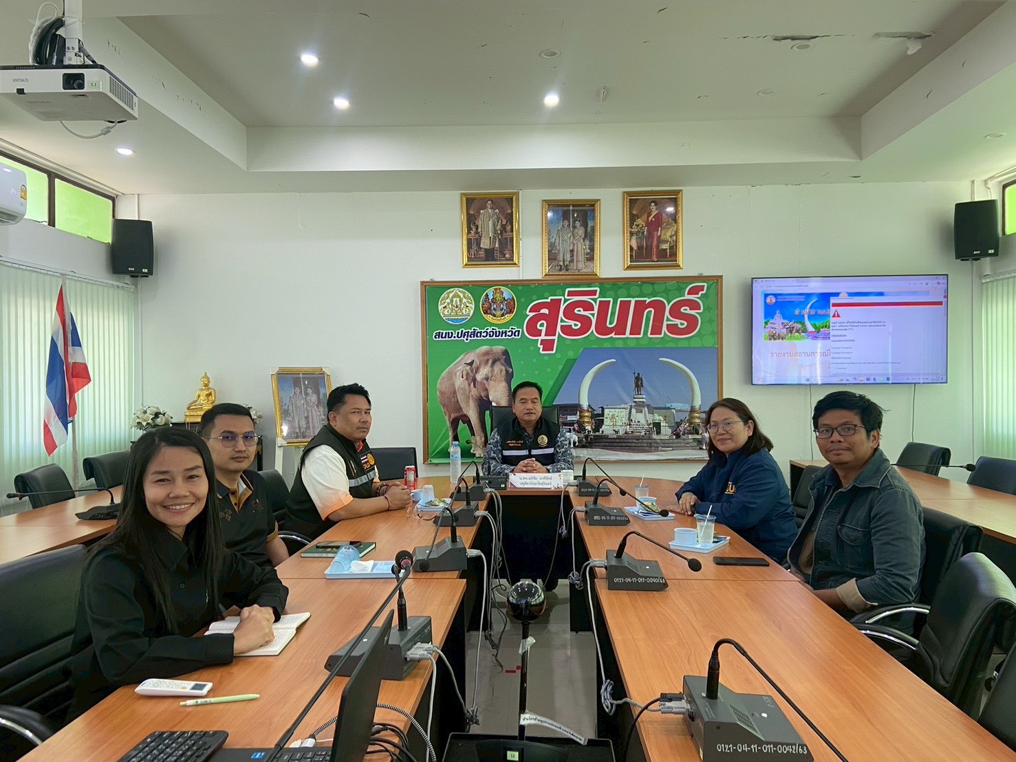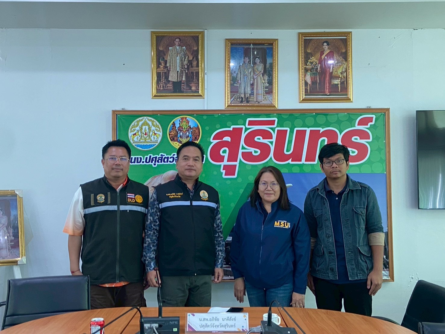 วันที่ 28 พฤศจิกายน 2568 เวลา 09.30 น. นายสัตวแพทย์อภิชัย นาคีสังข์ ปศุสัตว์จังหวัดสุรินทร์ พร้อมด้วย นายสัตวแพทย์จรูญวิทย์ นะพรรัมย์ หัวหน้ากลุ่มพัฒนาสุขภาพสัตว์ นายสัตวแพทย์ธีระ กงแก้ว หัวหน้าฝ่ายบริหารทั่วไป และนางสาวกนกอร พันทอง นักวิชาการสัตวบาล ประชุมหารือร่วมกับ ผศ.สพ.ญ.ดร. สุกัญญา ลีทองดี คณบดีคณะสัตวแพทยศาสตร์ และอาจารย์ น.สพ.ปฏิญญา ปะทิเก อาจารย์ประจำคณะสัตวแพทยศาสตร์ มหาวิทยาลัยมหาสารคาม เพื่อร่วมบรรเทาสถานการณ์และลดผลกระทบจากการระบาดของโรคในสัตว์เลี้ยงพื้นที่จังหวัดสุรินทร์ ลงพื้นที่ปฏิบัติงานร่วมกันกับทีมรักษาของอำเภอ ณ ต.หนองเหล็ก อ.ศีขรภูมิ เร่งรัดตรวจสอบอาการ การป้องกันและรักษาสัตว์ป่วย รวมไปถึงสร้างความเข้าใจและให้ความรู้ด้านปศุสัตว์กับเกษตรกรร่วมกับทีมให้ความรู้ของอำเภอ ณ บ้านตามอ หมู่ 6 ต.ตรมไพร อ.ศีขรภูมิ ทั้งนี้ได้รับความอนุเคราะห์ในการช่วยเหลือจากทางคณะสัตวแพทยศาสตร์ มหาวิทยาลัยมหาสารคาม อย่างมาก