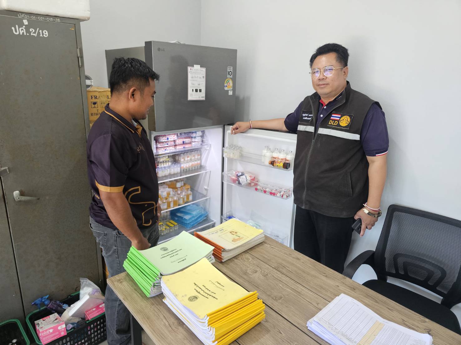 วันที่ 6 มกราคม 2569 น.สพ.อภิชัย นาคีสังข์ ปศุสัตว์จังหวัดสุรินทร์ มอบหมายให้ น.สพ.จรูญวิทย์ นะพรรัมย์ หัวหน้ากลุ่มพัฒนาสุขภาพสัตว์ ลงพื้นที่ตรวจประเมินสถานการณ์และติดตามการดำเนินงานฉีดวัคซีนป้องกันโรคปากและเท้าเปื่อยในโคเนื้อ กระบือ แพะ และแกะ รอบรณรงค์ที่ 1/2569 ณ สำนักงานปศุสัตว์อำเภอในพื้นที่จังหวัดสุรินทร์ ตามแผนการตรวจติดตามฯ เพื่อประเมินสถานการณ์การระบาดของโรคตลอดจนการบริหารจัดการวัคซีนโดยการตรวจติดตามครอบคลุมการบริหารจัดการฉีดวัคซีน ระบบห่วงโซ่ความเย็น ความครอบคลุมและความถูกต้องในการฉีดวัคซีน การเฝ้าระวังการแพ้วัคซีน ตลอดจนการแผนและผลงานการฉีดวัคซีน และการบันทึกข้อมูลผ่านระบบที่กำหนด ทั้งนี้ ข้อมูลจากการตรวจติดตามจะนำไปใช้ในการวางแผนเสริมสร้างภูมิคุ้มกันโรคปากและเท้าเปื่อยให้มีประสิทธิภาพ และเพิ่มความครอบคลุมการฉีดวัคซีนในรอบถัดไป โดยวันนี้ลงพื้นที่สำนักงานปศุสัตว์อำเภอเขวาสินรินทร์ สำนักงานปศุสัตว์อำเภอจอมพระ สำนักงานปศุสัตว์อำเภอศีขรภูมิและสำนักงานปศุสัตว์อำเภอสำโรงทาบ สถานการณ์ของโรคปากและเท้าเปื่อยในโคกระบือยังไม่พบรายงานการป่วยตายในพื้นที่เพิ่มเติม การดำเนินการฉีดวัคซีนดำเนินการแล้วมากกว่าร้อยละ 80 คาดว่าแล้วเสร็จภายในเดือนนี้เนื่องจากเป็นพื้นที่การเกิดการระบาดของโรคในช่วงที่ผ่านมา