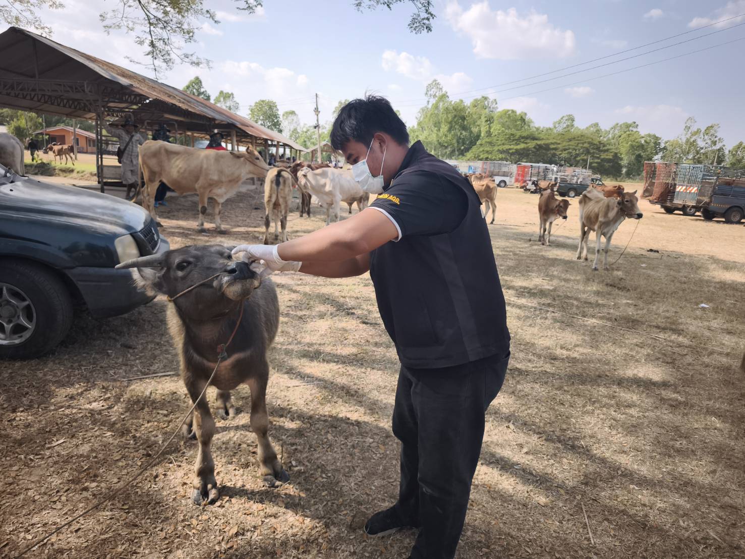วันที่ 21 มกราคม 2569 น.สพ.อภิชัย นาคีสังข์ ปศุสัตว์จังหวัดสุรินทร์ มอบหมายให้ น.สพ.จรูญวิทย์ นะพรรัมย์ หัวหน้ากลุ่มพัฒนาสุขภาพสัตว์ ลงพื้นที่ตลาดนัดค้าโค-กระบือเพื่อตรวจประเมินสถานการณ์โรคปากและเท้าเปื่อยในโคเนื้อ กระบือ ณ ตลาดนัดโค-กระบือ อำเภอศีขรภูมิและอำเภอสังขะซึ่งเปิดตลาดเป็นวันแรกหลังจากทางสำนักงานปศุสัตว์จังหวัดสุรินทร์ขอความอนุเคราะห์ให้ผู้ประกอบการตลาดนัดชะลอการรวมและเคลื่อนย้ายสัตว์ในช่วงสถานการณ์การระบาดของโรค ทั้งนี้ ข้อมูลจากการลงพื้นที่พบว่าโค-กระบือที่เข้ามาในตลาดนัดมีสุขภาพดีไม่พบวิการของโรคปากและเท้าเปื่อย และราคาโค-กระบือ ขยับขึ้นจากเดิมประมาณ 1,000 บาท และเกษตรกร ผู้ประกอบการนำโค-กระบือ มาซื้อขายแลกเปลี่ยนอาจารย์นัดประมาณ 500 ตัว คาดว่านัดหน้าจะมีมาเพิ่มอีกประมาณเท่าตัว