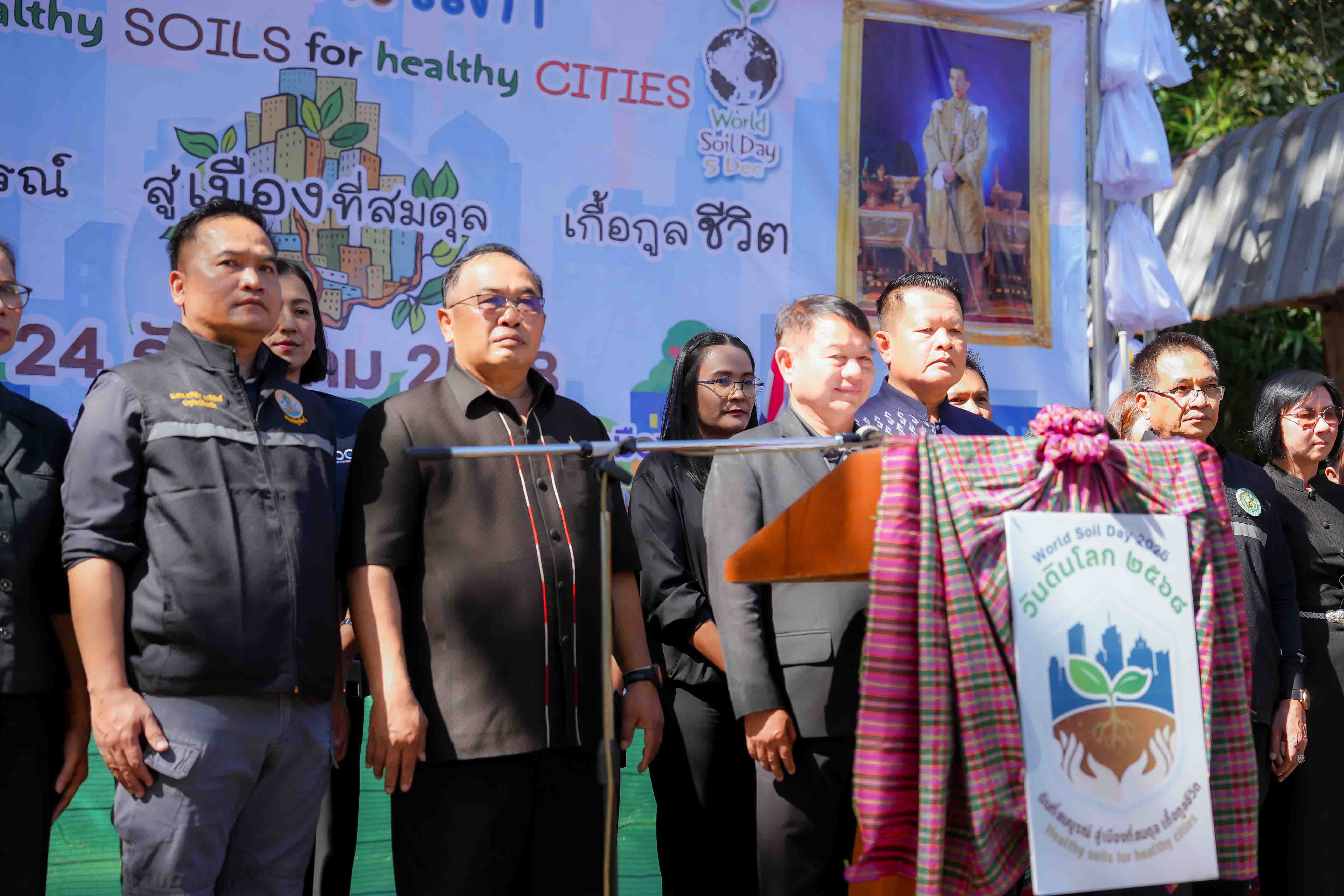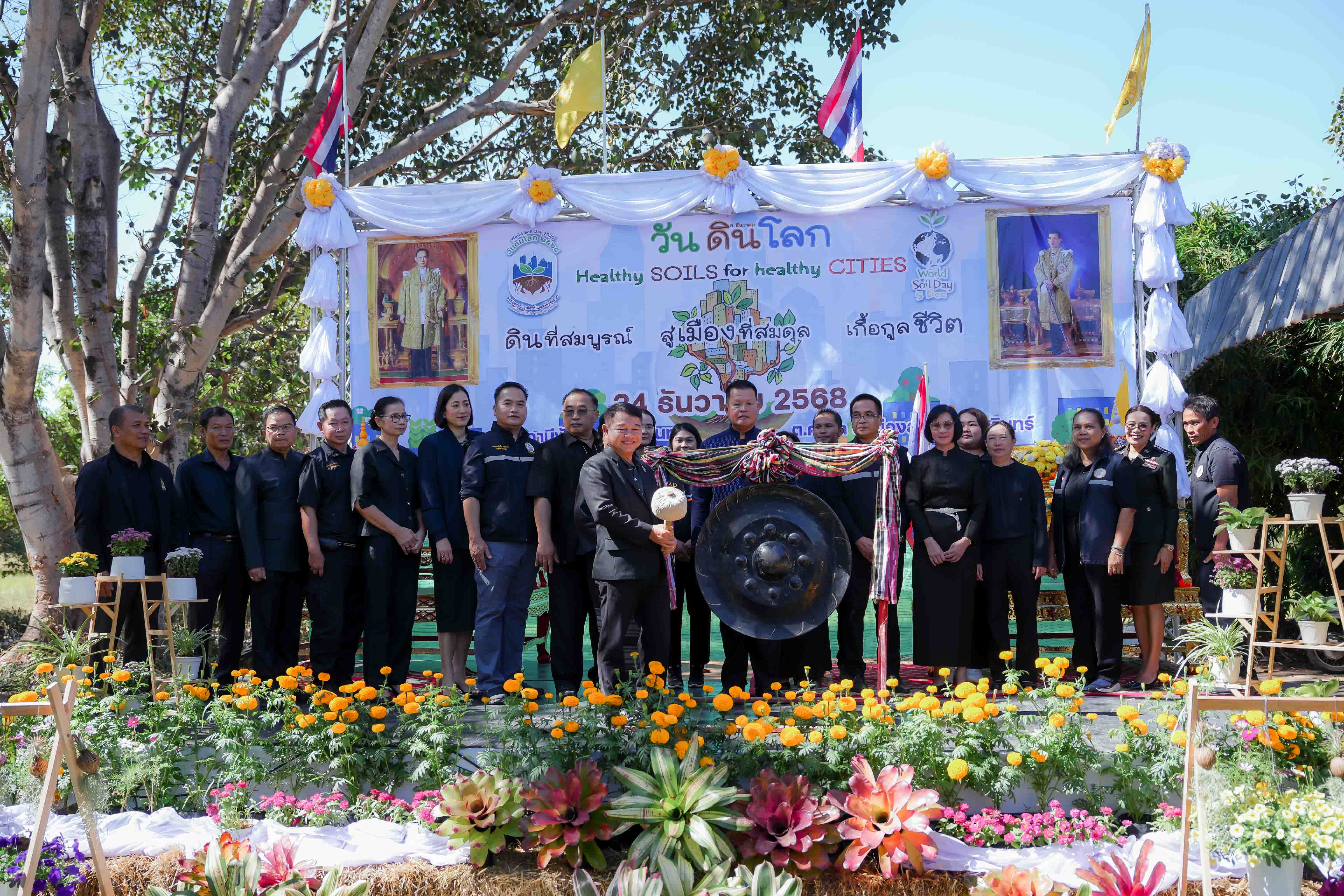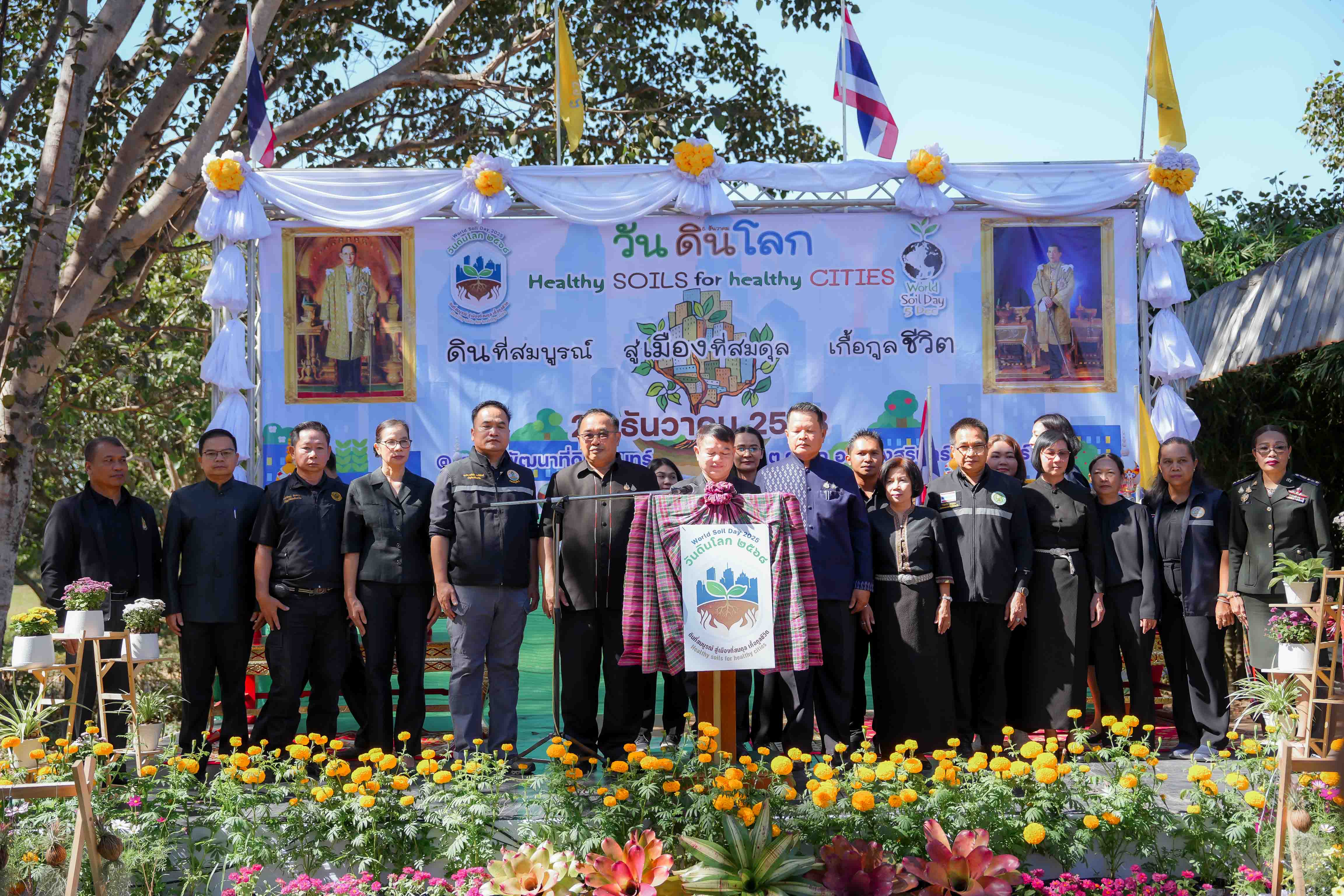 วันที่ 24 ธันวาคม 2568 นายสัตวแพทย์อภิชัย นาคีสังข์ ปศุสัตว์จังหวัดสุรินทร์ พร้อมด้วย นายสุพิน นองมัน หัวหน้ากลุ่มส่งเสริมและพัฒนาการปศุสัตว์ และเจ้าหน้าที่กลุ่มส่งเสริมและพัฒนาการปศุสัตว์ ร่วมกิจกรรม “วันดินโลก ปี 2568 (World Soil Day) ภายใต้หัวข้อ “Healty Soils for Healty Citie ดินดีที่สมบูรณ์ สู่เมืองที่สมดุล เกื้อกูลชีวิต” เพื่อเฉลิมพระเกียรติพระบาทสมเด็จพระบรมชนกาธิเบศร มหาภูมิพลอดุลยเดชมหาราช บรมนาถบพิตร เนื่องในวันดินโลก 5 ธันวาคม 2568 (World Soil Day) ณ สถานีพัฒนาที่ดินสุรินทร์ ตำบลคอโค อำเภอเมืองสุรินทร์ จังหวัดสุรินทร์ โดยสำนักงานปศุสัตว์จังหวัดสุรินทร์ ได้จัดนิทรรศการด้านองค์ความรู้หลักการเลี้ยงสัตว์เบื้องต้น รวมถึงการให้คำแนะนำองค์ความรู้หลักการป้องกันโรคเบื้องต้น มีกิจกรรมภายในงานประกอบด้วย การกิจกรรมที่จัดในอาคาร เช่น นิทรรศการเฉลิมพระเกียรติ นักวิทยาศาสตร์ดินเพื่อมนุษยธรรม แสดงหลักการของแนวพระราชดำรินิทรรศการทางวิชาการดิน เช่น ความเป็นมาของวันดินโลก ความสำคัญของดิน และกิจกรรมกลางแจ้ง ได้แก่ การจัดแสดงฐานเรียนรู้โดยจัดรูปแบบนิทรรศการมีชีวิต ประกอบด้วย ฐานเรียนรู้ปฐพีวิทยาและเทคโนโลยีนวัตกรรม ฐานเรียนรู้เกษตรอินทรีย์ ใส่ใจมาตรฐานและตรวจวัดจัดการ และฐานเรียนรู้ระบบอนุรักษ์ดินและน้ำ เพื่อส่งเสริมความเป็นอยู่และคุณภาพชีวิตของเกษตรกรโดยรวมให้ดีขึ้น เป็นต้น
