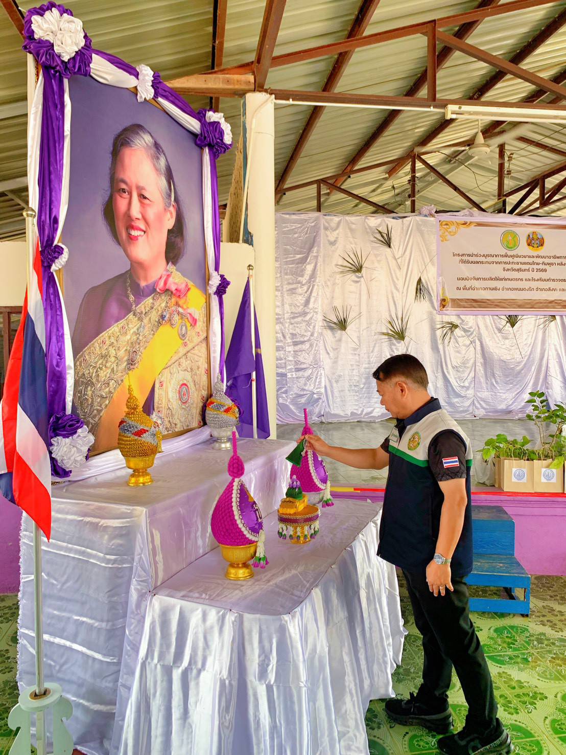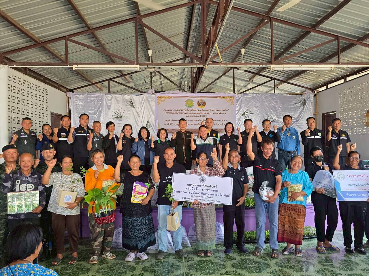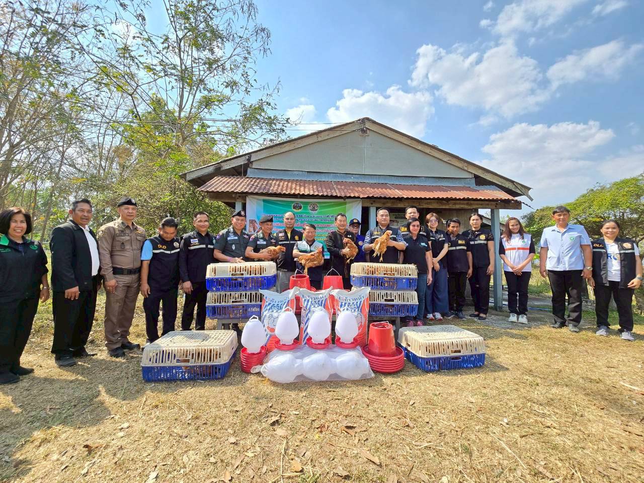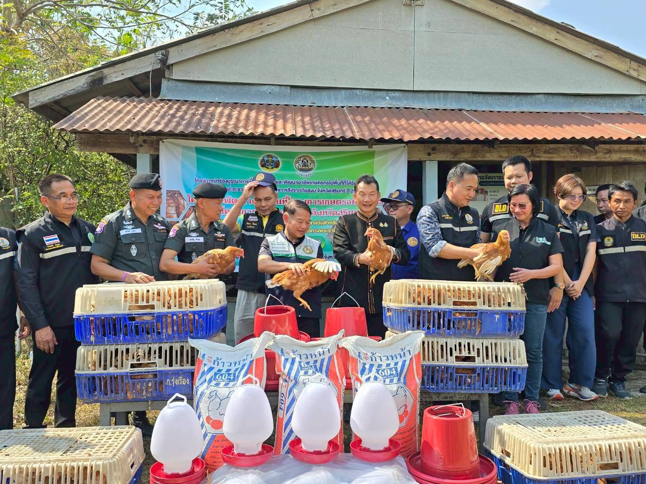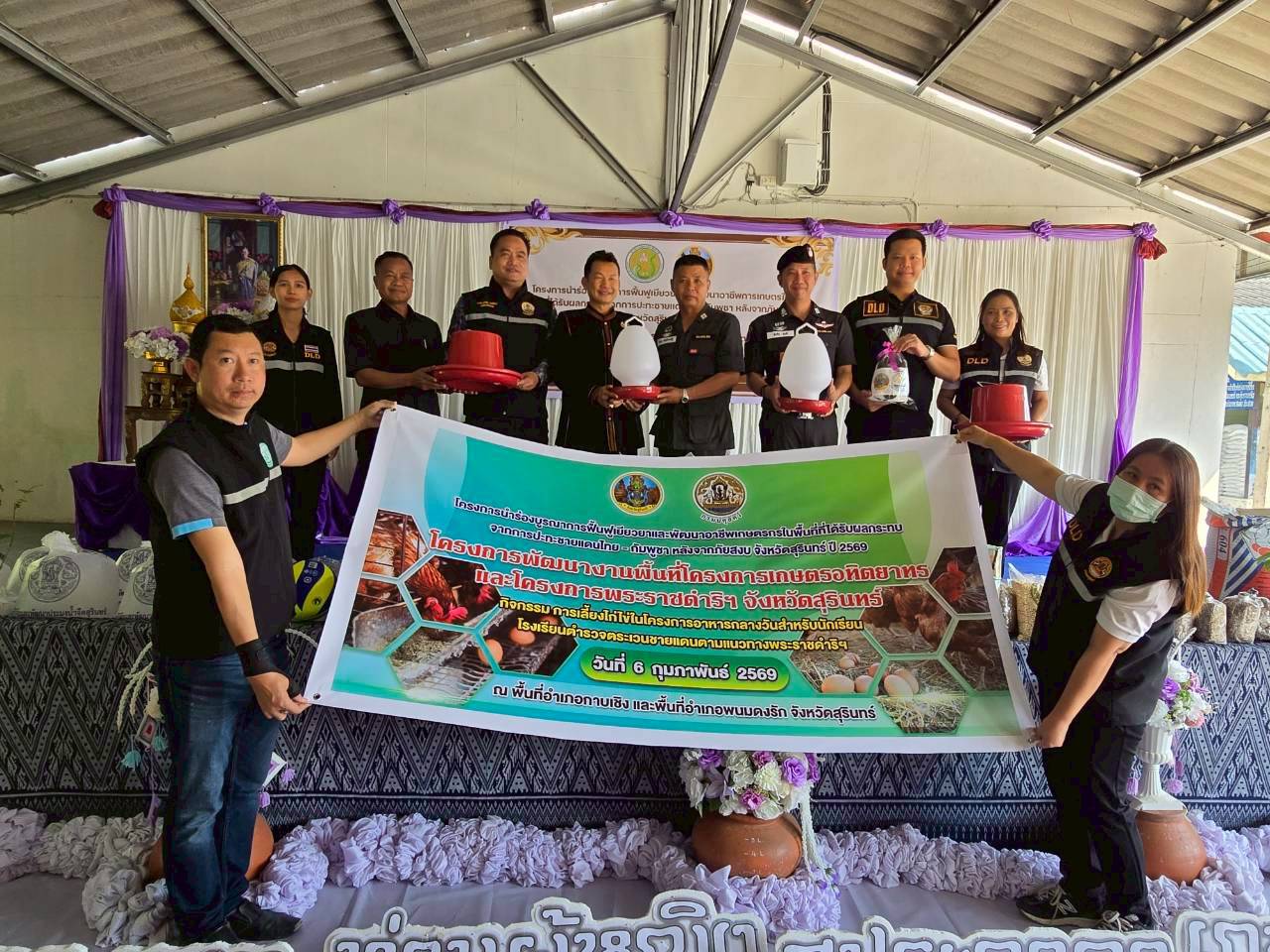 ภายใต้โครงการ ได้รับการสนับสนุนปัจจัยการผลิตจากหน่วยงานต่าง ๆ โดยปศุสัตว์จังหวัดสุรินทร์ได้มอบพันธุ์ไก่ไข' จำนวน 100 ตัวพร้อมอุปกรณ์ให้น้ำให้อาหารและอาหารไก่ไข่ จำนวน 3 กระสอบ โดยมอบให้กับโรงเรียนตำรวจตระเวนชายแดนโคกแสลง อำเภอพนมดงรัก และโรงเรียนตำรวจตระเวนชายแดนท่านผู้หญิงสุประภาดา เกษมสันต์ อำเภอกาบเชิง ทั้งนี้ยังมอบปัจจัยการผลิตให้กับเกษตรกรจำนวน 68 ชุด