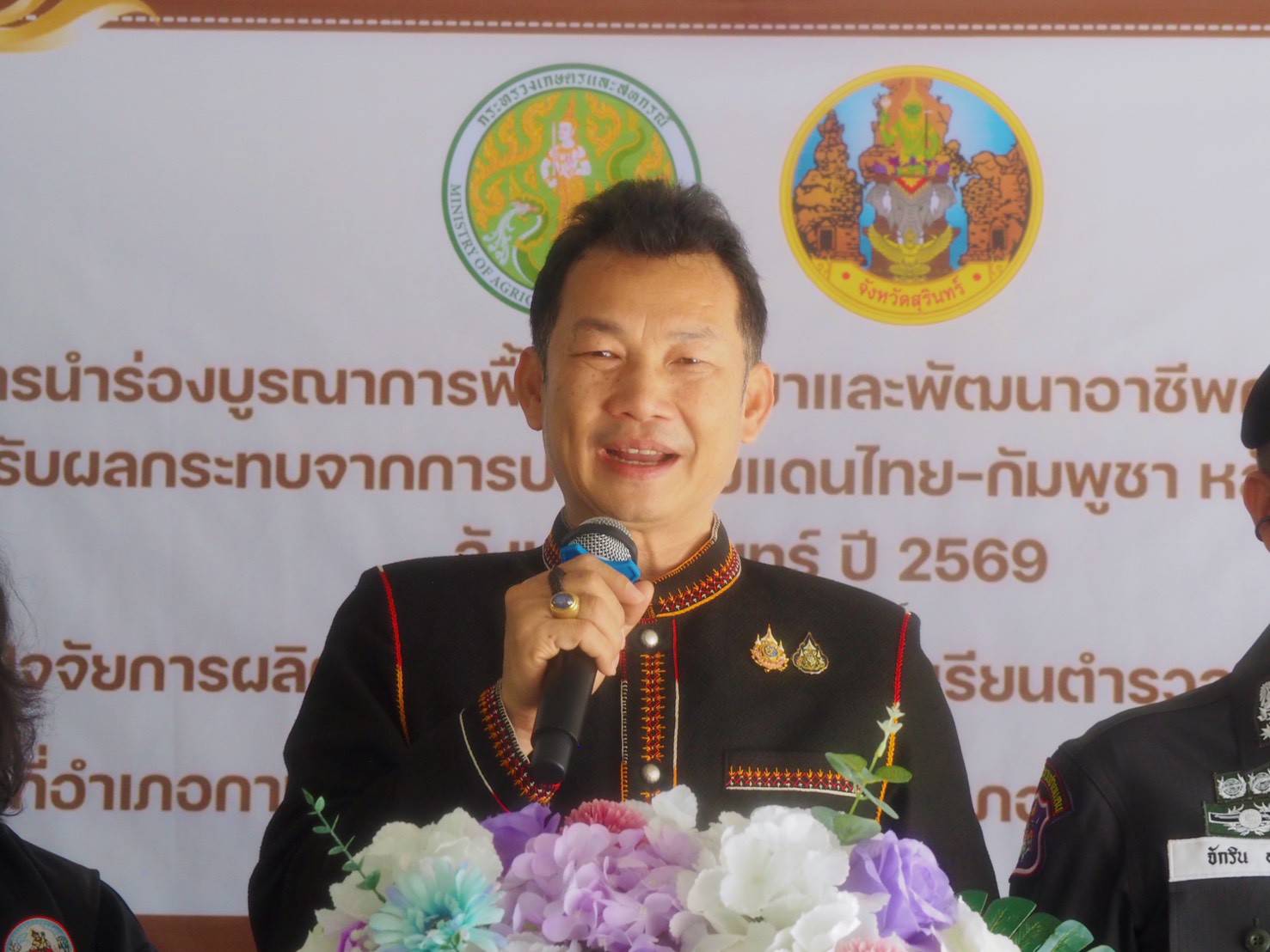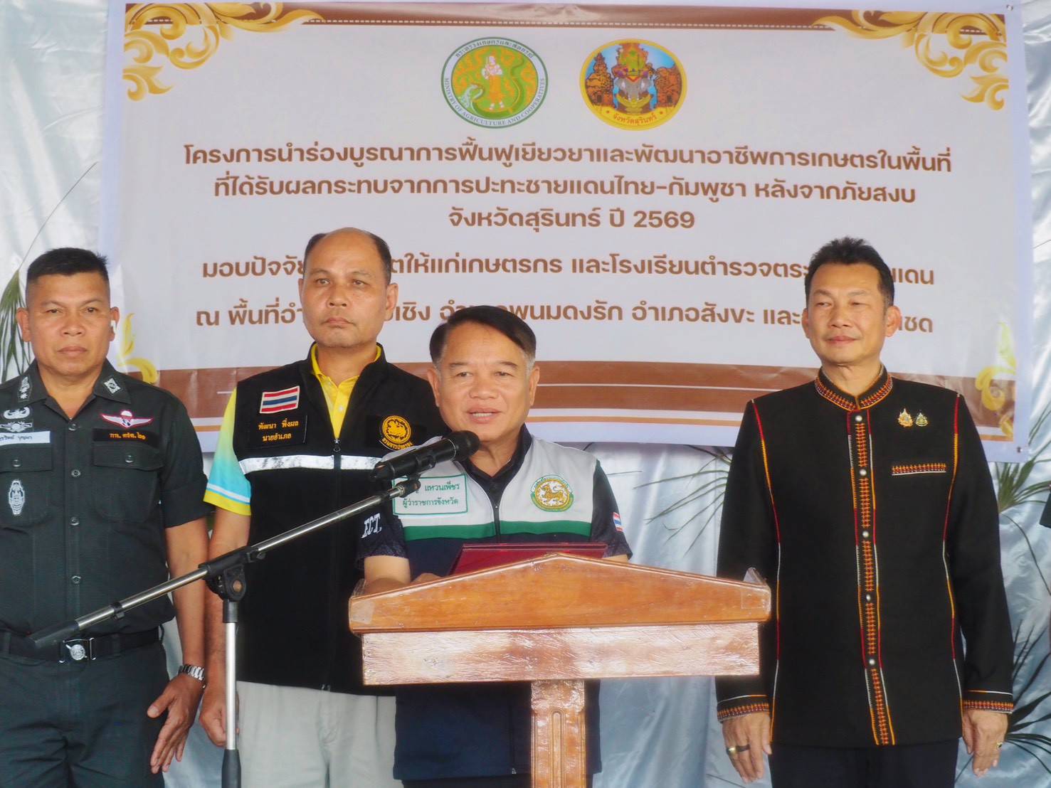 วันที่ 6 กุมภาพันธ์ 2569 เวลา 13.00 น. ณ โรงเรียนตำรวจตระเวนชายแดนบ้านโคกแสลง ตำบลตาเมียง อำเภอพนมดงรัก จังหวัดสุรินทร์ นายจำเริญ แหวนเพ็ชร ผู้ว่าราชการจังหวัดสุรินทร์ เป็นประธานในพิธีเปิดโครงการนำร่องบูรณาการฟื้นฟู เยียวยา และพัฒนาอาชีพการเกษตรในพื้นที่ที่ได้รับผลกระทบจากการปะทะชายแดนไทย–กัมพูชา หลังจากภัยสงบ จังหวัดสุรินทร์ ปี 2569 โดยมีนายวีระชัย ประเสริฐโส รองผู้ว่าราชการจังหวัดสุรินทร์ และนายสัตวแพทย์อภิชัย นาคีสังข์ ปศุสัตว์จังหวัดสุรินทร์ ร่วมลงพื้นที่โครงการดังกล่าวจัดขึ้นเพื่อบรรเทาความเดือดร้อนให้แก่เกษตรกรที่ได้รับผลกระทบจากสถานการณ์ชายแดน ฟื้นฟูเศรษฐกิจครัวเรือน และส่งเสริมให้เกษตรกรมีอาหารบริโภค ลดรายจ่าย เพิ่มรายได้ และมีอาชีพที่ยั่งยืนโดยกลุ่มเป้าหมายประกอบด้วย