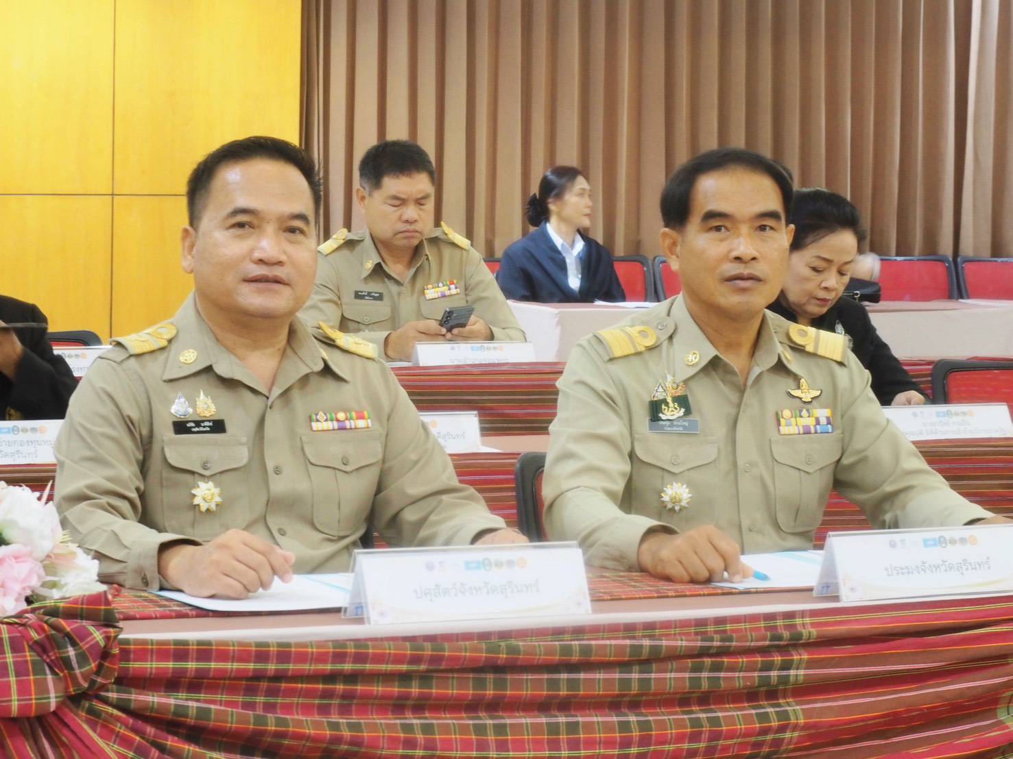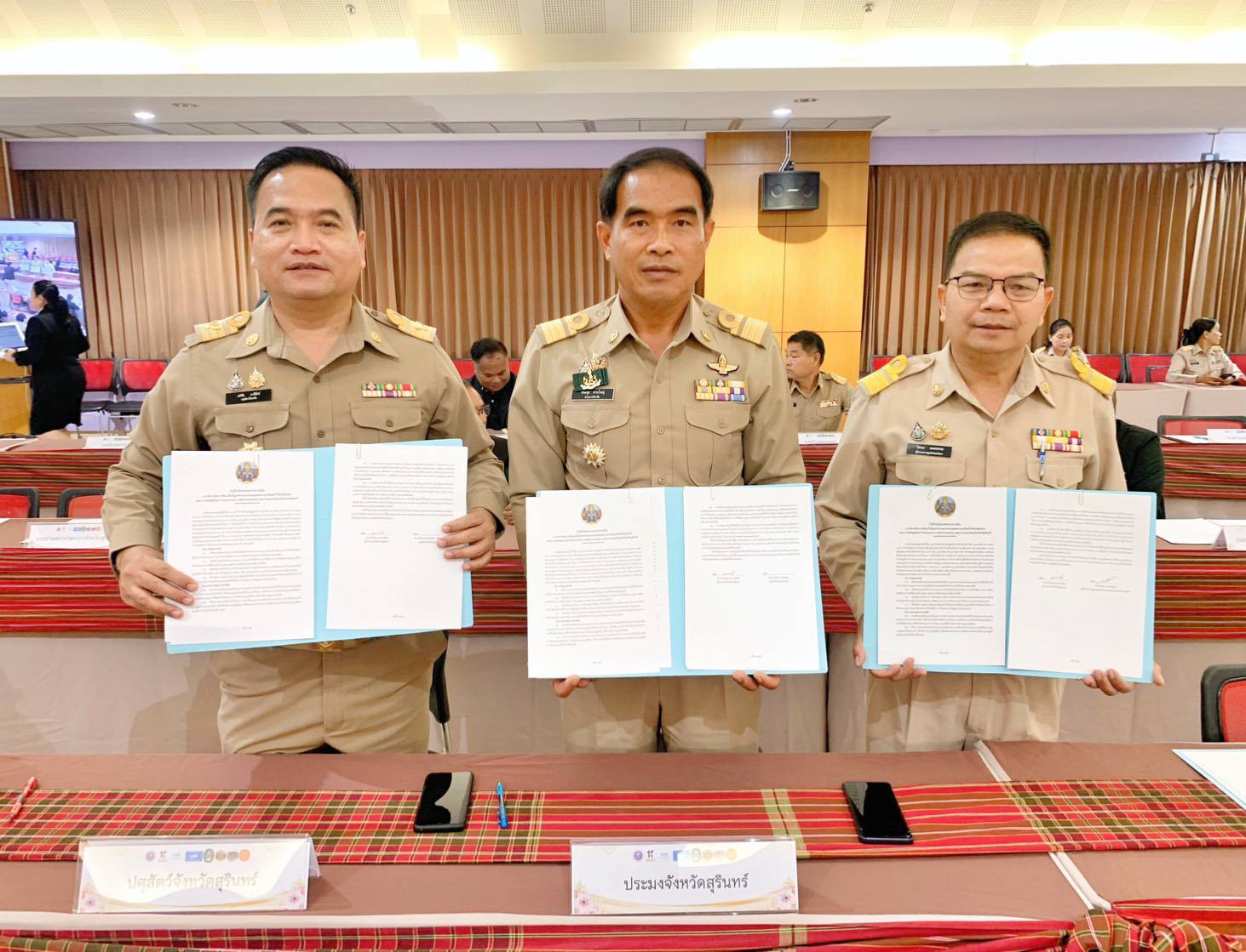 วันที่ 23 กุมภาพันธ์ 2569 เวลา 09.00 น. นายสัตวแพทย์อภิชัย นาคีสังข์ ปศุสัตว์จังหวัดสุรินทร์ และนางอิศราภรณ์ ตีทอง เจ้าพนักงานสัตวบาล เข้าร่วมประชุมคณะอำนวยการขจัดความยากจนและพัฒนาคนทุกช่วงวัยอย่างยั่งยืนตามหลักปรัชญาของเศรษฐกิจพอเพียงจังหวัดสุรินทร์ (คจพ.จ.สร.) ครั้งที่ 2/2569 โดยนายสัตวแพทย์อภิชัย นาคีสังข์ปศุสัตว์จังหวัดสุรินทร์ ร่วมบันทึกข้อตกลงความร่วมมือการบริหารจัดการเพื่อแก้ไขปัญหาความยากจนฯ และลดความเหลื่อมล้ำจังหวัดสุรินทร์ ณ ห้องประชุมบันทายศรี ชั้น 3 คณะวิทยาการจัดการ มหาวิทยาลัยราชภัฏสุรินทร์ จังหวัดสุรินทร์ โดยประชุมครั้งนี้ นายจำเริญ แหวนเพ็ชรผู้ว่าราชการจังหวัดสุรินทร์ เป็นประธาน