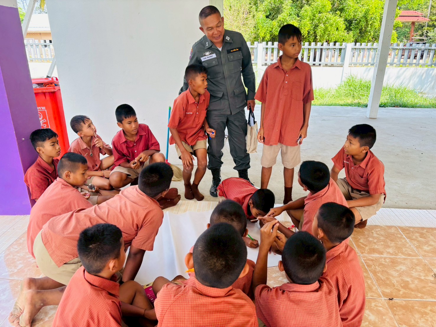 1.แบ่งกลุ่มค้นหาทรัพยากรโครงการเกษตรเพื่ออาหารกลางวันในโรงเรียนตำรวจตระเวนชายแดนบ้านโคกแสลง