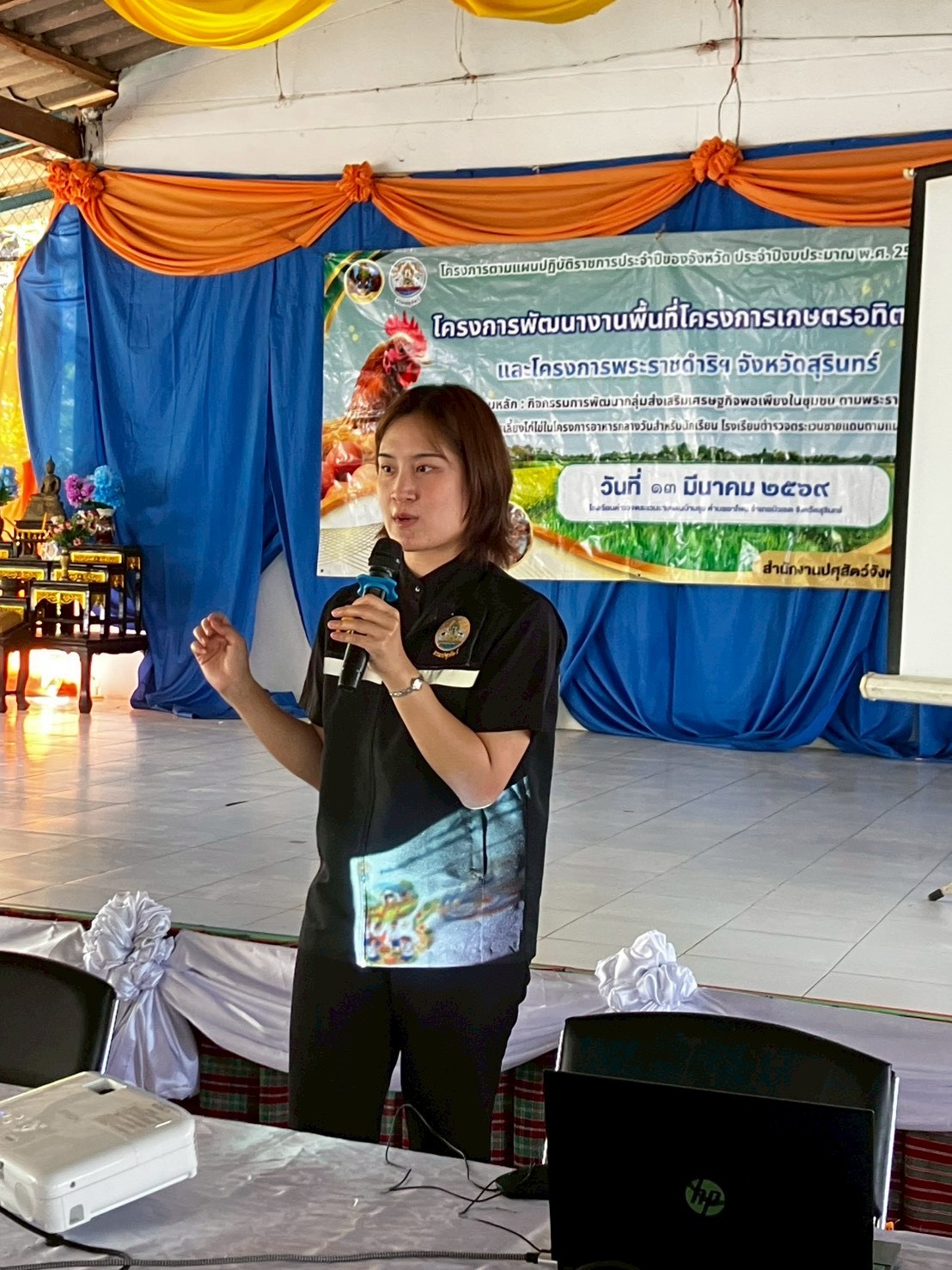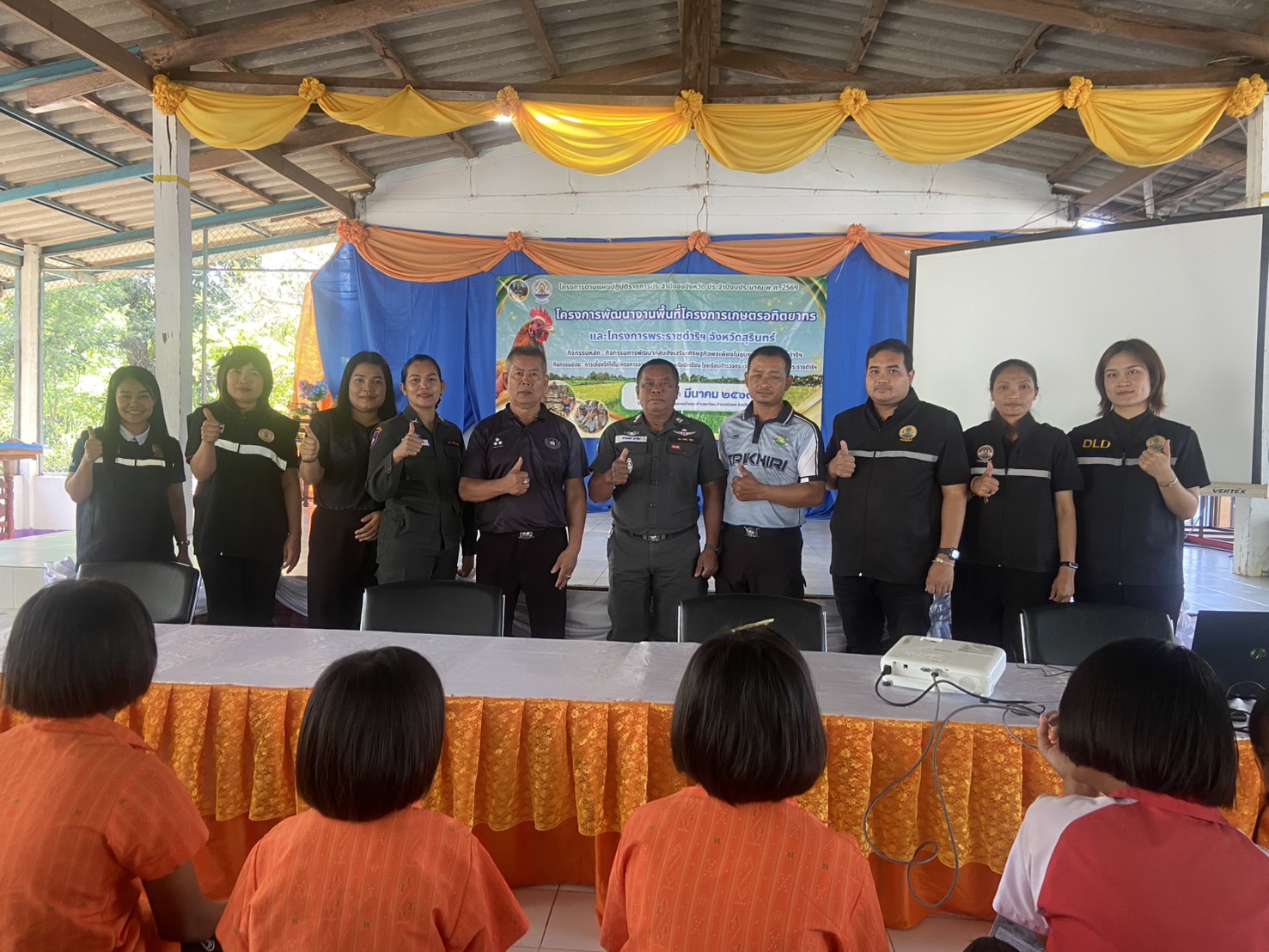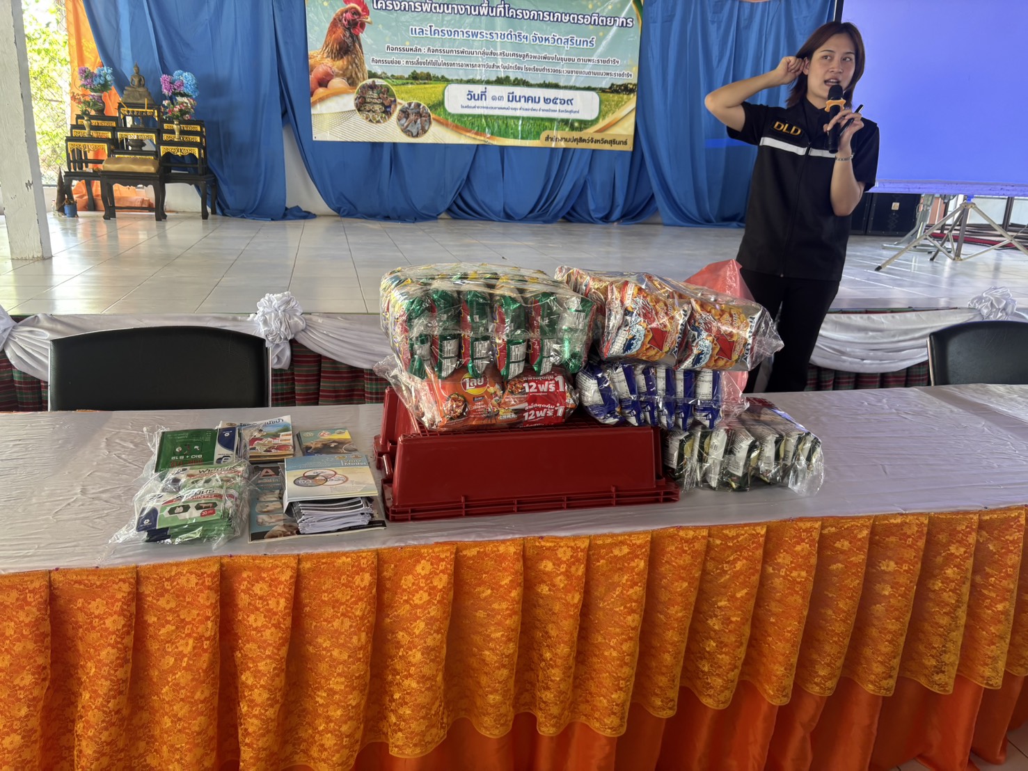 วันที่ 13 มีนาคม 2569 น.สพ.อภิชัย นาคีสังข์ ปศุสัตว์จังหวัดสุรินทร์ มอบหมายให้ นายศรัณวัชร์ บุญเกิด หัวหน้ากลุ่มยุทธศาสตร์ และนายเชษฐา สงวนศิริ ปศุสัตว์อําเภอบัวเชด เจ้าหน้าที่กลุ่มยุทธศาสตร์และสารสนเทศการปศุสัตว์ และเจ้าหน้าที่กลุ่มส่งเสริมและพัฒนาการปศุสัตว์ จัดโครงการตามแผนปฏิบัติราชการประจำปีของจังหวัด ประจำปีงบประมาณ พ.ศ. 2569 โครงการพัฒนางานพื้นที่โครงการอทิตยาทร และโครงการพระราชดำริฯ จังหวัดสุรินทร์ กิจกรรมหลัก การพัฒนากลุ่มส่งเสริมเศรษฐกิจพอเพียงในชุมชน ตามพระราชดำริฯ กิจกรรมย่อย การเลี้ยงได้ใช้ในโครงการอาหารกลางวันสำหรับนักเรียนโรงเรียนตำรวจตระเวนชายแดนตามแนวพระราชดำริ หลักสูตร "ส่งเสริมทักษะอาชีพและการเรียนรู้การเลี้ยงไก่ไข่" เป้าหมายนักเรียนและผู้เข้าร่วมอบรม 100 ราย รุ่นที่ 7