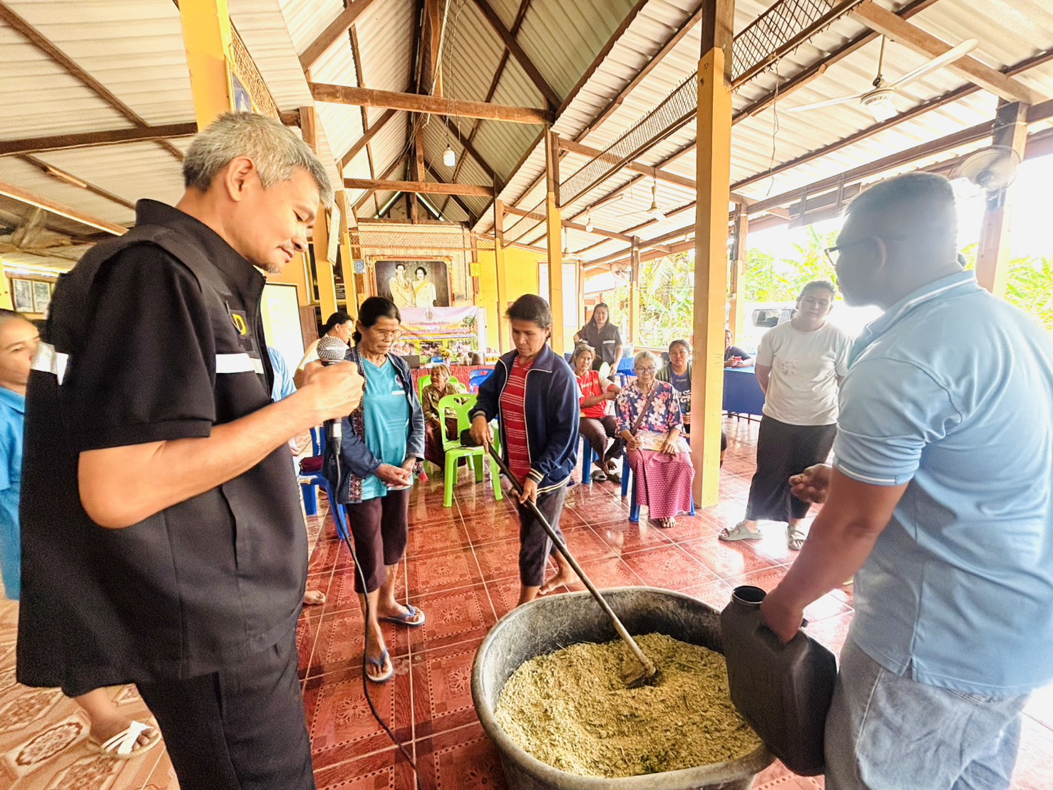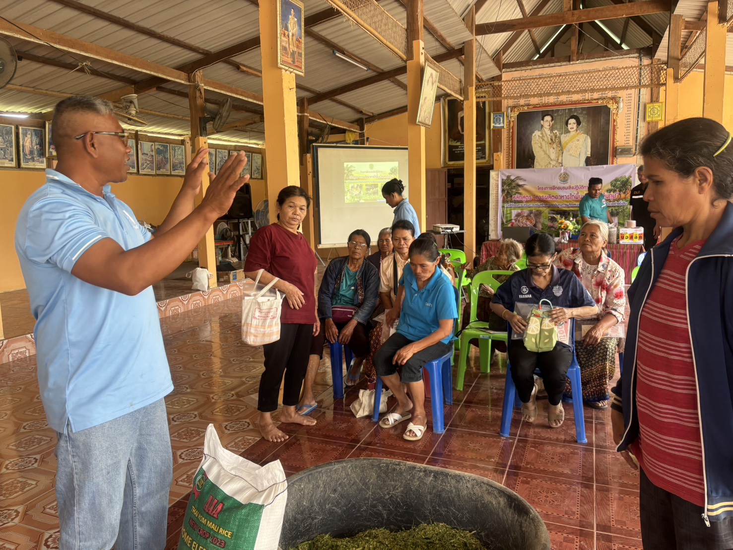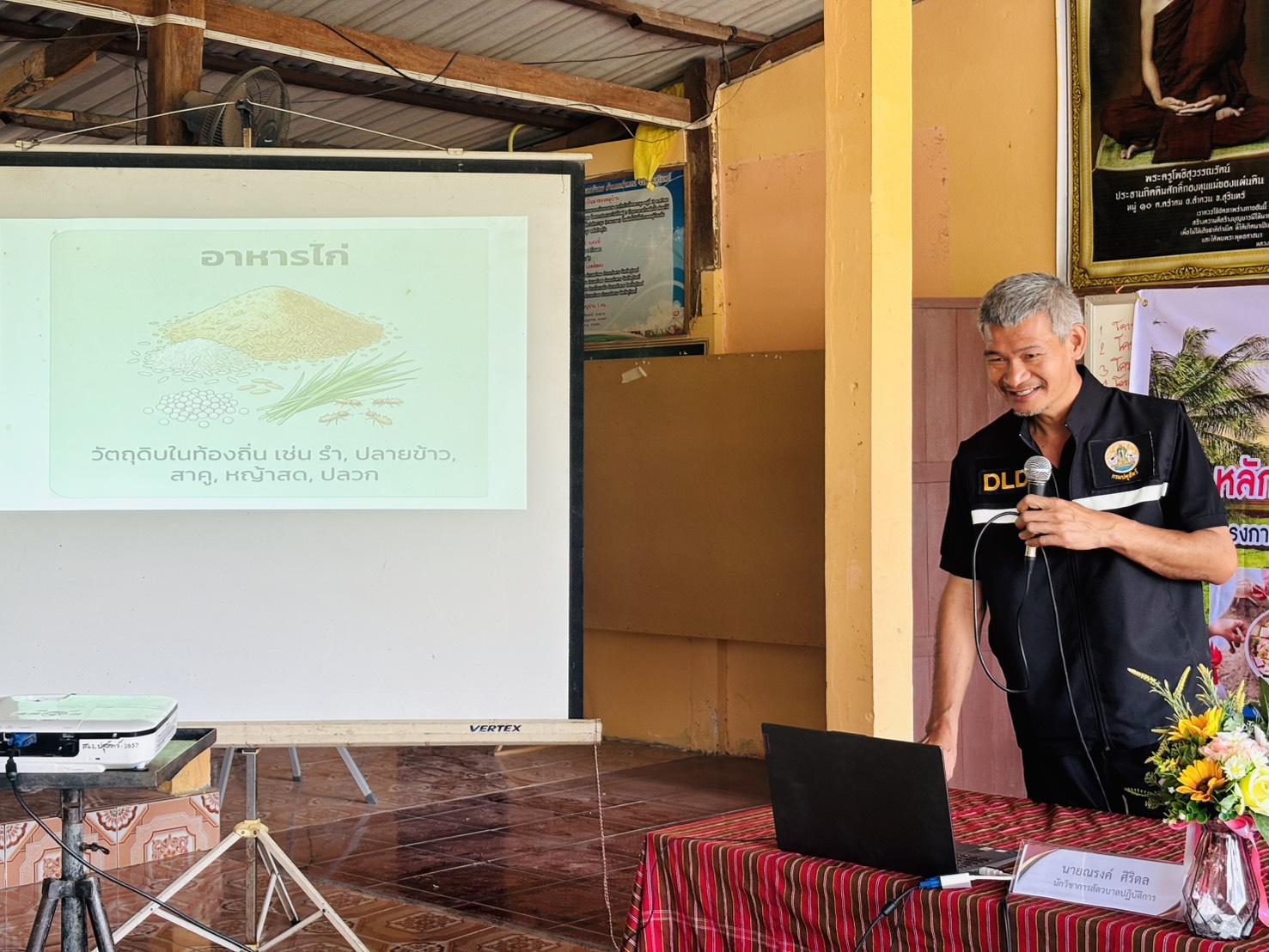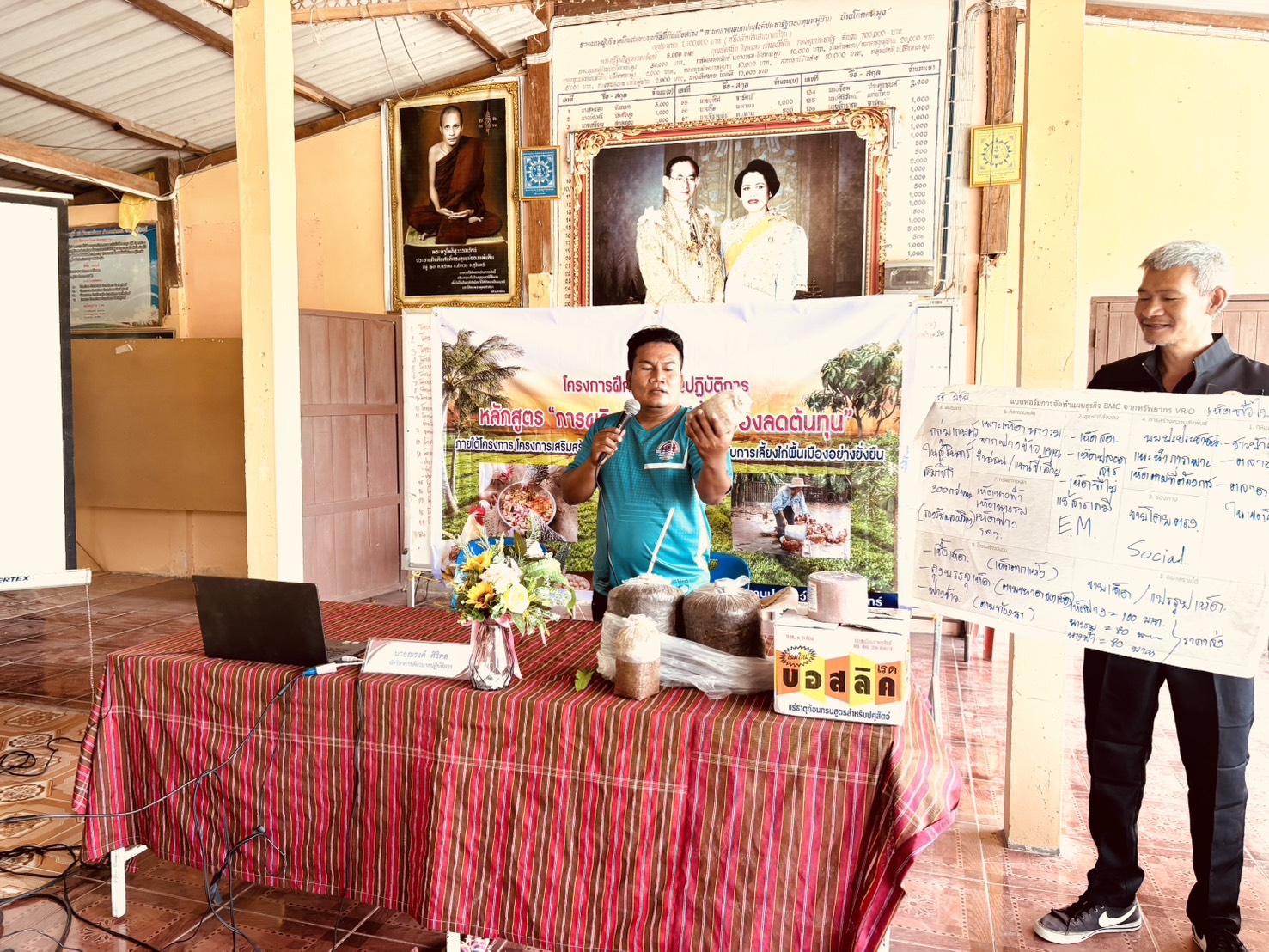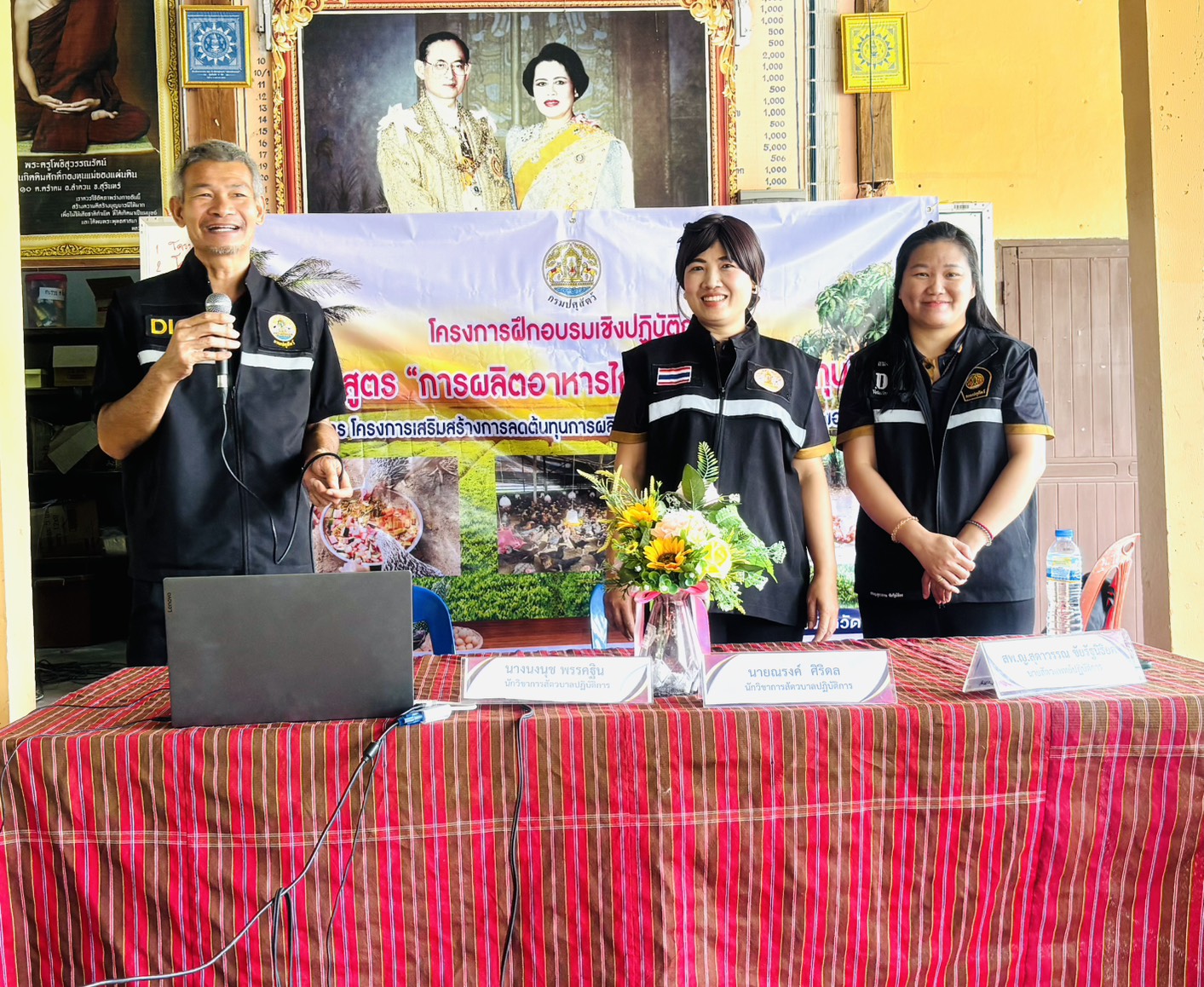 โดยมีรายละเอียด การฝึกอบรม ภาคทฤษฎีบรรยาย การผลิตอาหารไก่พื้นเมืองเพื่อลดต้นทุน การยกระดับฟาร์มไก่พื้นเมือง ตามมาตรฐาน GFM และมีภาคปฏิบัติ การสาธิตการทำสูตรอาหารไก่พื้นเมือง เพื่อลดต้นทุน