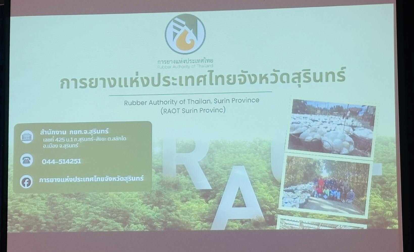 ในการนี้ นายวิวัฒน์ชัย หนูทอง เกษตรและสหกรณ์จังหวัดสุรินทร์ และ นายวิทัศ พันธ์ภูงา ผู้อำนวยการการยางแห่งประเทศไทยจังหวัดสุรินทร์พร้อมด้วย หัวหน้าส่วนราชการ ในสังกัดกระทรวงเกษตรและสหกรณ์ เข้าร่วมประชุมฯ ดังกล่าว