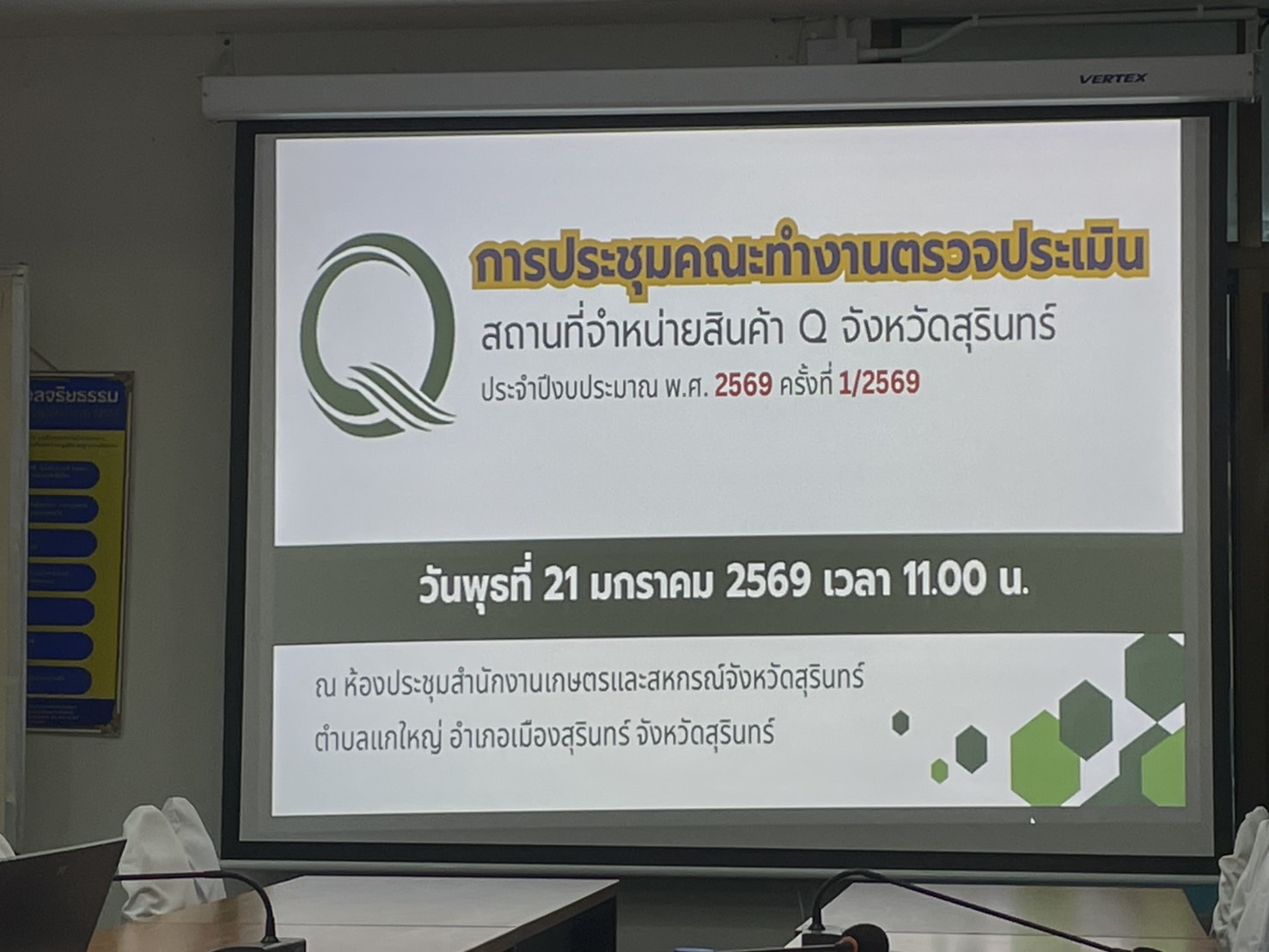 วันที่ 21 มกราคม 2569 นายสัตวแพทย์อภิชัย นาคีสังข์ ปศุสัตว์จังหวัดสุรินทร์ มอบหมายให้ สพ.ญ.วริศรา ว่องวัฒนากูล นายสัตวแพทย์ปฏิบัติการ นางสาววราภรณ์ ถุนาพรรณ์ เจ้าพนักงานสัตวบาล กลุ่มพัฒนาคุณภาพสินค้าปศุสัตว์ เข้าร่วมการประชุมคณะทำงานตรวจประเมินสถานที่จำหน่ายสินค้า Q และตรวจประเมินร้านอาหารวัตถุดิบปลอดภัยเลือกใช้สินค้า Q (Q Restaurant) จังหวัดสุรินทร์ ประจำปีงบประมาณ พ.ศ.2569 ครั้งที่ 1/2569 ณ ห้องประชุมสำนักงานเกษตรและสหกรณ์จังหวัดสุรินทร์ ต.แกใหญ่ อ.เมืองสุรินทร์ จ.สุรินทร์