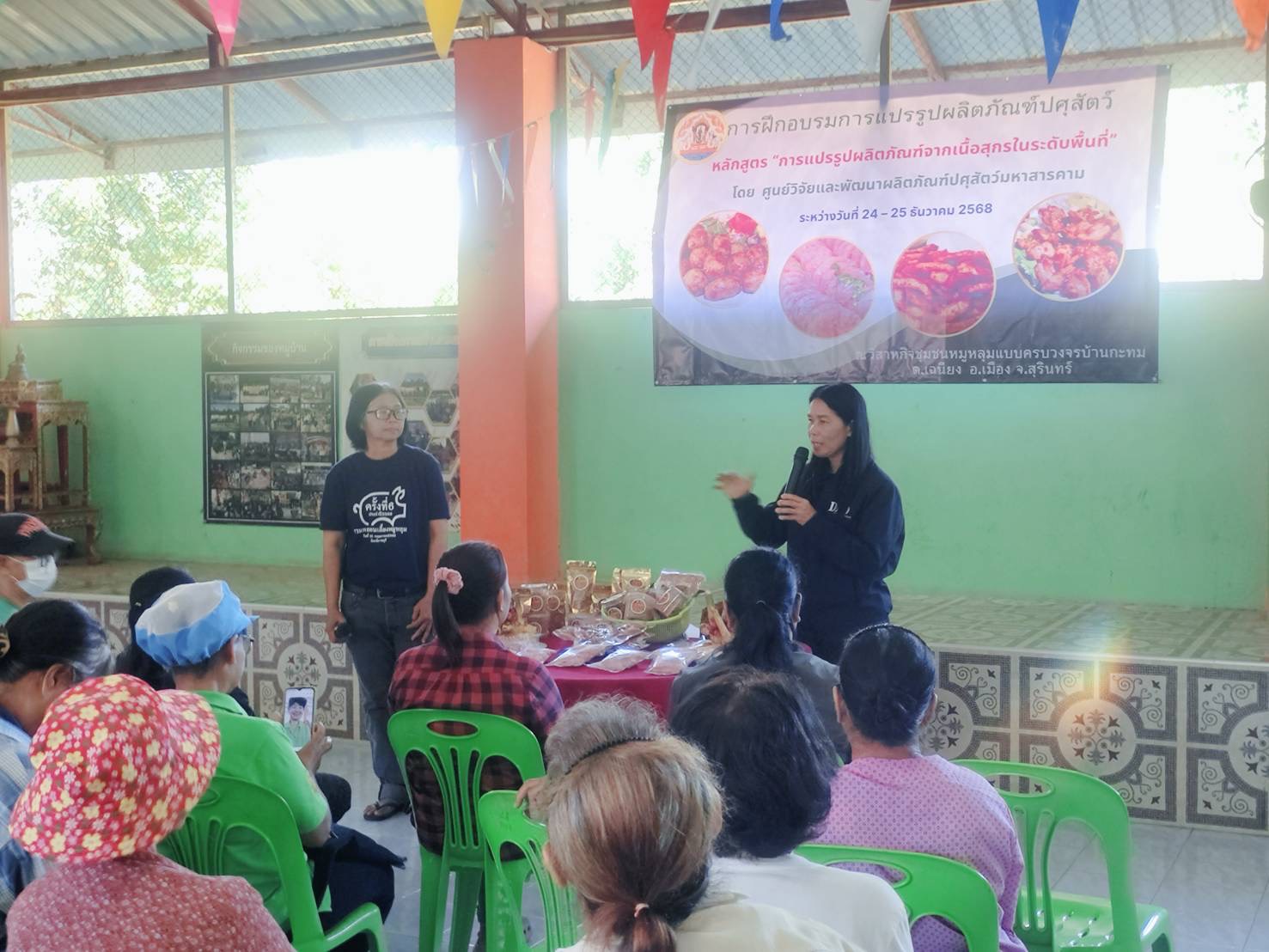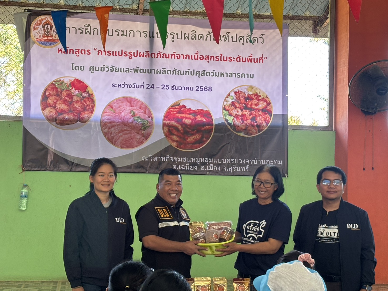 วันที่ 25 ธันวาคม 2568 นายสัตวแพทย์อภิชัย นาคีสังข์ ปศุสัตว์จังหวัดสุรินทร์ มอบหมายให้ นายสุพิน นองมัน หัวหน้ากลุ่มส่งเสริมและพัฒนาการปศุสัตว์ นายณรงค์ ศิริดล นักวิชาการสัตวบาลปฏิบัติการ นางนงนุช พรรคฐิน นักวิชาการสัตวบาลปฏิบัติการ ร่วมโครงการฝึกอบรมการแปรรูปผลิตภัณฑ์ปศุสัตว์ หลักสูตร "การแปรรูปผลิตภัณฑ์จากเนื้อสุกรในระดับพื้นที่" ประจำปีงบประมาณ 2569”ณ วิสาหกิจชมชนหมูหลุมแบบครบวงจรบ้านกะทม ตำบลเฉนียง อำเภอเมืองสุรินทร์ จังหวัดสุรินทร์