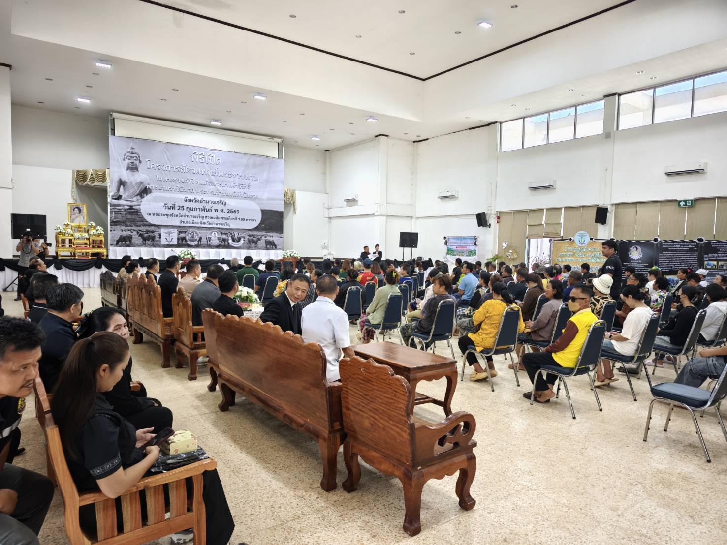 วันที่ ๒๕ กุมภาพันธ์ ๒๕๖๙ นายสัตวแพทย์อภิชัย นาคีสังข์ ปศุสัตว์จังหวัดสุรินทร์ พร้อมด้วย นายสัตวแพทย์จรูญวิทย์ นะพรรัมย์ หัวหน้ากลุ่มพัฒนาสุขภาพสัตว์ นายสัตวแพทย์อครพนธ์ ขันถม นายสัตวแพทย์ปฏิบัติการ สัตวแพทย์หญิงพรสวรรค์ วิไลรัตน์ นายสัตวแพทย์ปฏิบัติการ เจ้าหน้าที่กลุ่มพัฒนาสุขภาพสัตว์ สำนักงานปศุสัตว์จังหวัดสุรินทร์ เข้าร่วมพิธีเปิดและร่วมปฏิบัติงาน โครงการสัตวแพทย์พระราชทาน ในพระราชดำริ สมเด็จพระนางเจ้าสิริกิติ์ พระบรมราชินีนาถ พระบรมราชชนนีพันปีหลวง ประจำปีงบประมาณ พ.ศ.๒๕๖๙ ซึ่งจัดขึ้นระหว่างวันที่ ๒๔–๒๖ กุมภาพันธ์ ๒๕๖๙ ณ จังหวัดอำนาจเจริญ โดยพิธีเปิดจัดขึ้นในวันที่ ๒๕ กุมภาพันธ์ ๒๕๖๙ ณ หอประชุมจังหวัดอำนาจเจริญ สวนเฉลิมพระเกียรติฯ ๘๐ พรรษา อำเภอเมืองอำนาจเจริญ จังหวัดอำนาจเจริญ