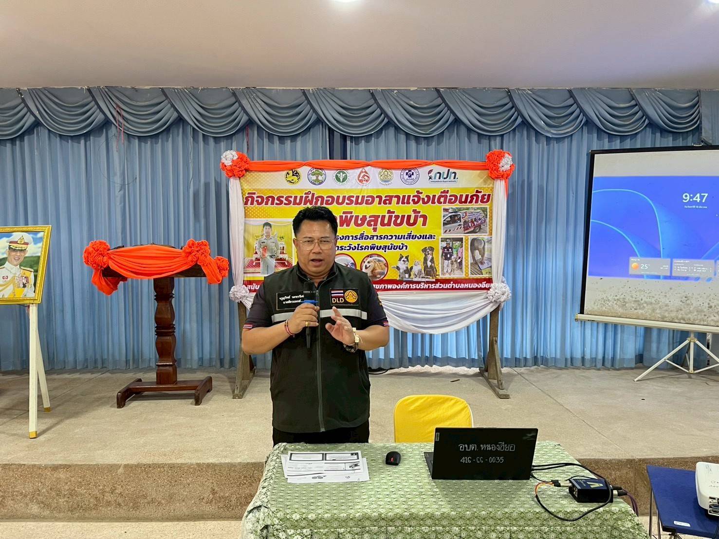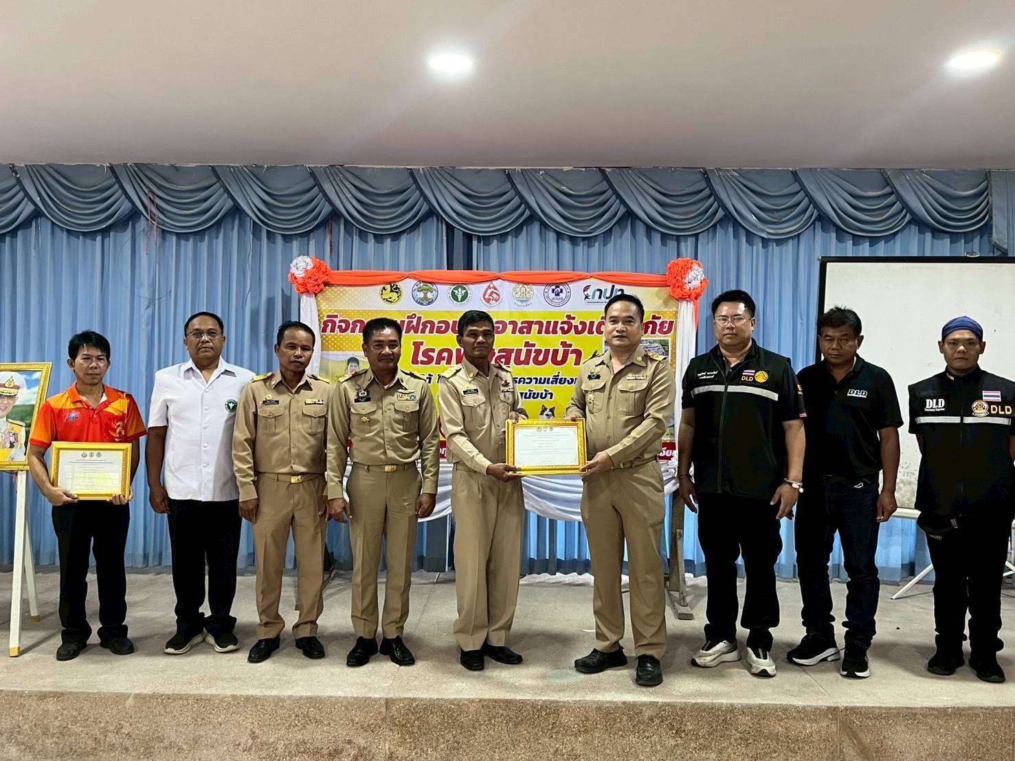นอกจากนี้ นายสัตวแพทย์จรูญวิทย์ นะพรรัมย์ หัวหน้ากลุ่มพัฒนาสุขภาพสัตว์ ได้ร่วมเป็นวิทยากรในการฝึกอบรม อาสาแจ้งเตือนภัยโรคพิษสุนัขบ้า โดยมีผู้เข้าร่วมการอบรมจำนวน ๑๐๐ ราย ร่วมกับเจ้าหน้าที่จากสำนักงานสาธารณสุขอำเภอสนม